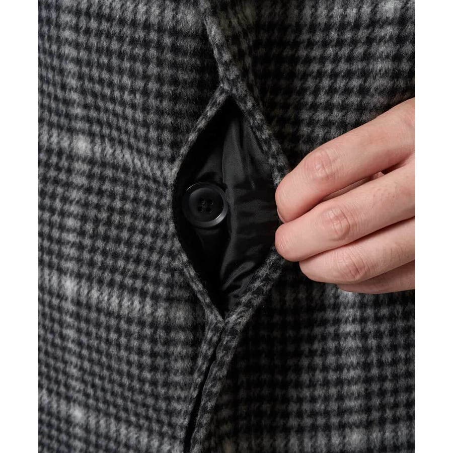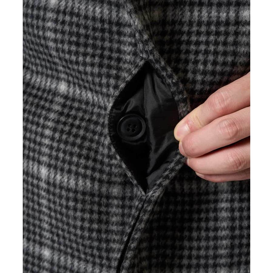 ウール混率50%以上ありながらも約1150グラム(Lサイズ)とウールアウターとしては軽量に仕上がっているため、スムーズに着用でき、寒暖差による着脱時の持ち運びにも便利なのがポイント。