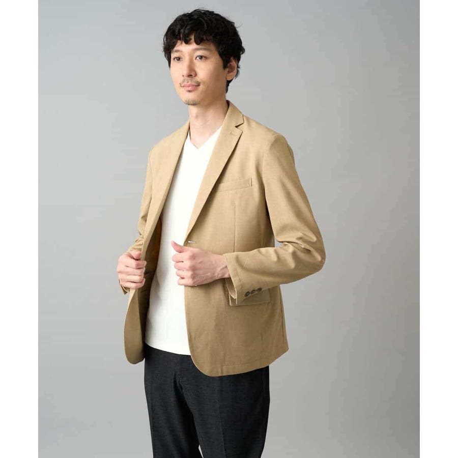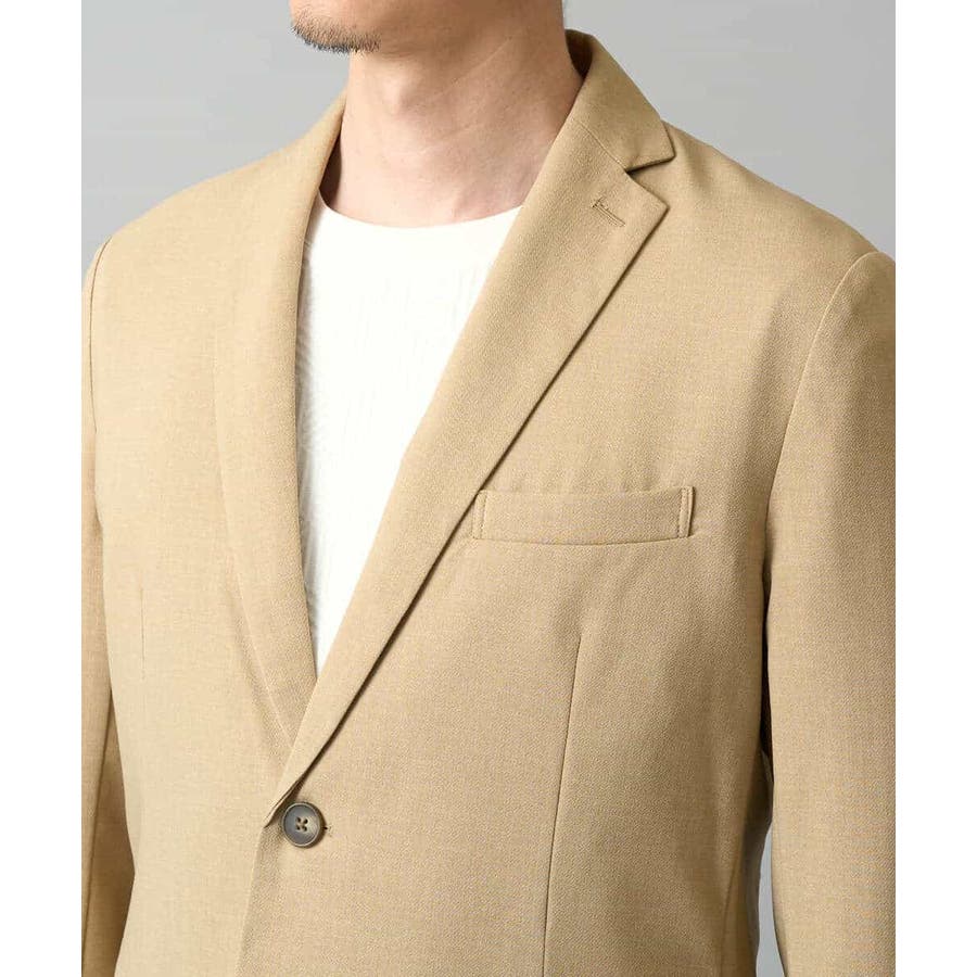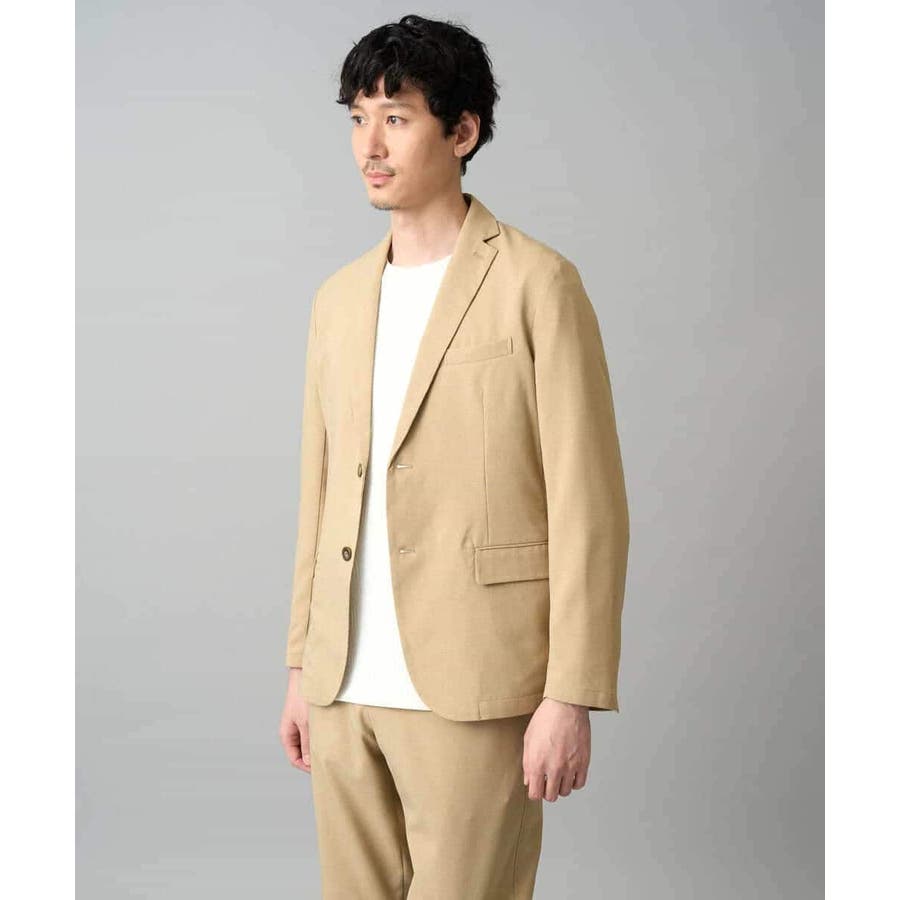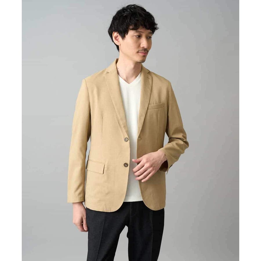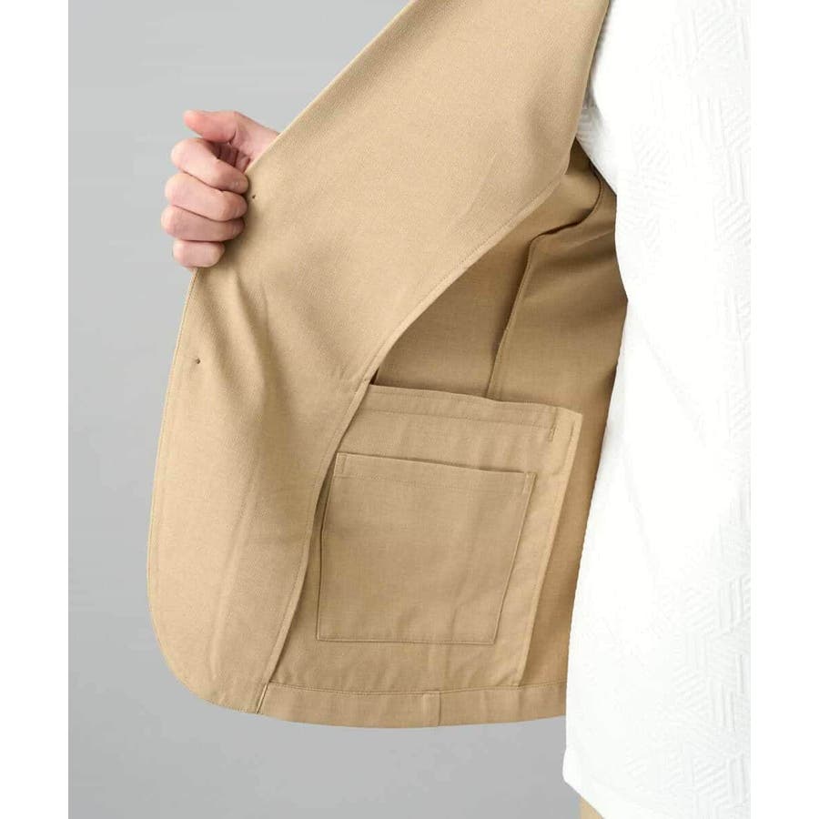上品見えな素材でポリエステル100%のナチュラルストレッチのため、見た目以上に軽くラクチンに羽織れるアイテムです。