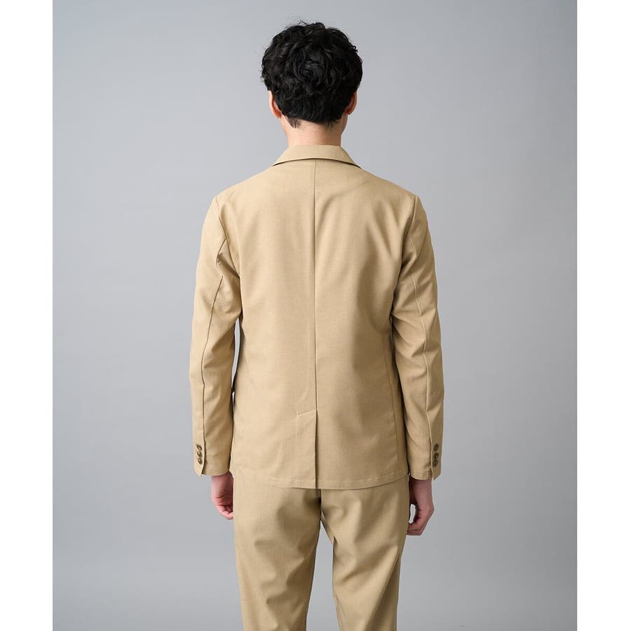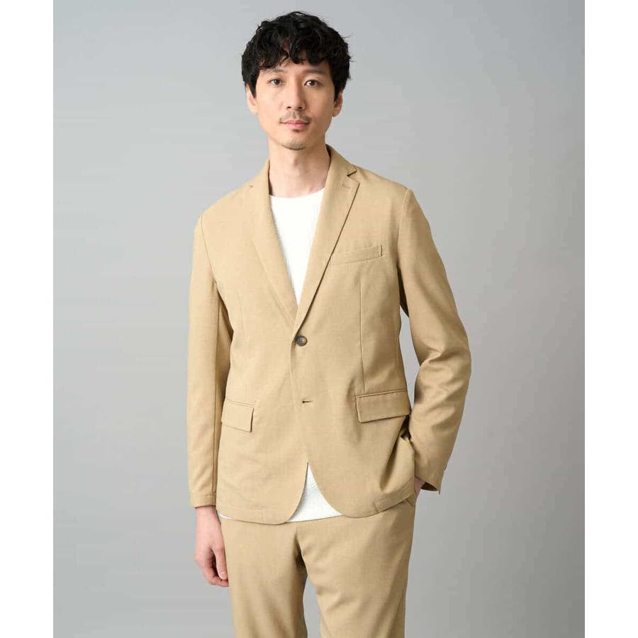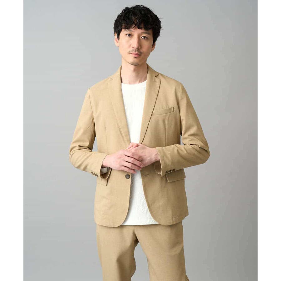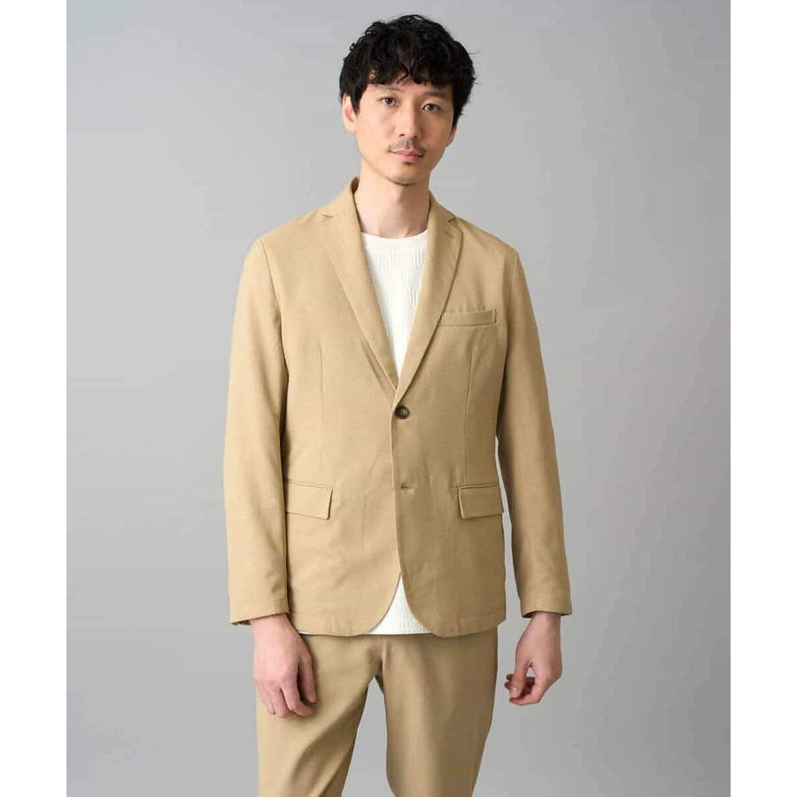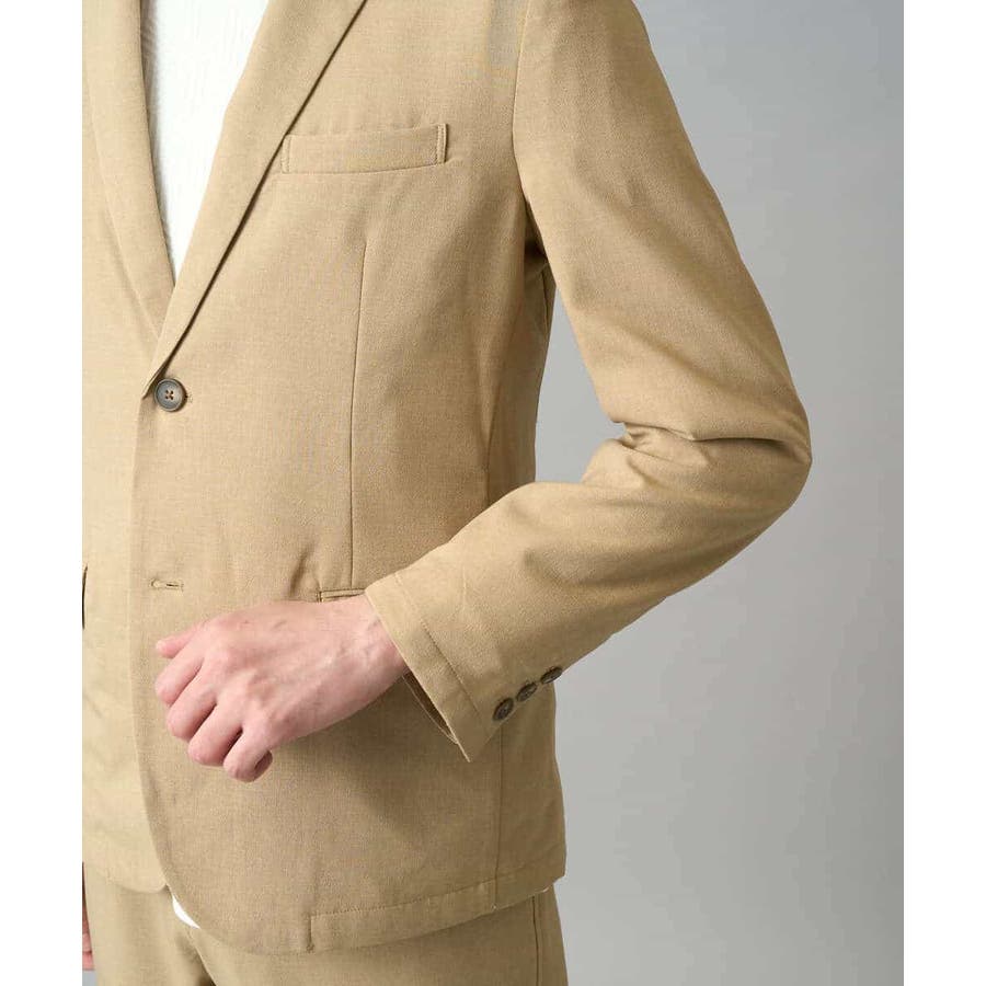 上品見えな素材でポリエステル100%のナチュラルストレッチのため、見た目以上に軽くラクチンに羽織れるアイテムです。