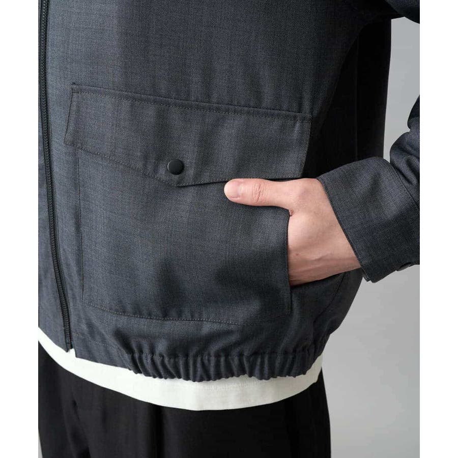 品よく見えるポリエステルウール素材を使用したショートブルゾン。