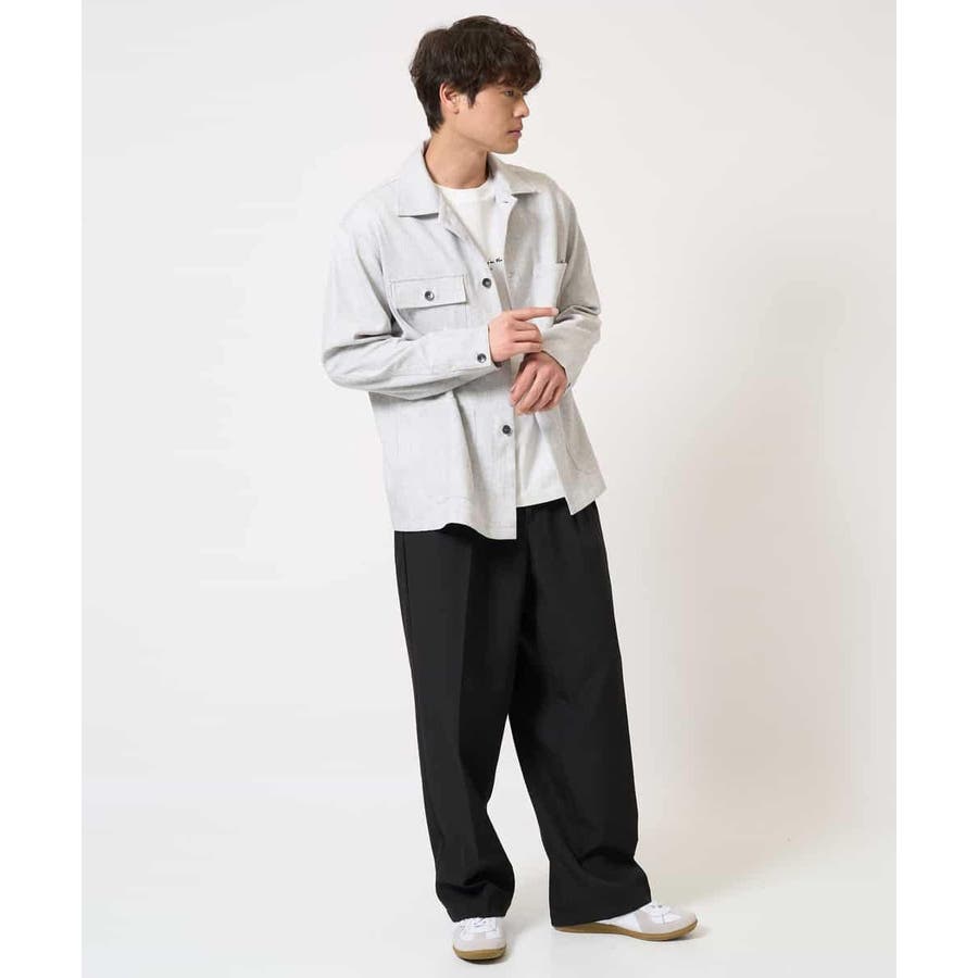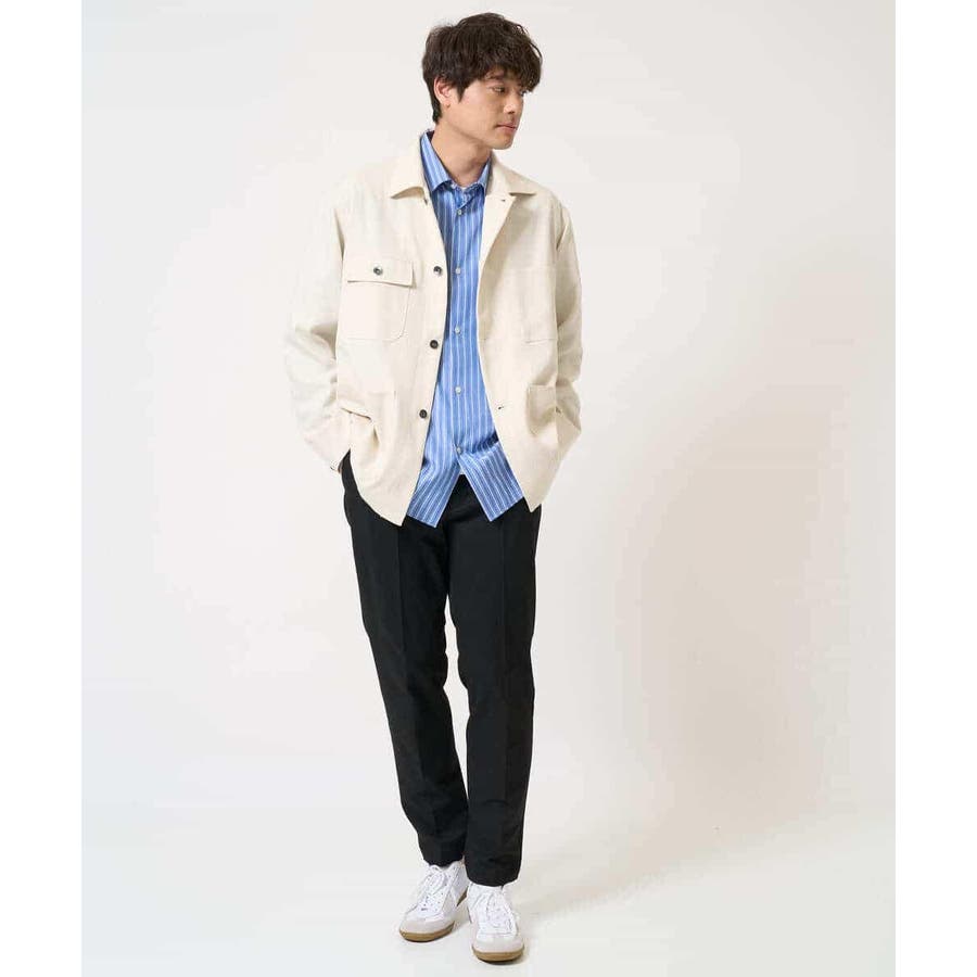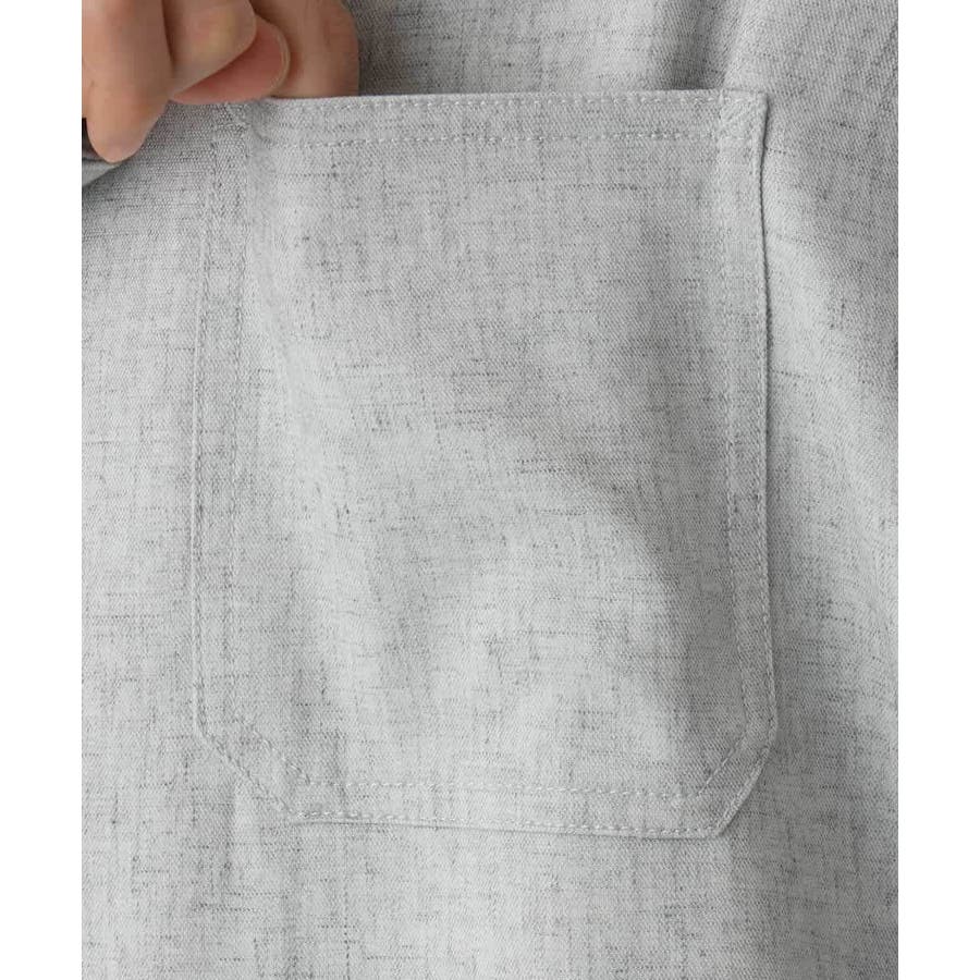 麻調の独特なメランジ感と、やや落ち感があるきれいめな風合いがポイントです。