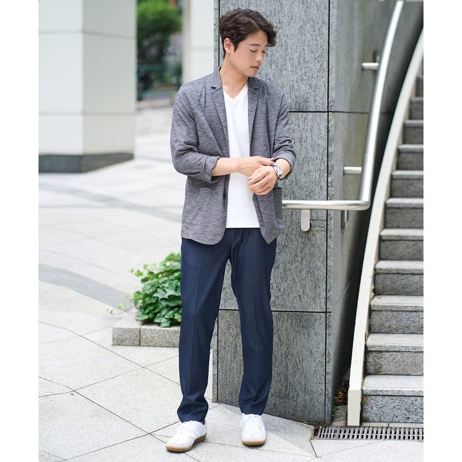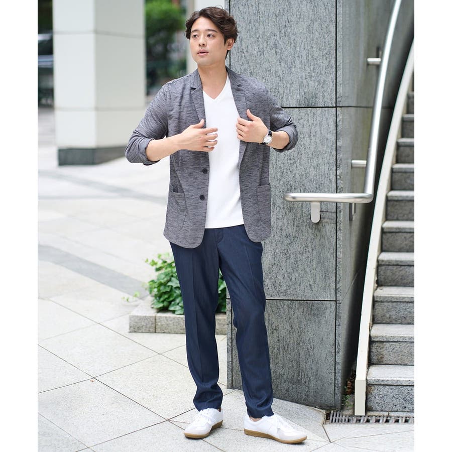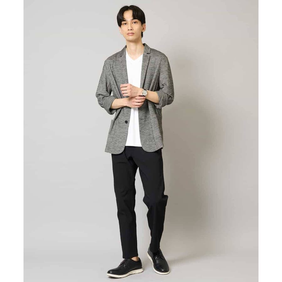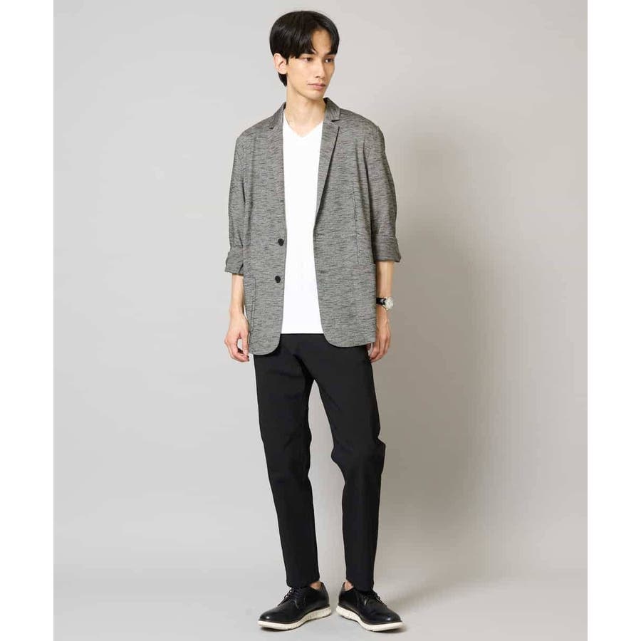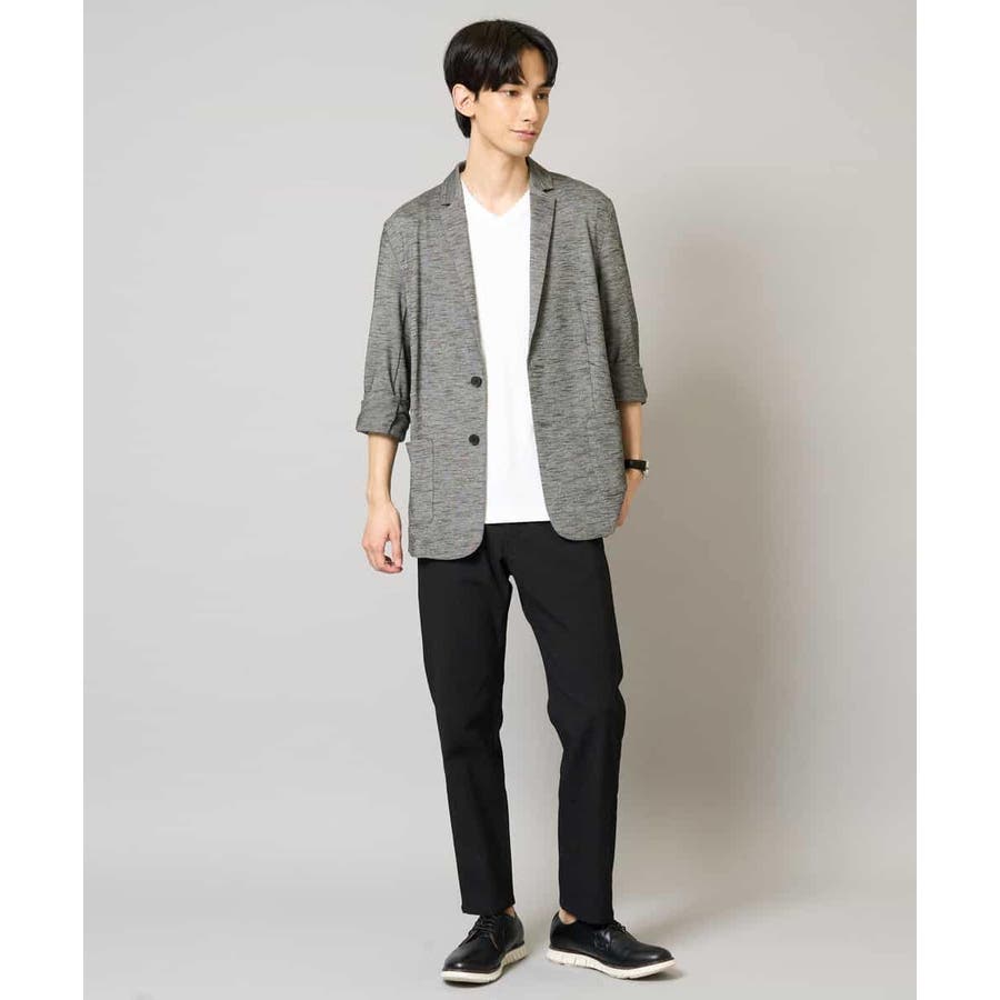 テーラードジャケットデザインできちんと感がありつつも、スラブジャージー素材を使用しているので着心地抜群。