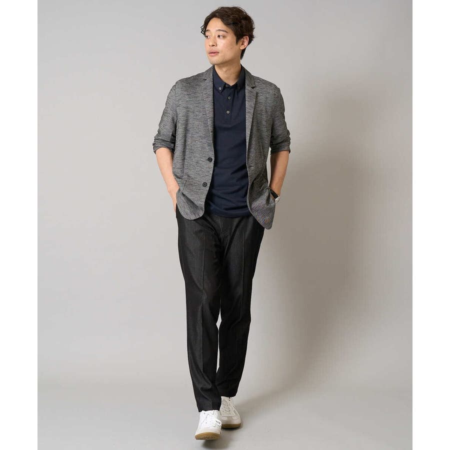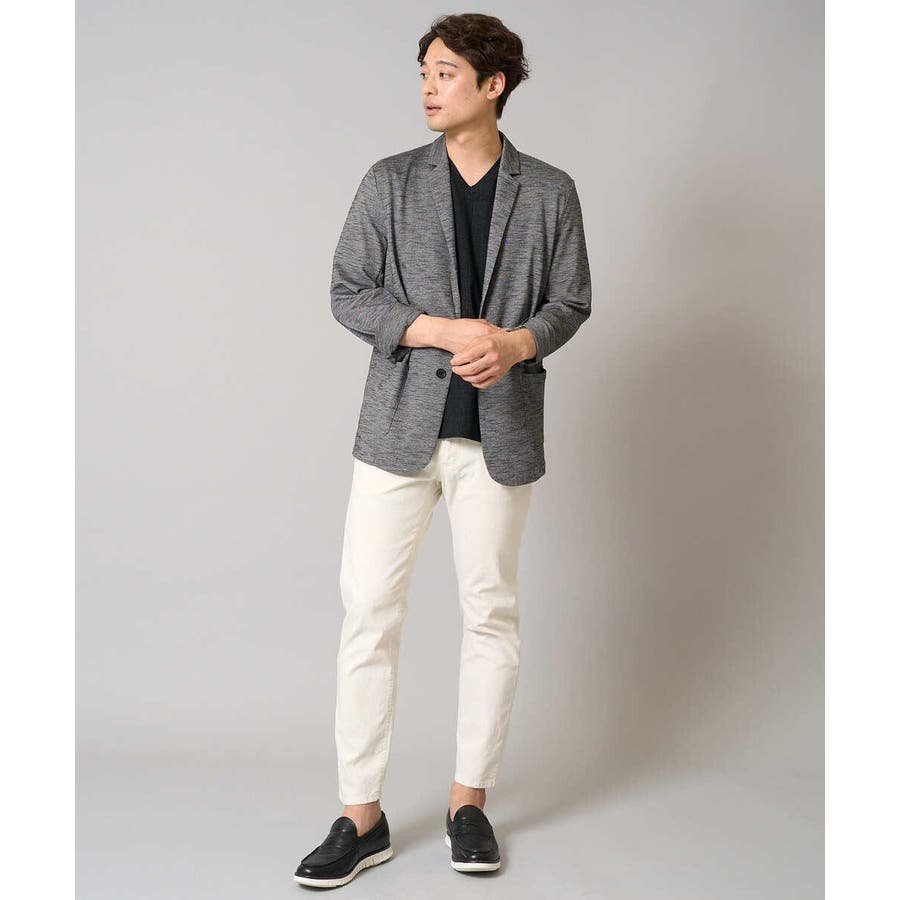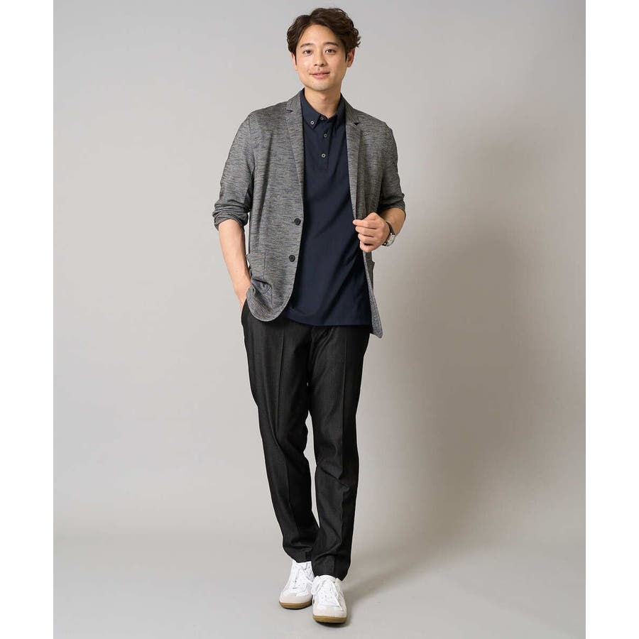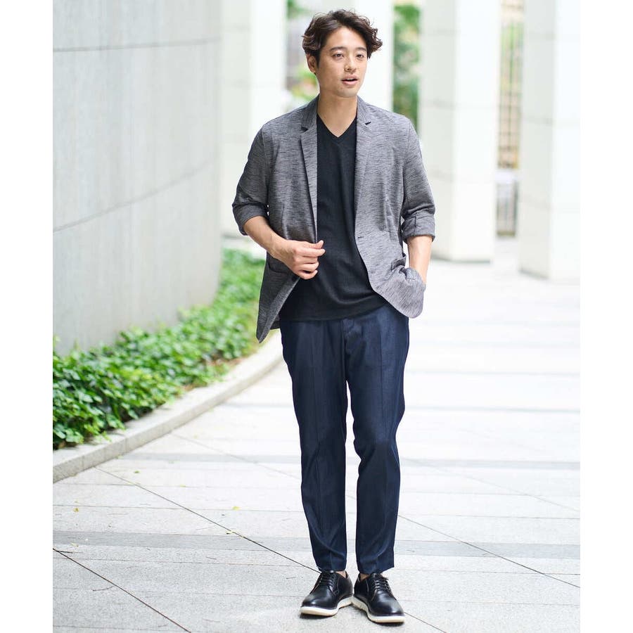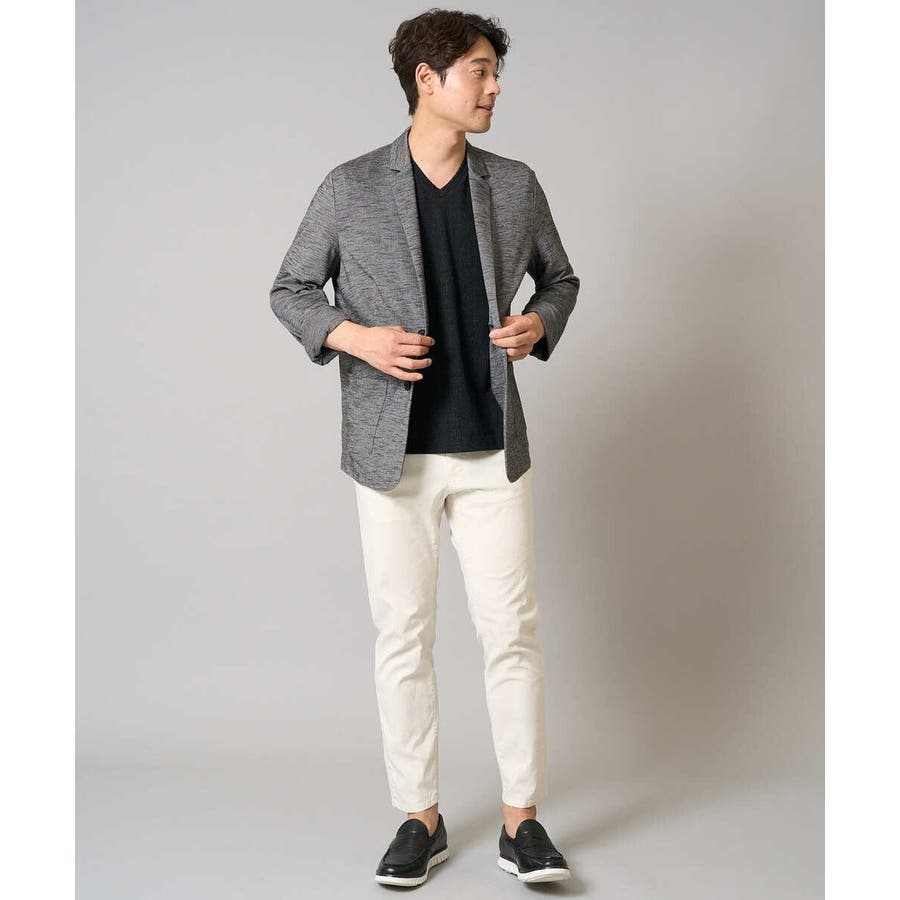 テーラードジャケットデザインできちんと感がありつつも、スラブジャージー素材を使用しているので着心地抜群。