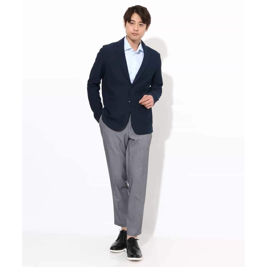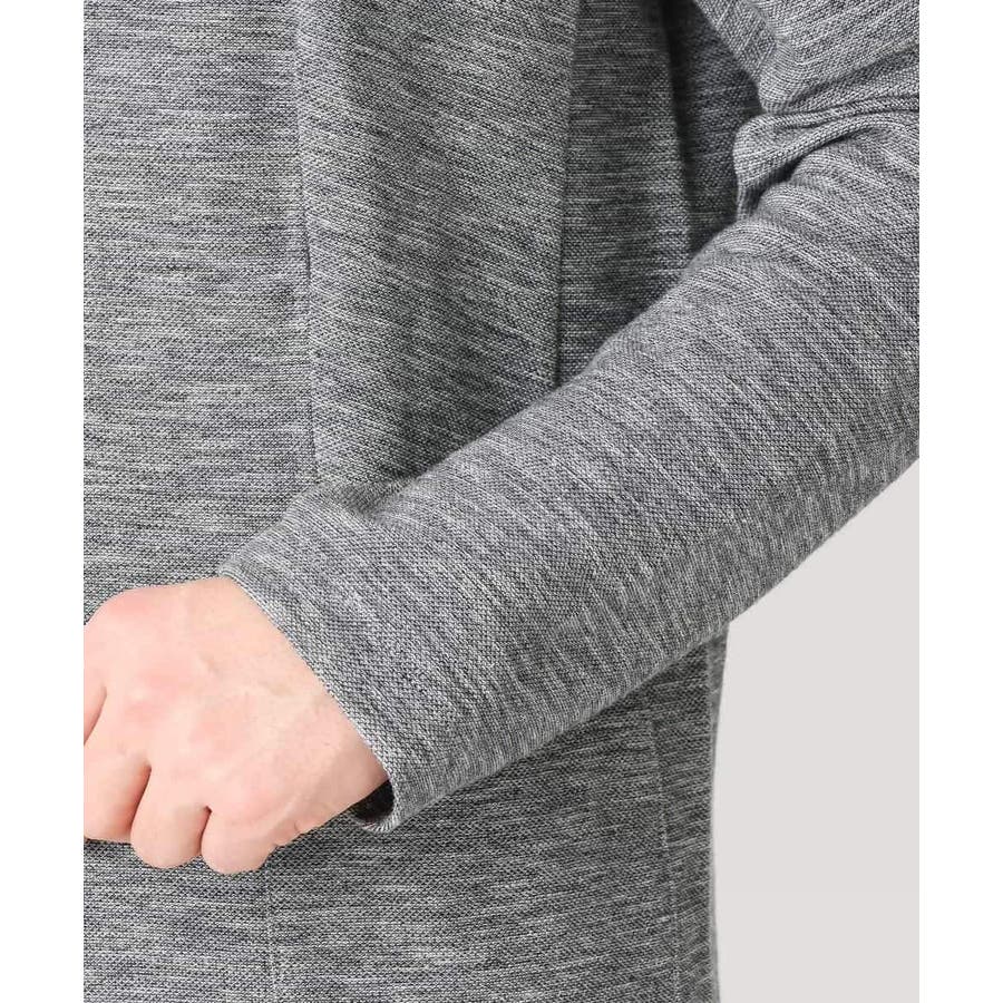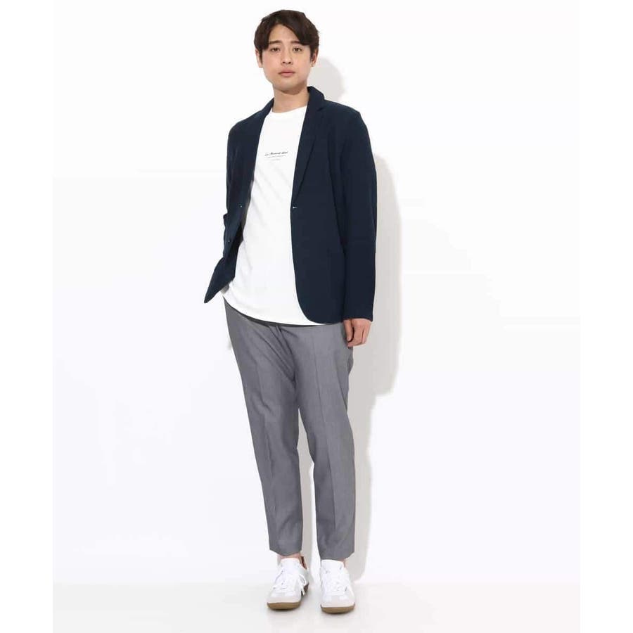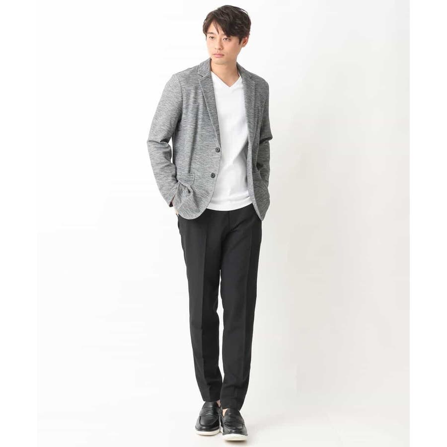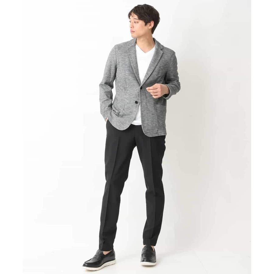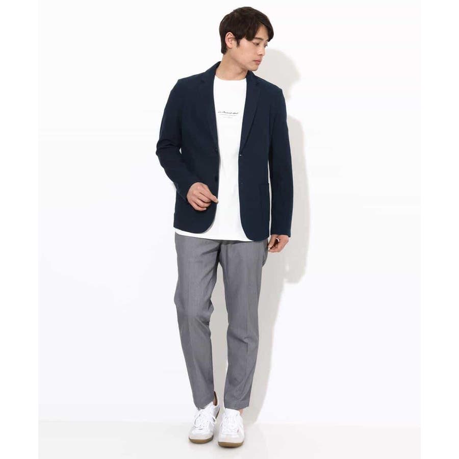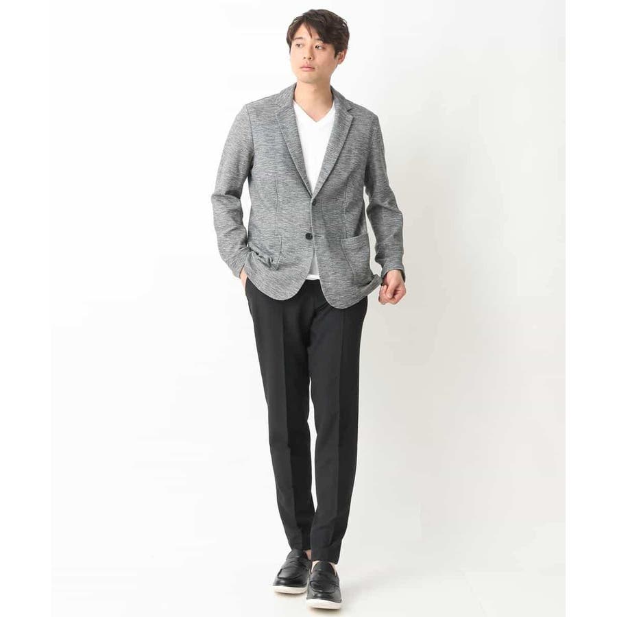 カノコジャージー素材を使用している為、テーラードジャケットデザインですが、腕周りやお腹周りもラクに感じながら着用できるのがうれしいポイントです。