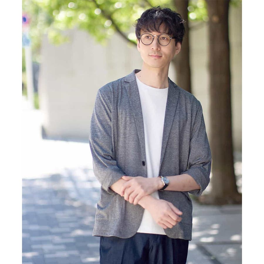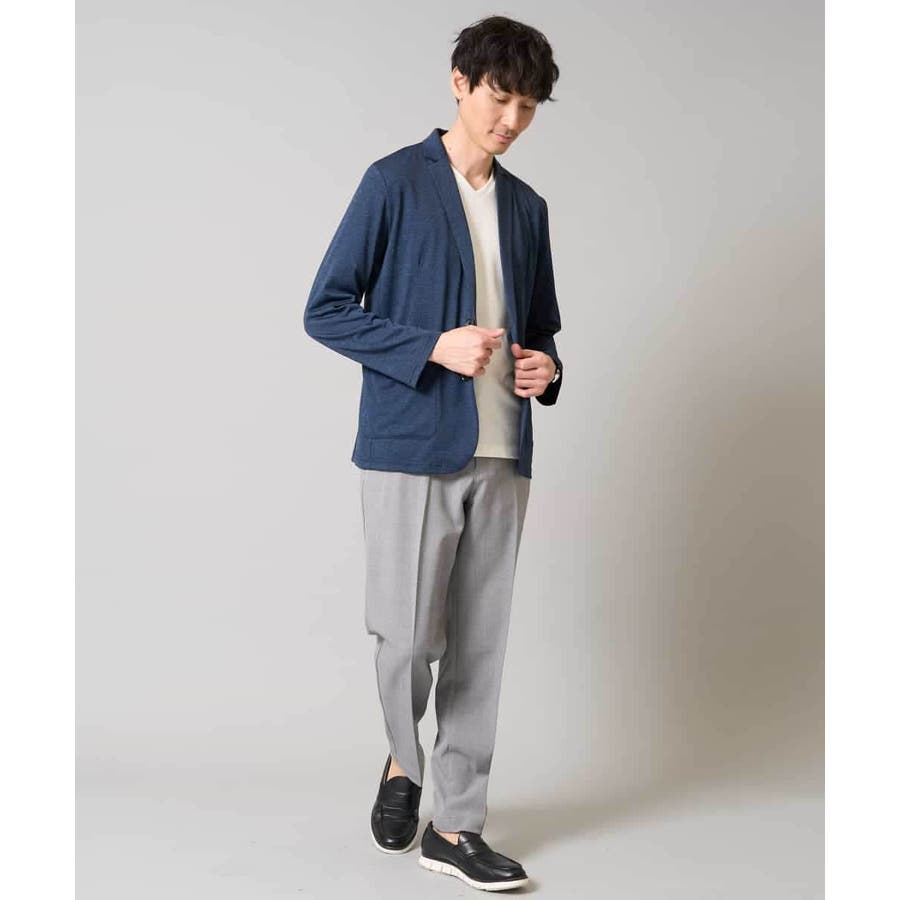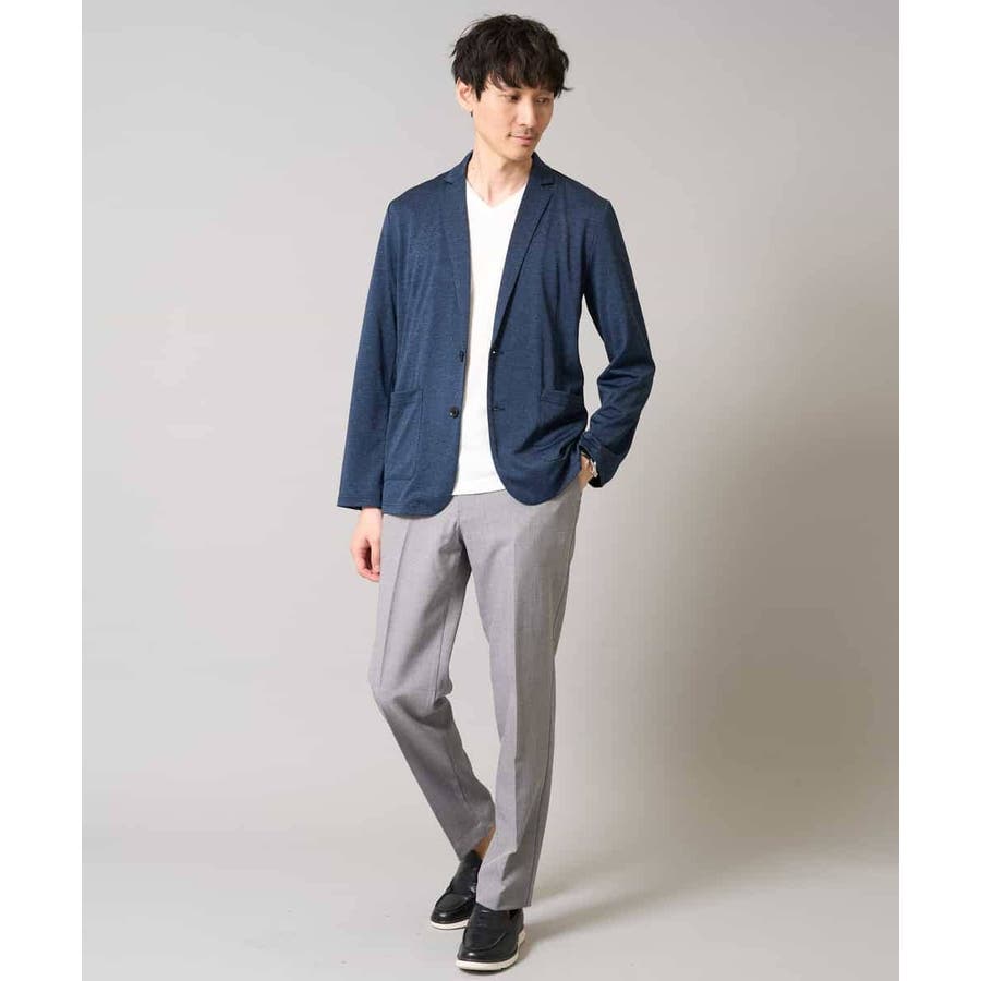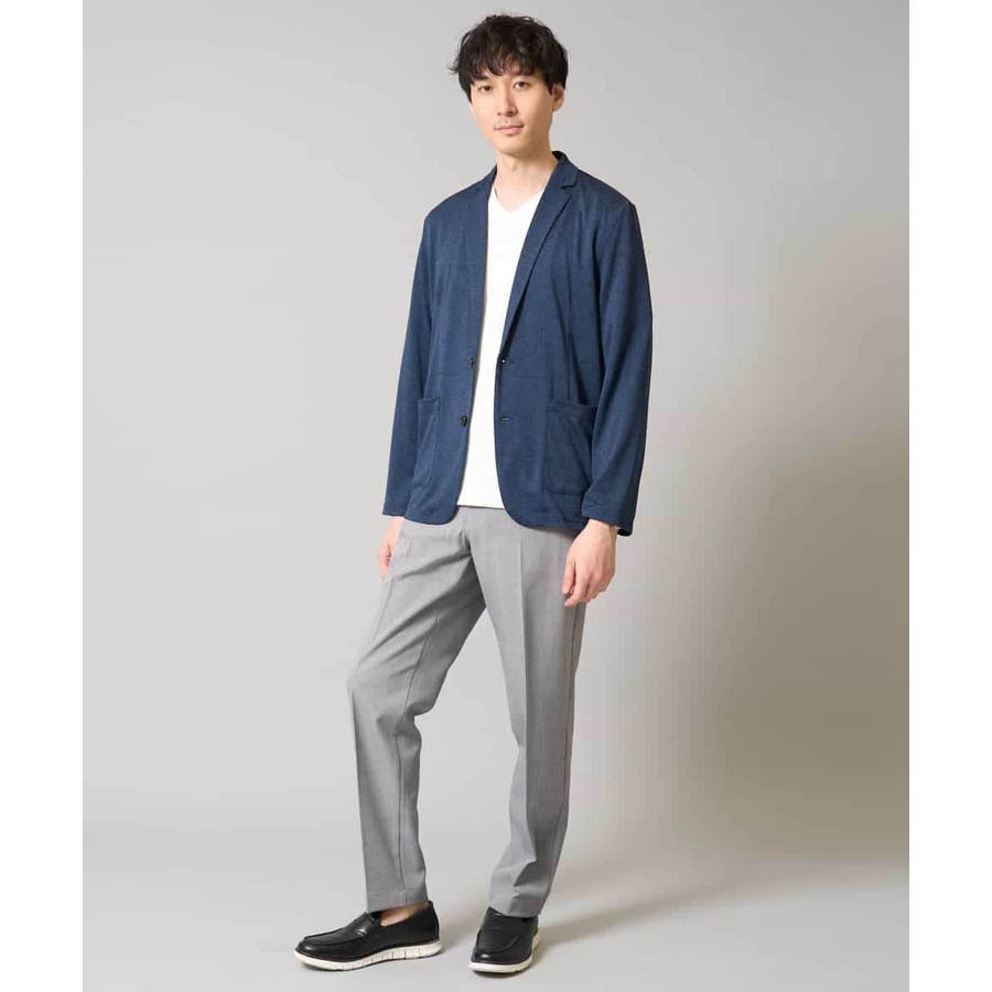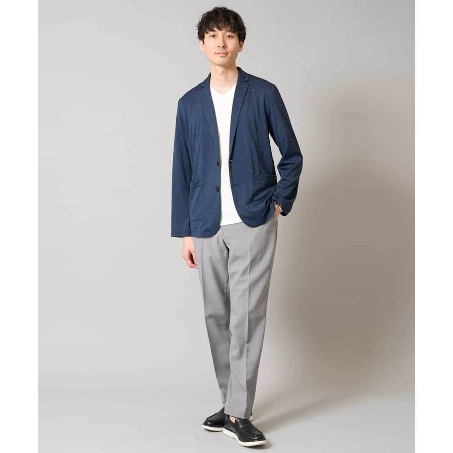テーラードジャケットデザインできちんと感がありつつも、薄手の天竺素材を使用しているので伸縮性もあり、カーディガン感覚で楽に羽織れるのも魅力。