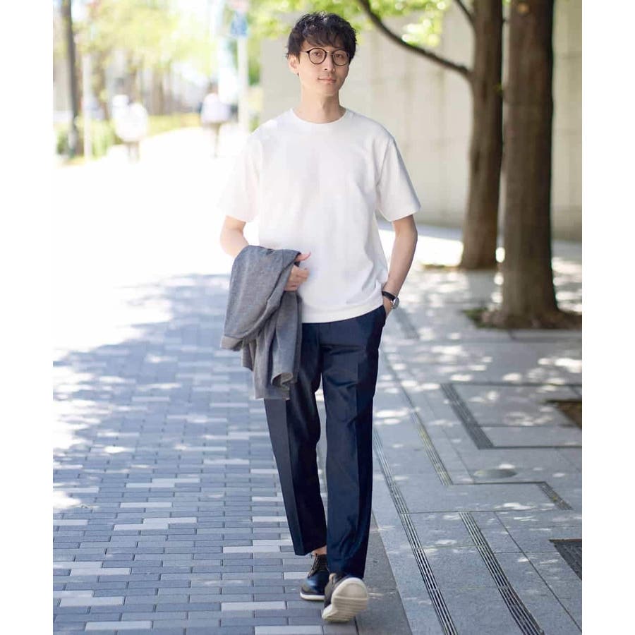 シャツやポロシャツ、VネックTシャツとのきれいめスタイルや、無地やジャカードなどのシンプルなクルーネックTシャツとのカジュアルスタイルも大人っぽくハマります。 ボトムはきれいめスラックスからカジュアルパンツでもバランス良くコーディネートできる汎用性の高い一着です。