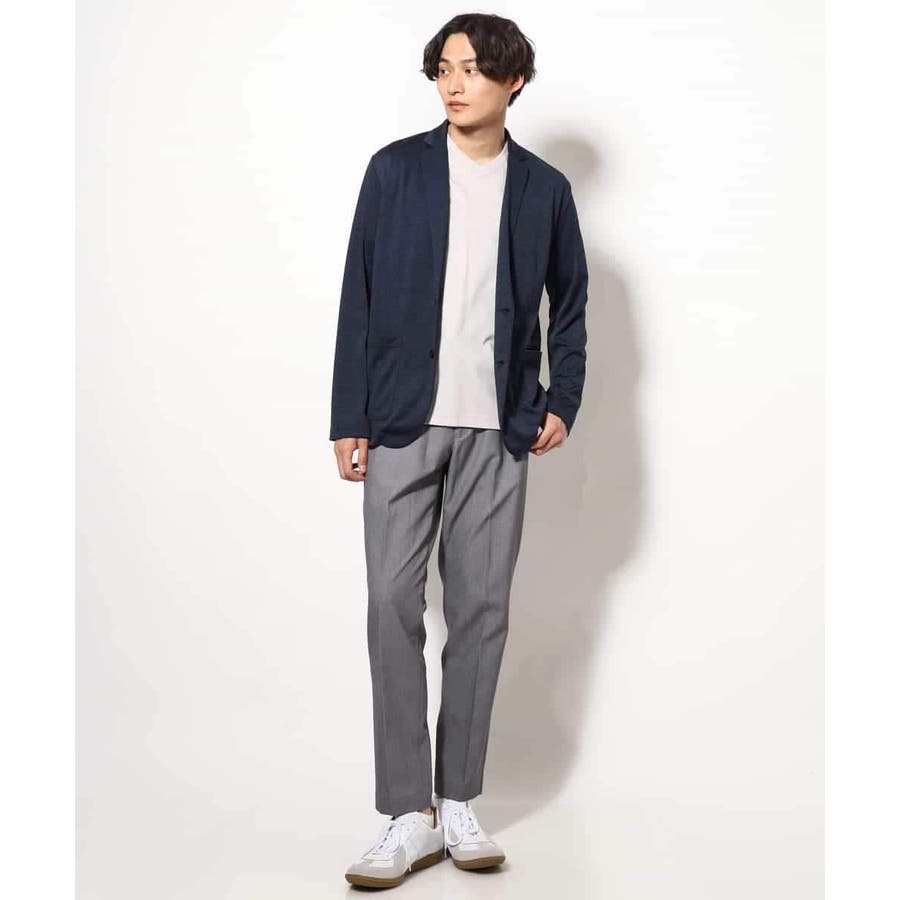 薄手の天竺素材を使用している為、テーラードジャケットデザインですが、横方向への伸縮性もあり、カーディガン感覚でラクチンに羽織れるアイテムです。