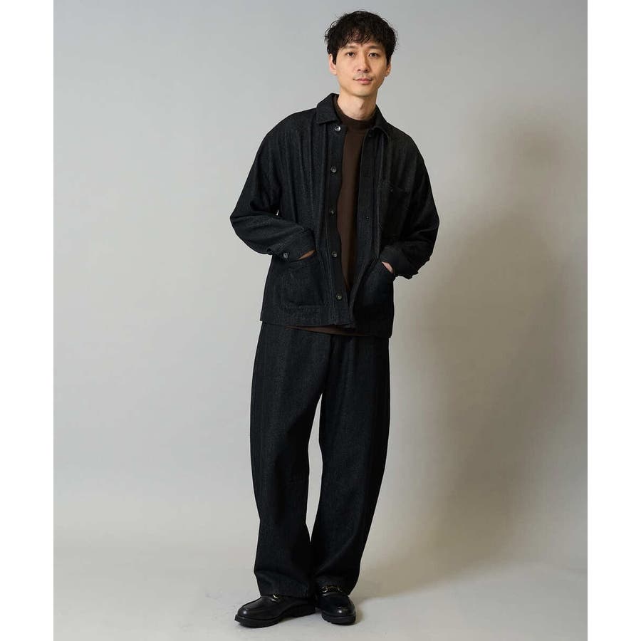 ゆとりのあるワイドシルエットで、パーカーやニットなど厚手のインナーも着やすいサイズ感。