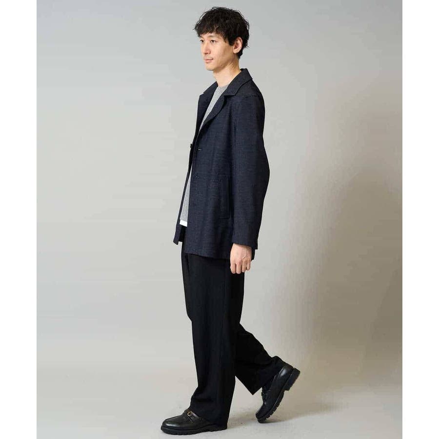 ボトムは同素材で展開しているボトムとのセットアップスタイルやスラックスなどと合わせたキレイ目スタイルがオススメです。