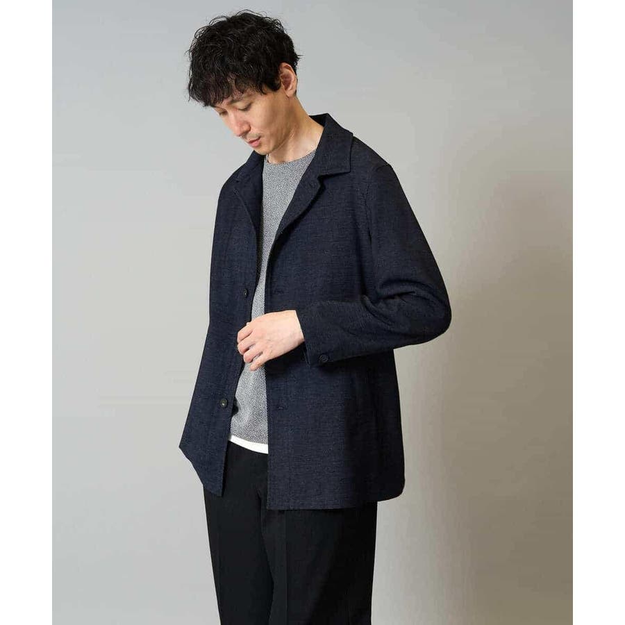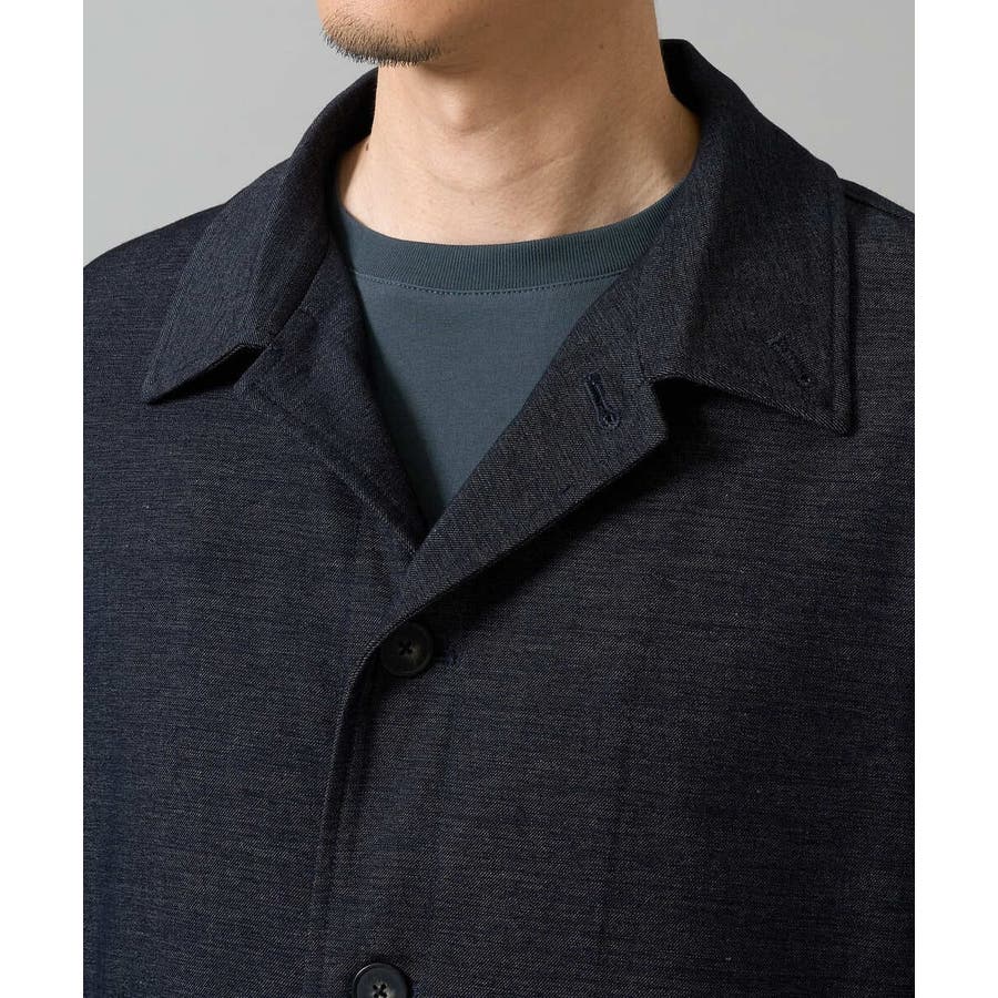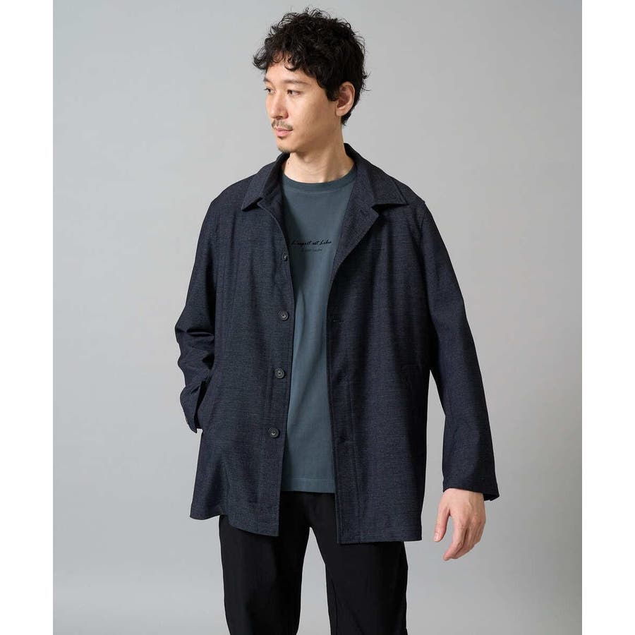 ストレッチの効いたシャンブレー素材を使用している為、伸縮性もありラクチンに羽織れます。