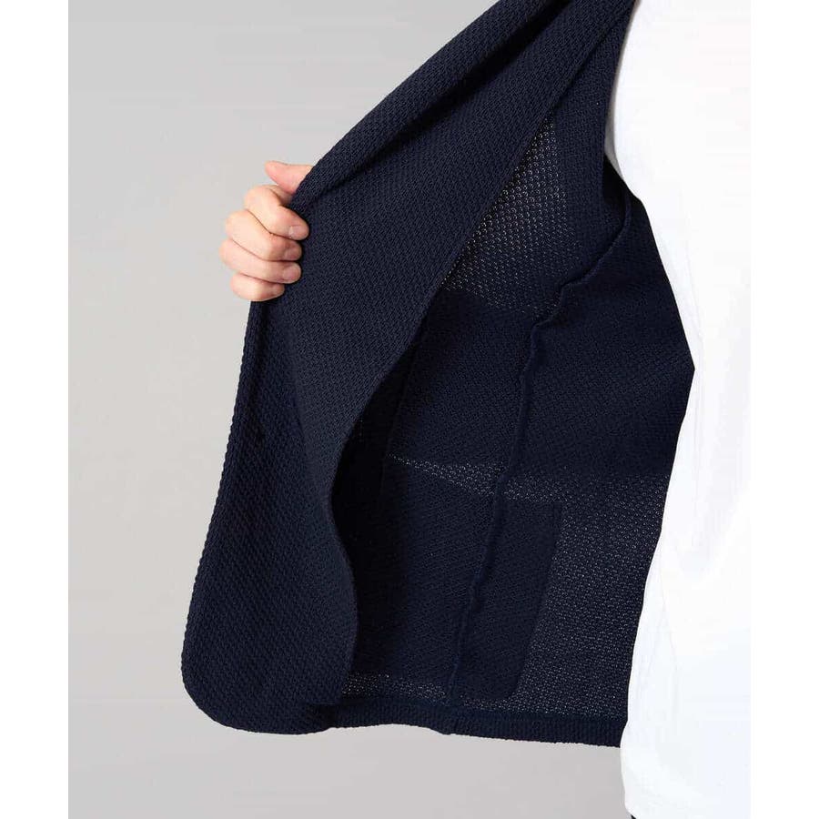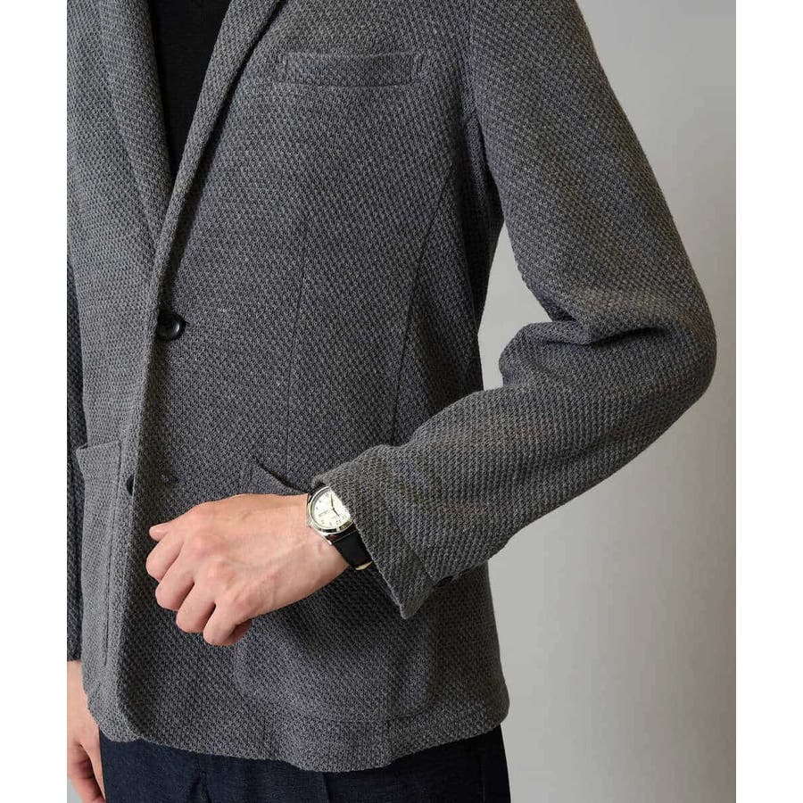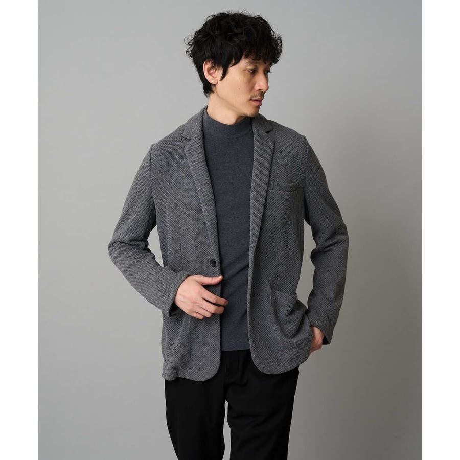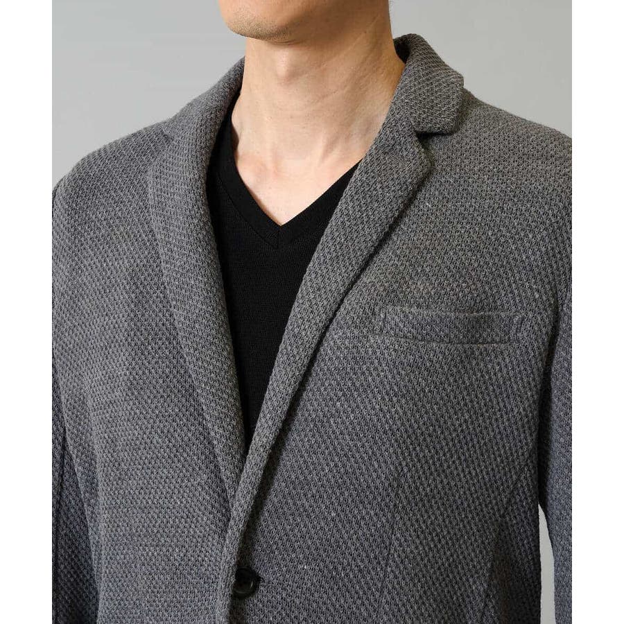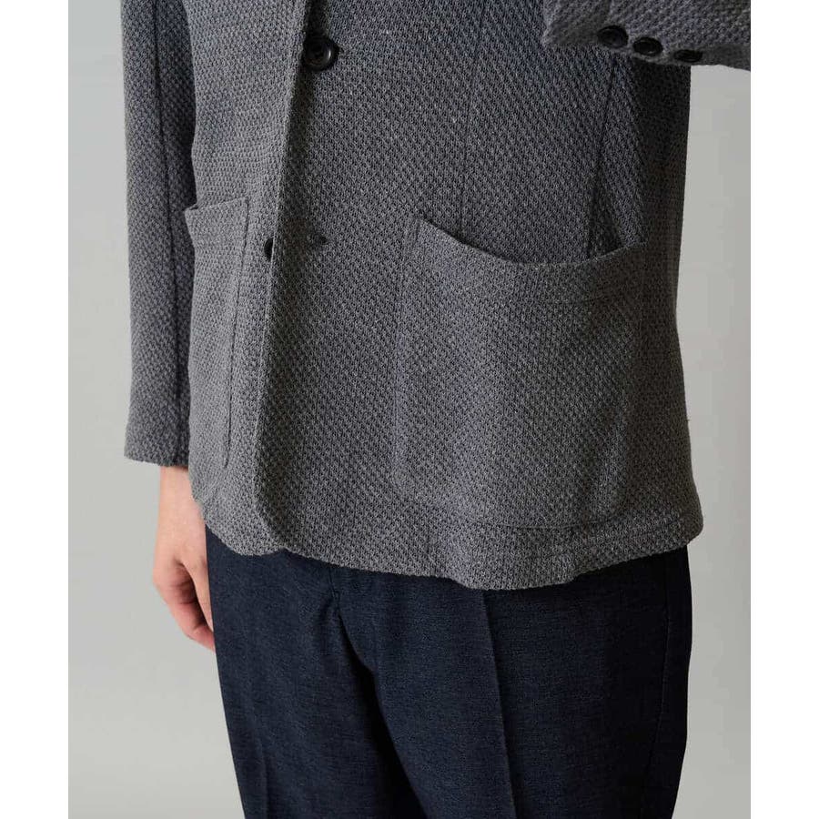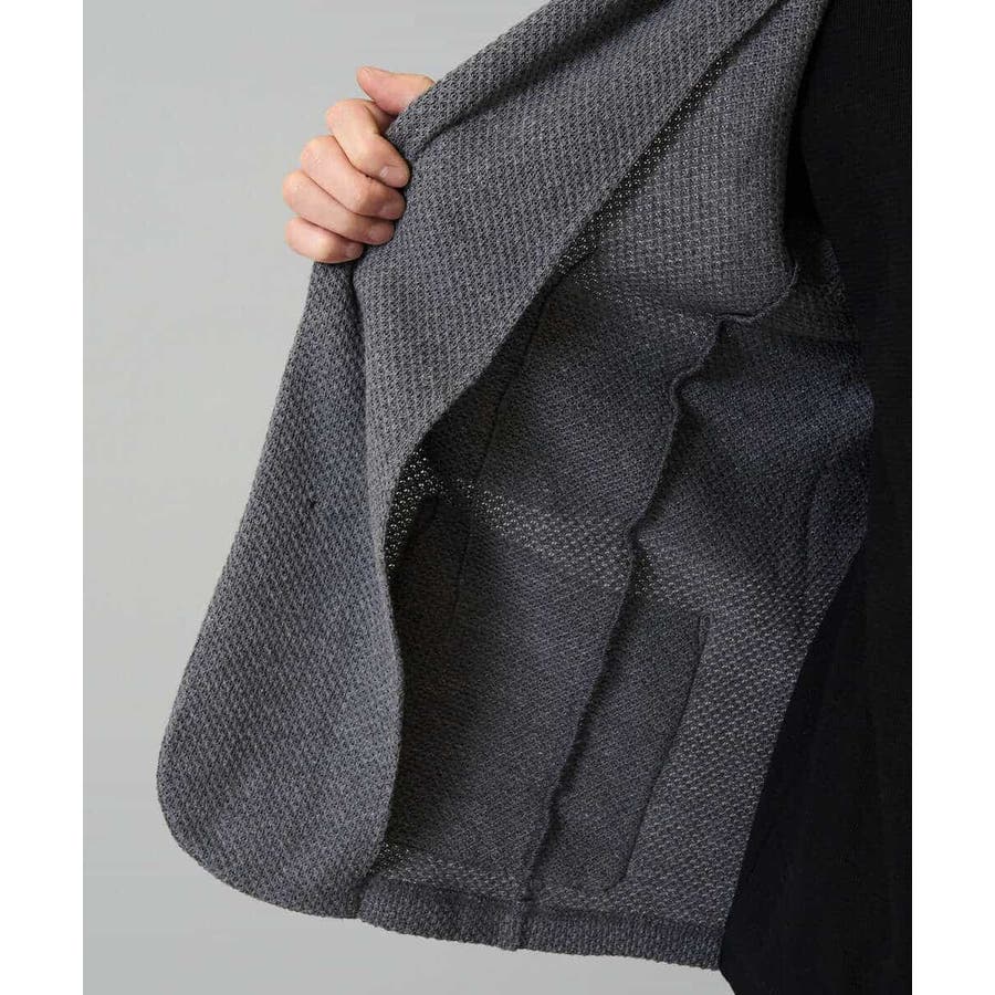 凹凸感のあるハニカムジャージー素材を使用している為、テーラードジャケットデザインですが、腕周りやお腹周りも窮屈さを感じづらく楽に着用できるのが嬉しいポイント◎