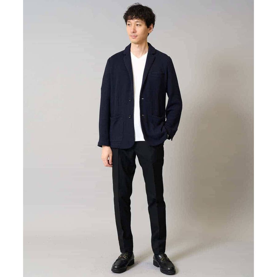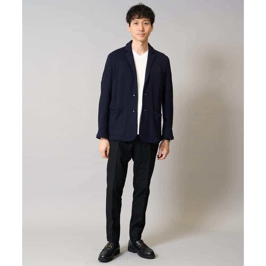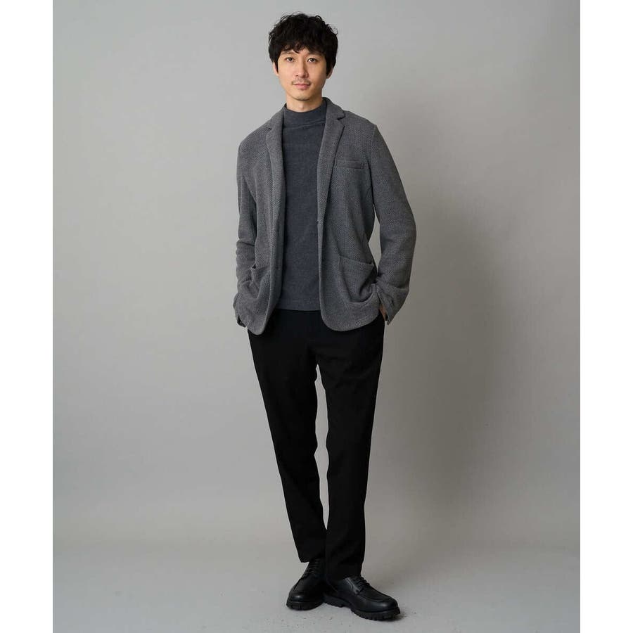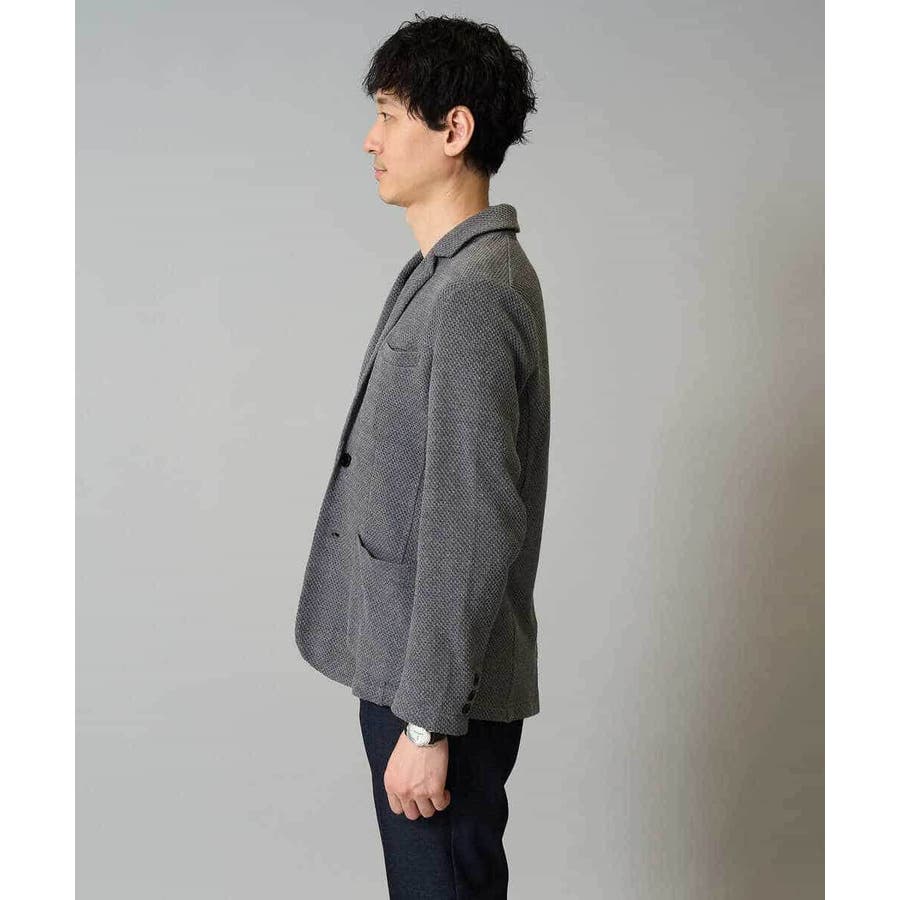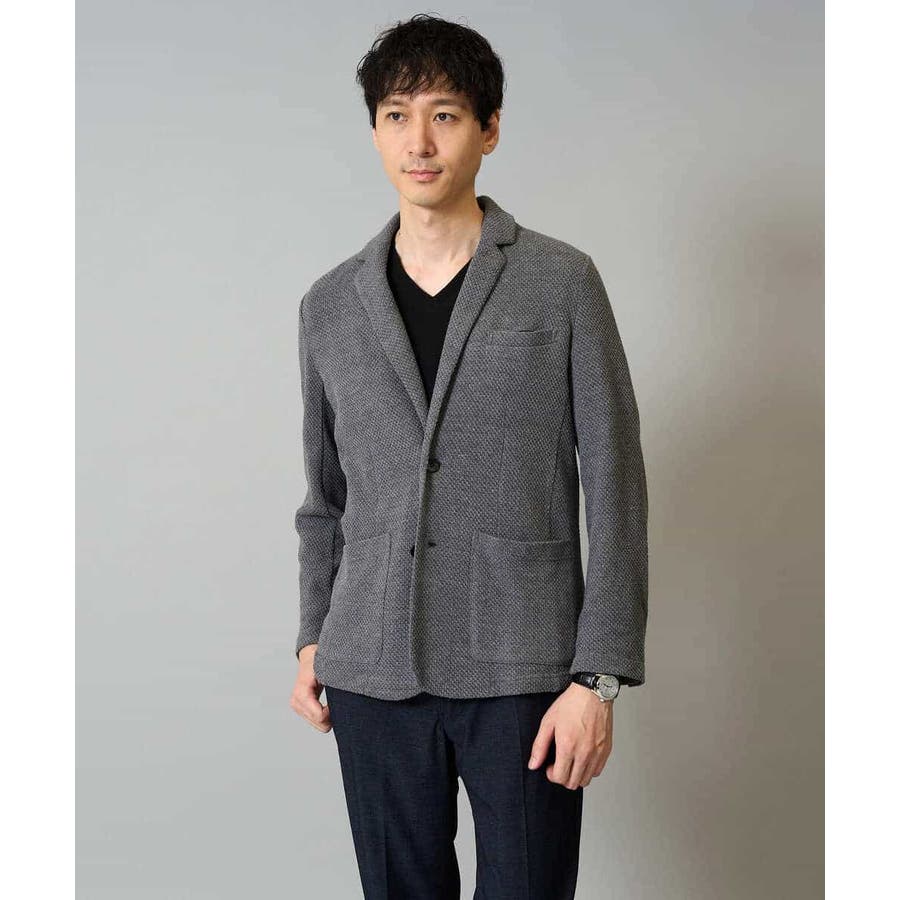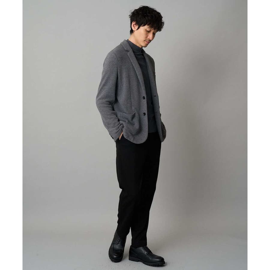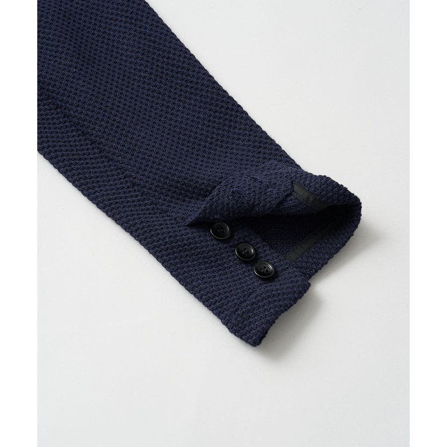 凹凸感のあるハニカムジャージー素材を使用している為、テーラードジャケットデザインですが、腕周りやお腹周りも窮屈さを感じづらく楽に着用できるのが嬉しいポイント◎