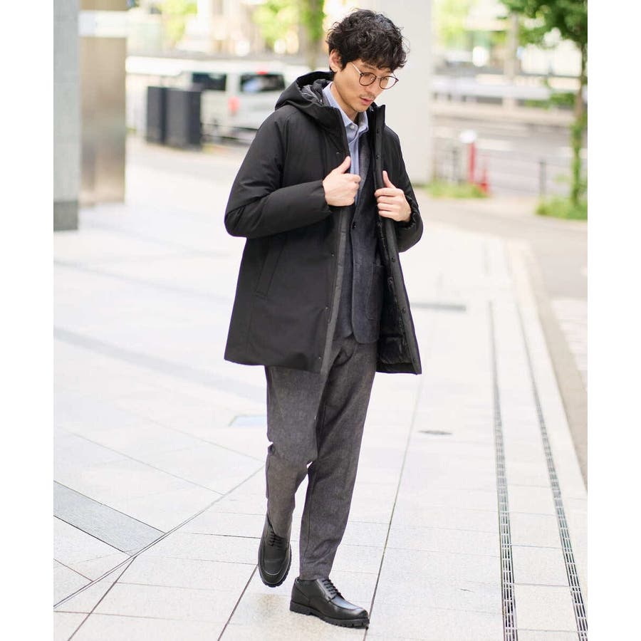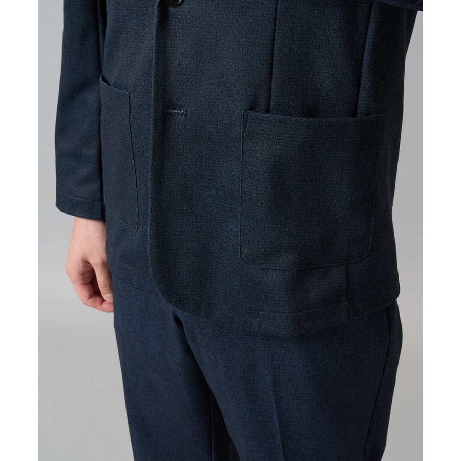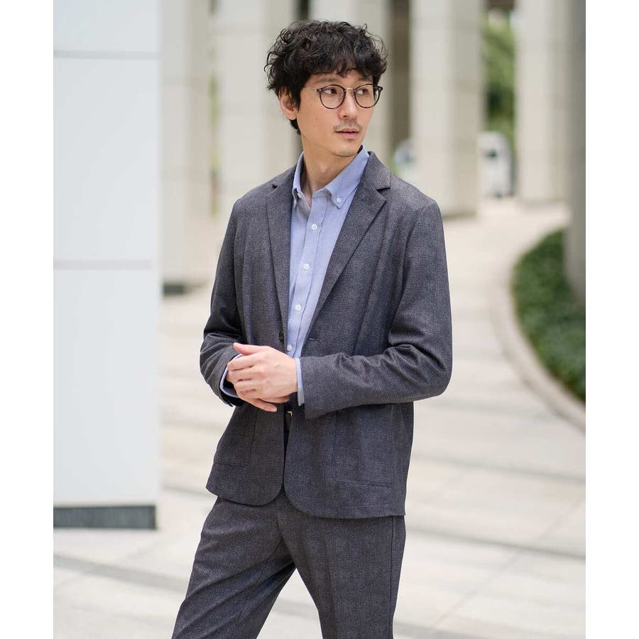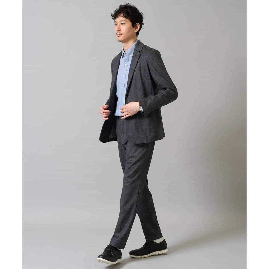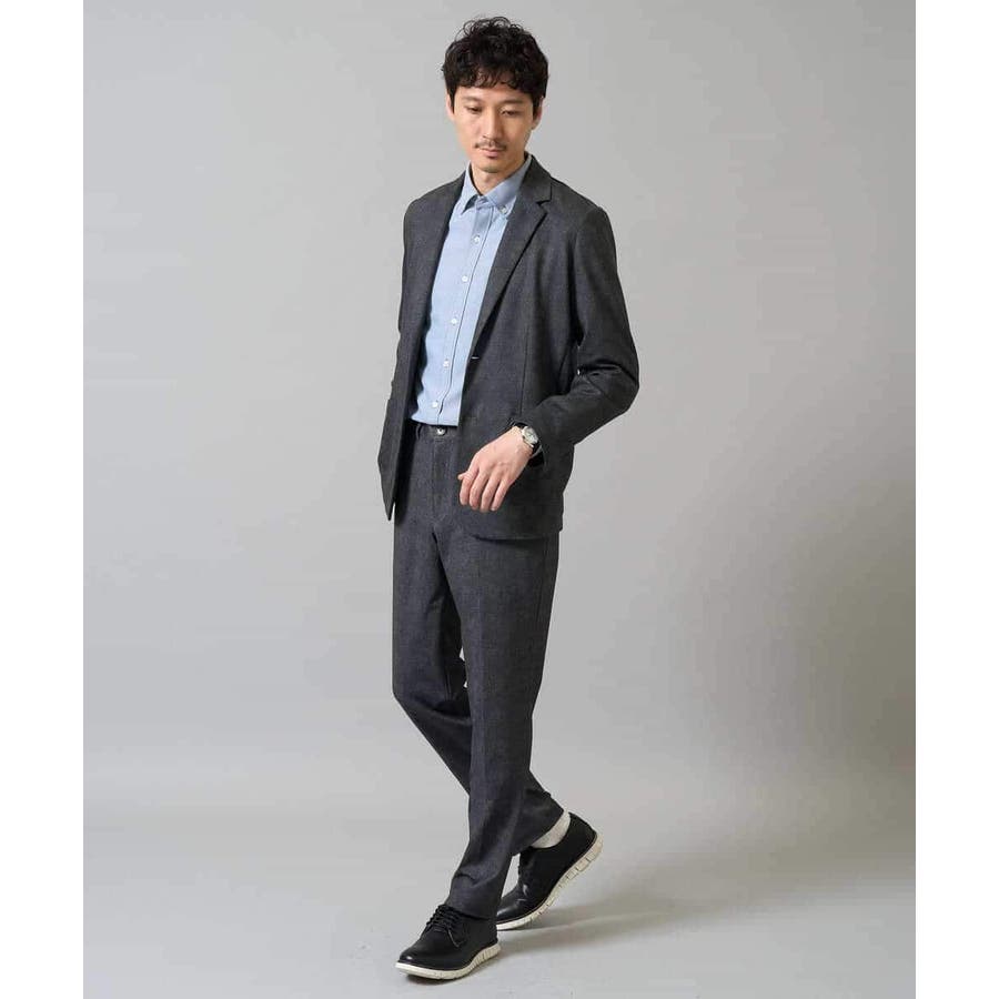 同素材で展開しているボトムとのセットアップスタイルが、ビジネスシーンにおすすめ。