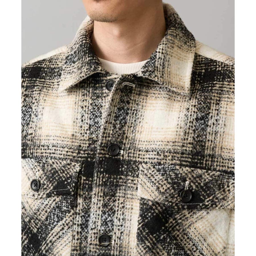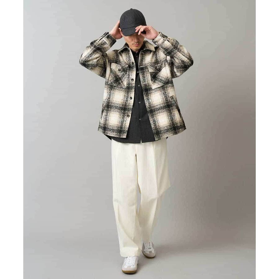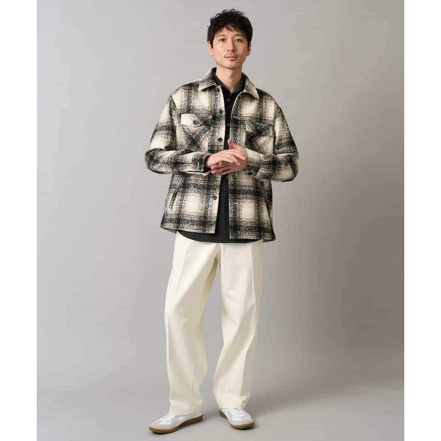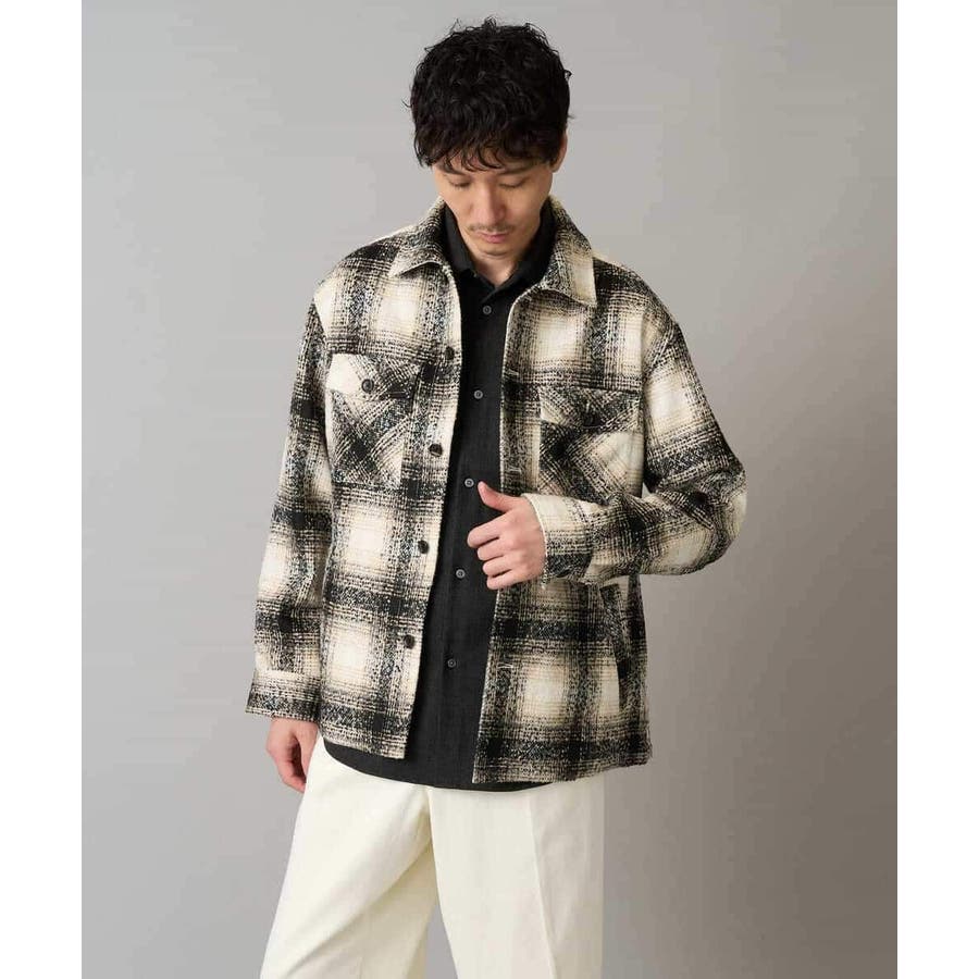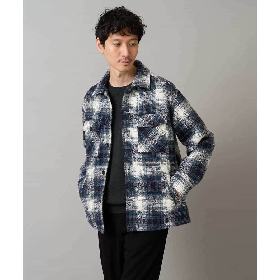 今季注目のツイード素材を使用したチェック柄CPOジャケット。
