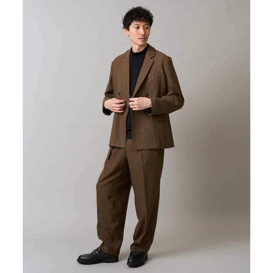 【イージーケア 毛玉になりにくい】LANATECヘリンボーンダブルブレストジャケ…
