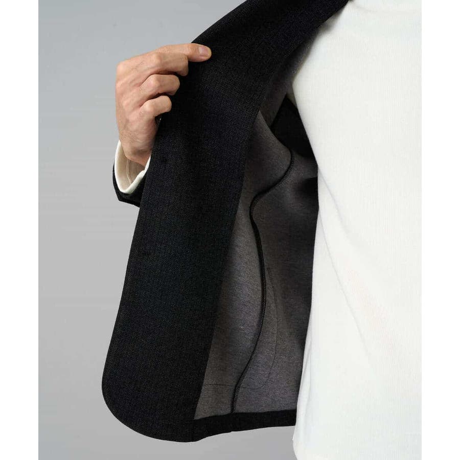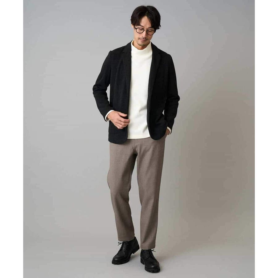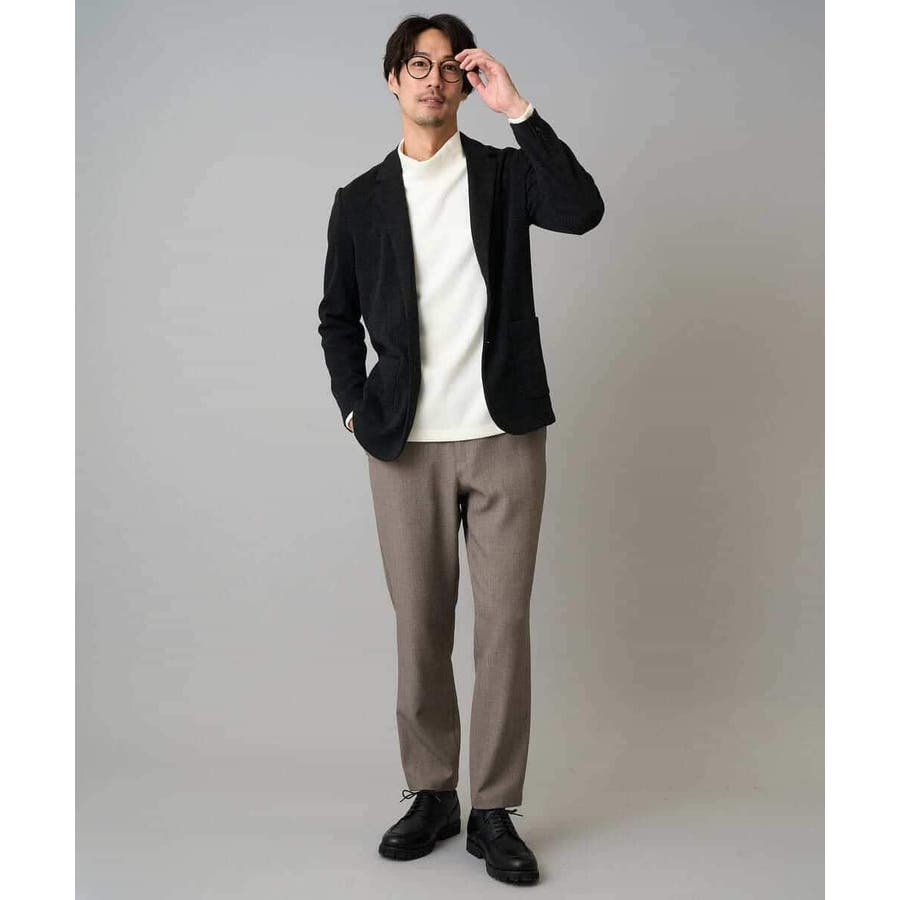 ジャージ素材なので伸縮性があり、スマートな見栄えでありながらもストレスフリーな着心地を兼ね備えています。