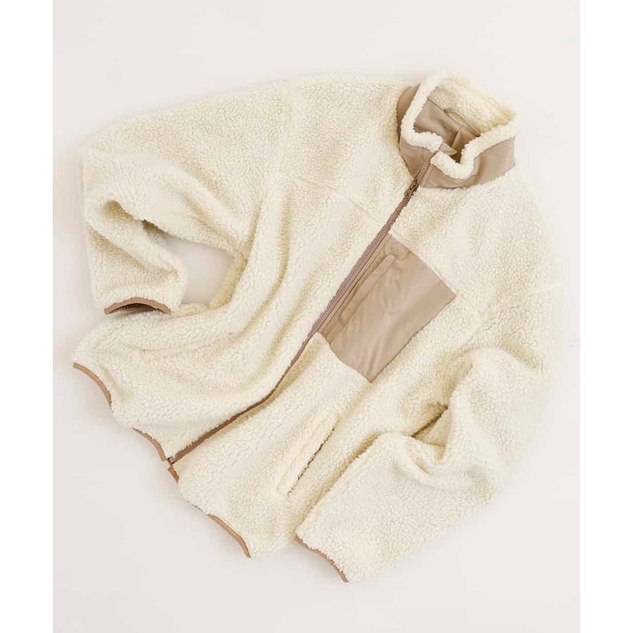 表面はトレンドのボア素材を使用したボンバージャケットタイプのブルゾン。
