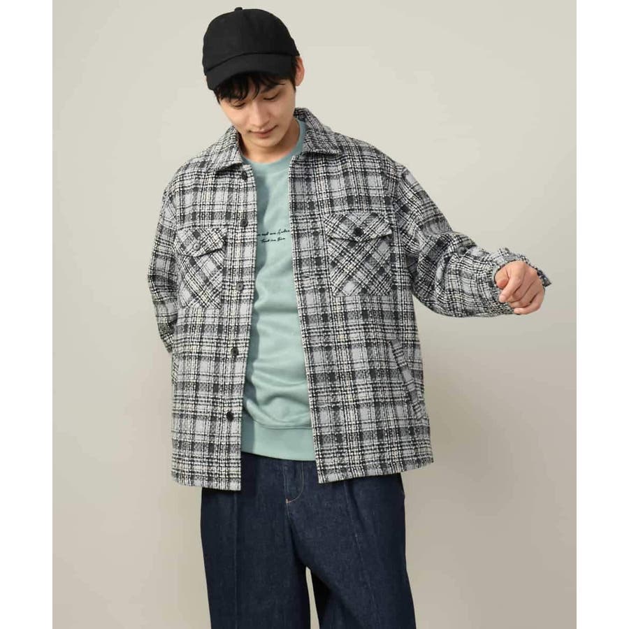 今季注目のツイード素材を使用したチェック柄CPOジャケット。