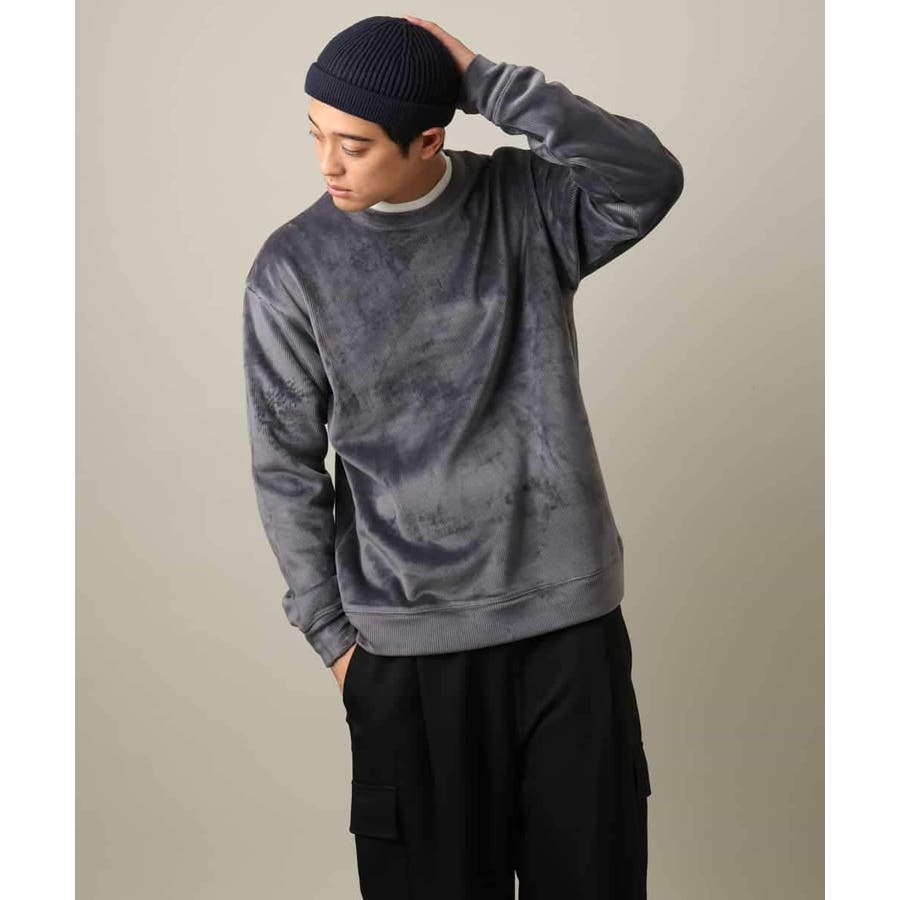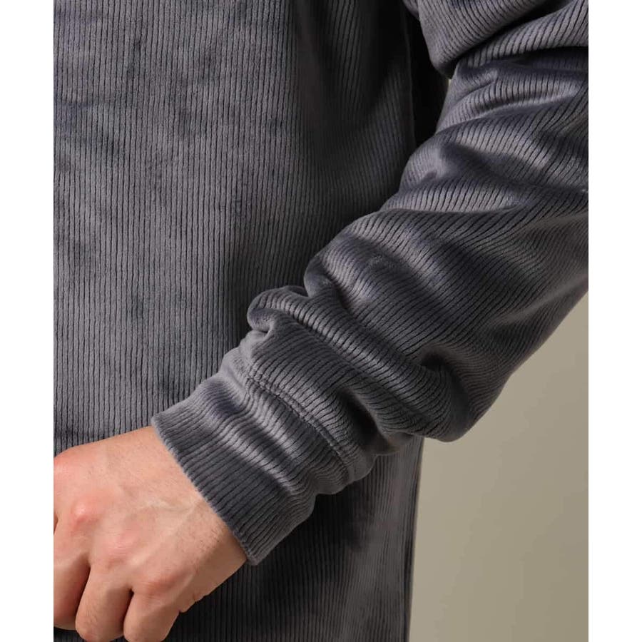 ジャージーコーデュロイ素材を使用したプルオーバー。