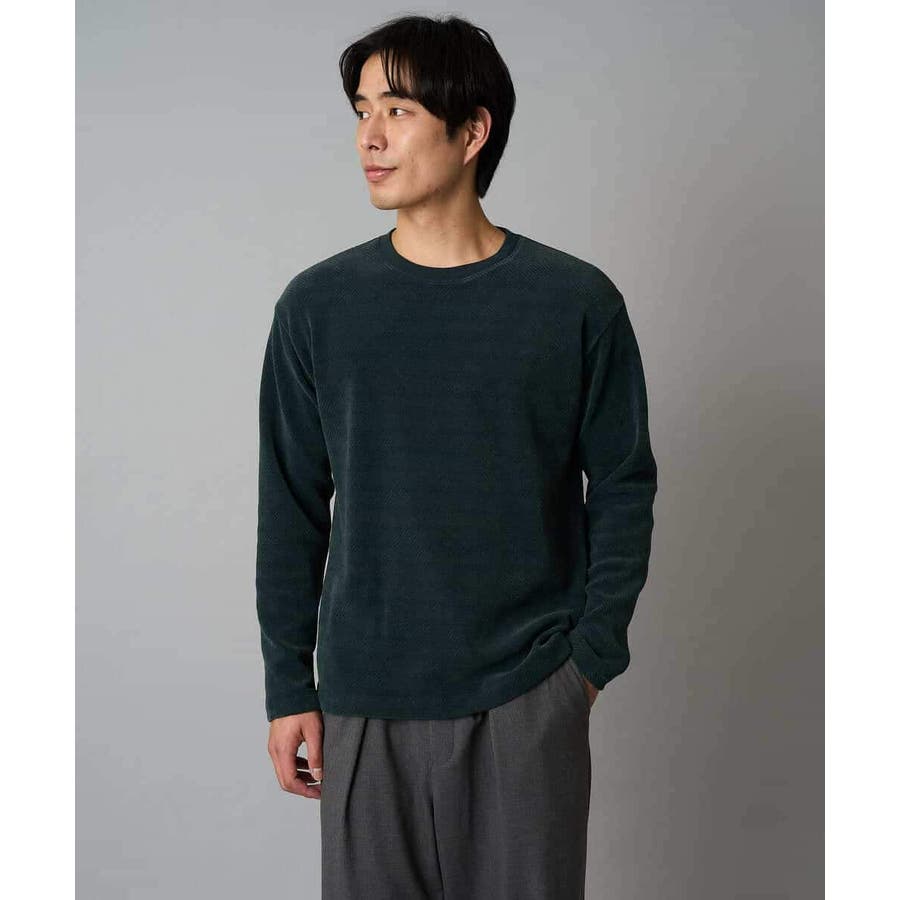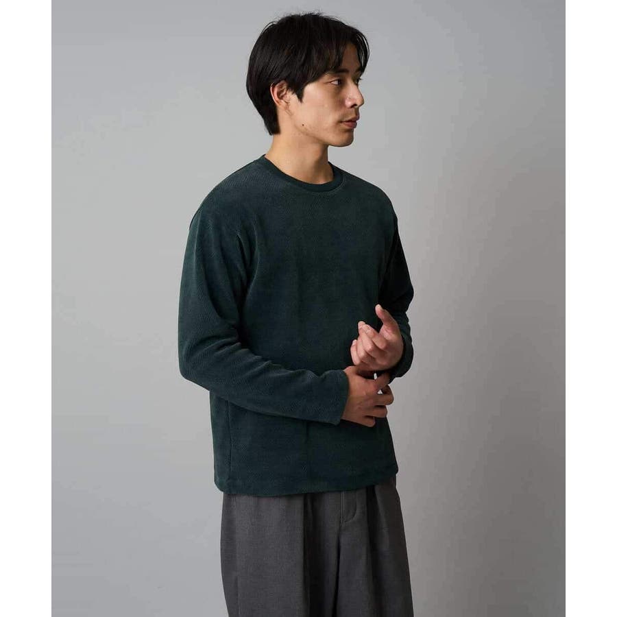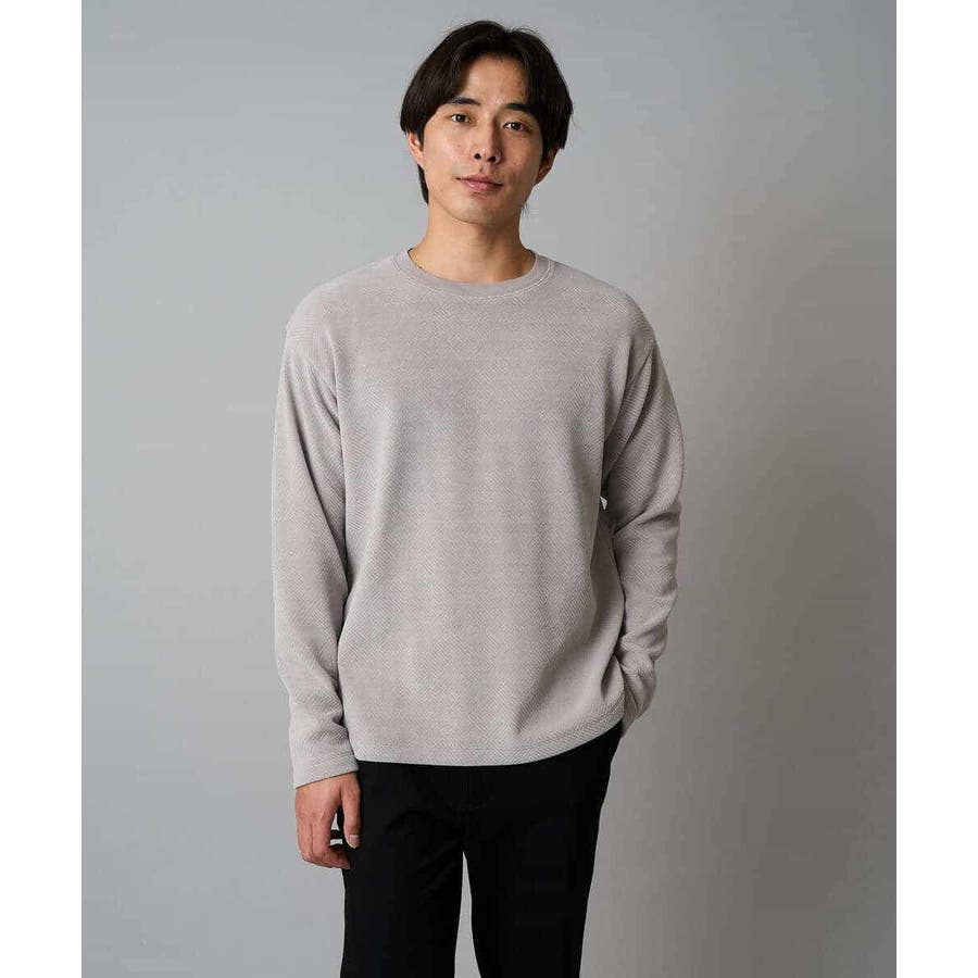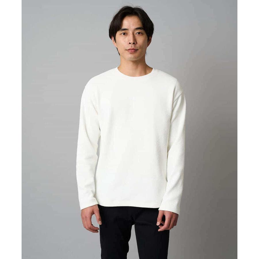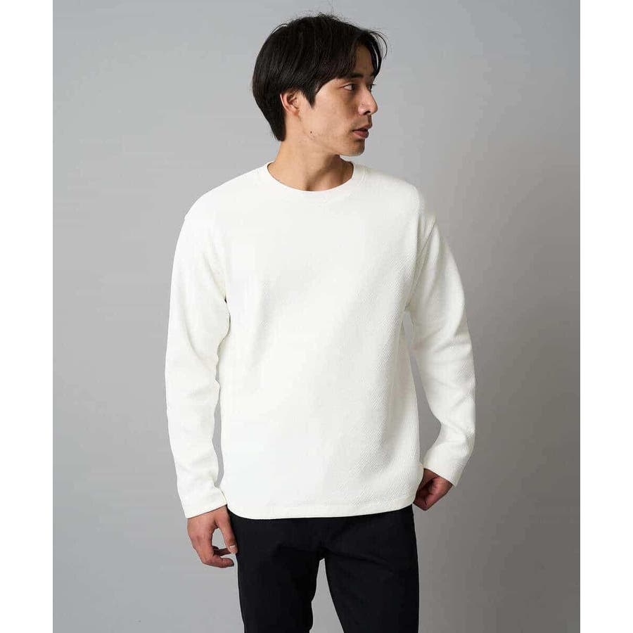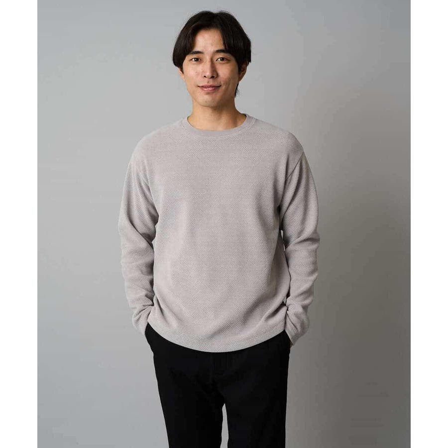 ◆きれいめスタイルに決まる! モールジャカード素材を使用したクルーネックプルオーバー◆