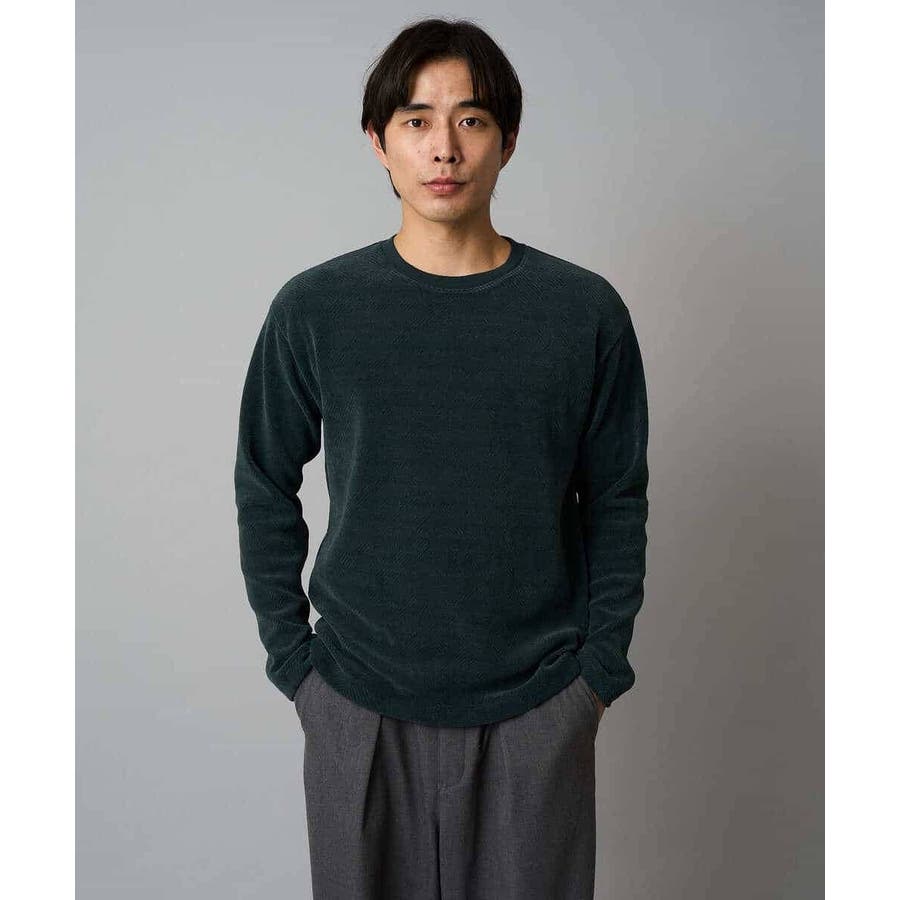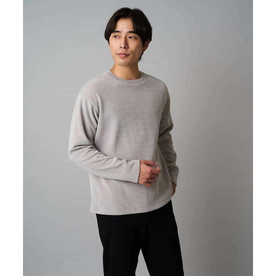 【洗濯機で洗える】モール幾何ジャカードクルーネックプルオーバー