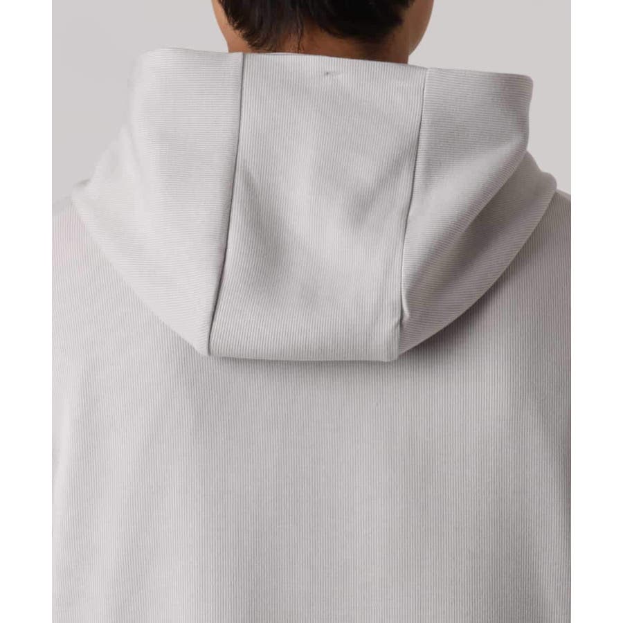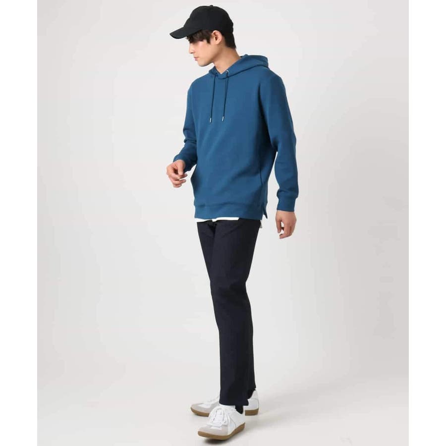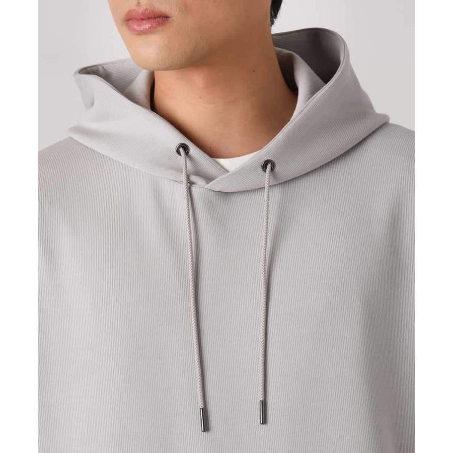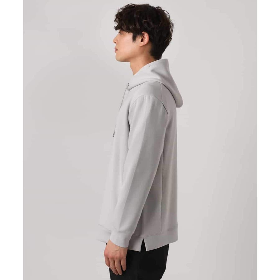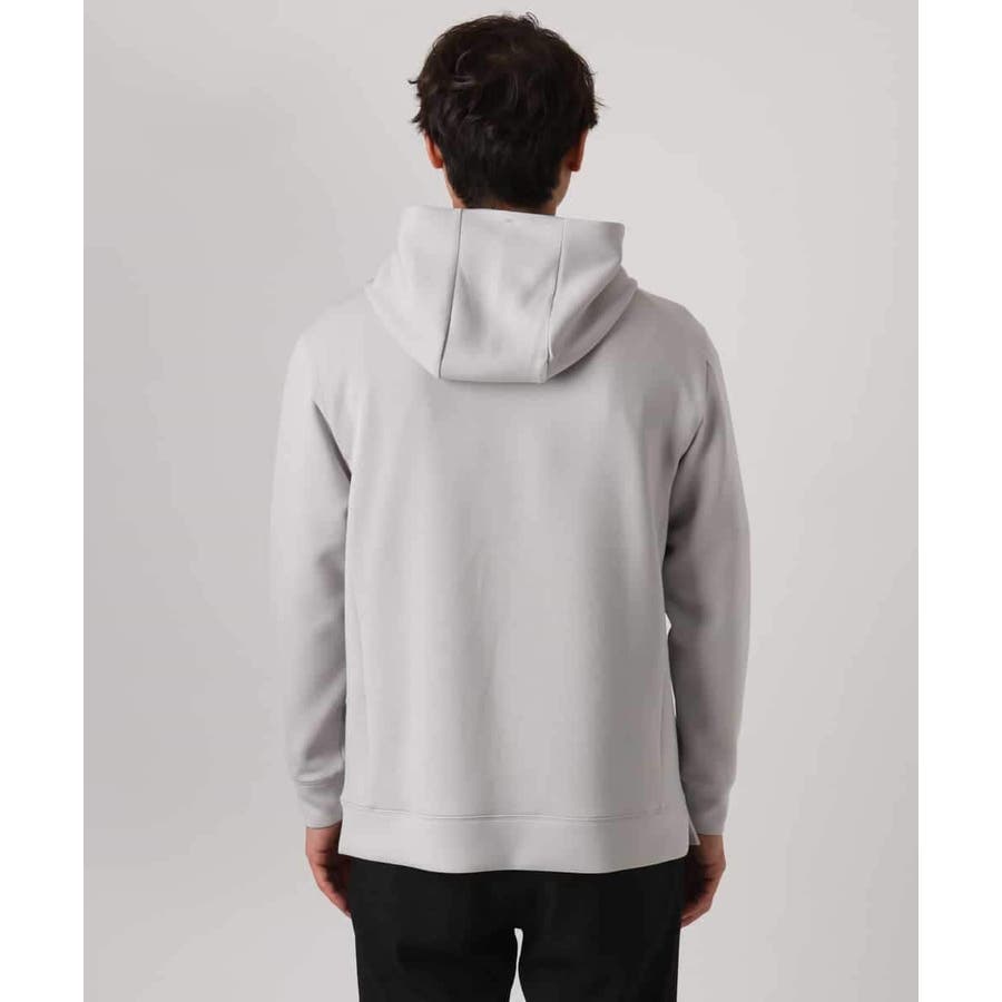 フード部分もステッチレスにすることでよりクリーンな印象になり、シームポケットを採用することで、スウェットパーカーにはないきれいめで大人らしいパーカーに仕上げました。