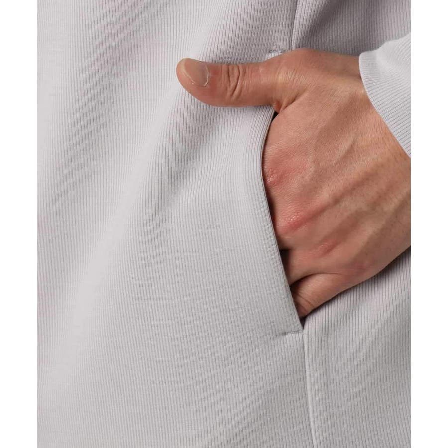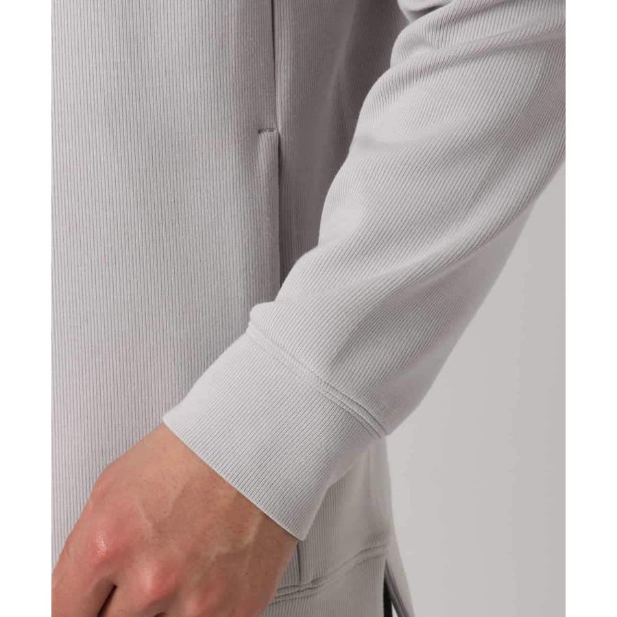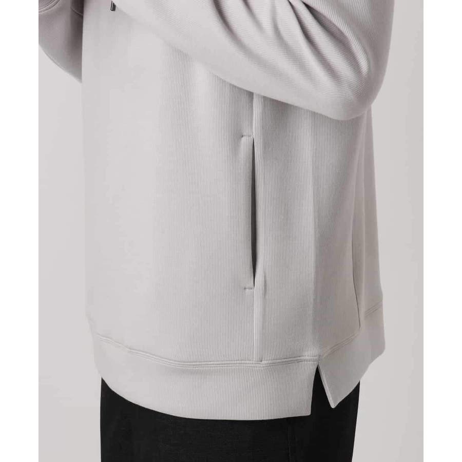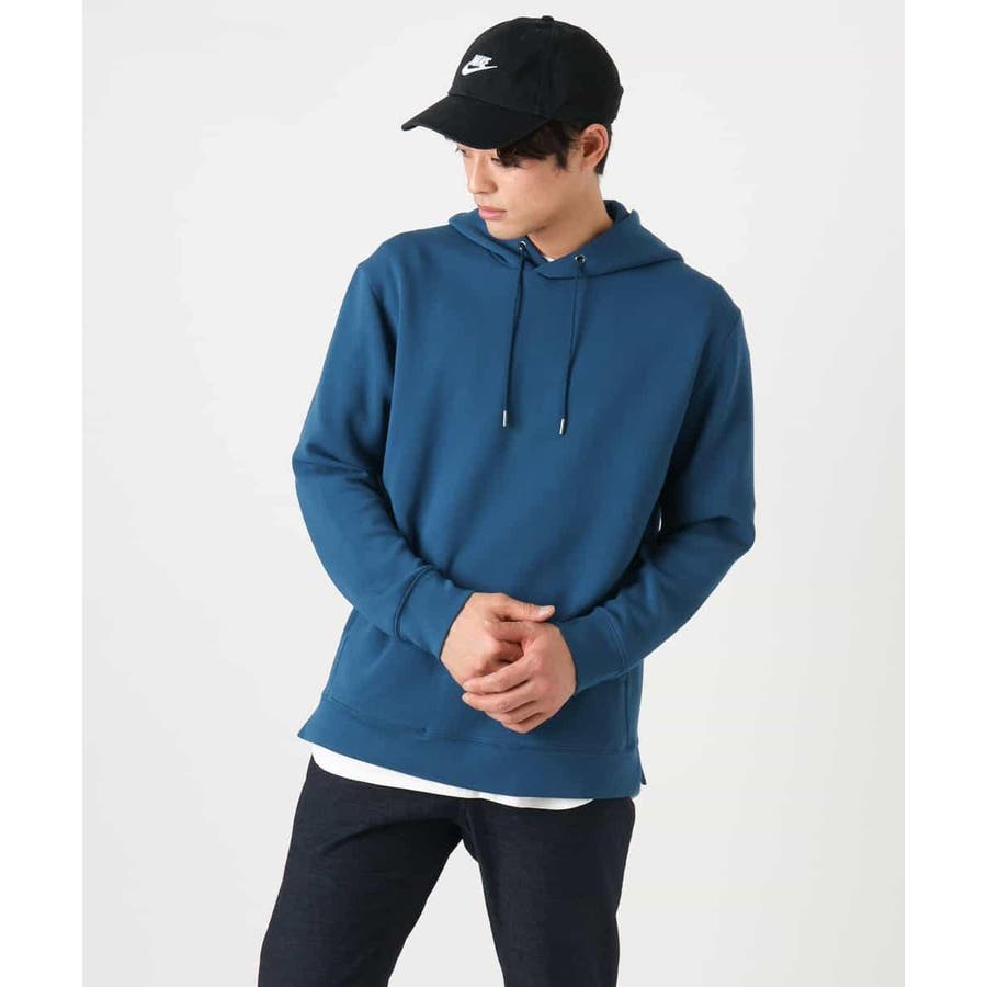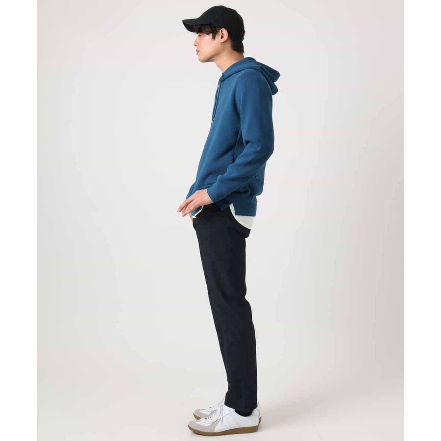 フード部分もステッチレスにすることでよりクリーンな印象になり、シームポケットを採用することで、スウェットパーカーにはないきれいめで大人らしいパーカーに仕上げました。