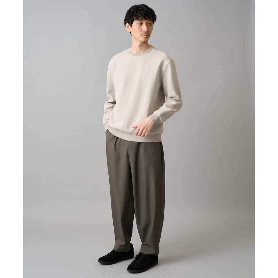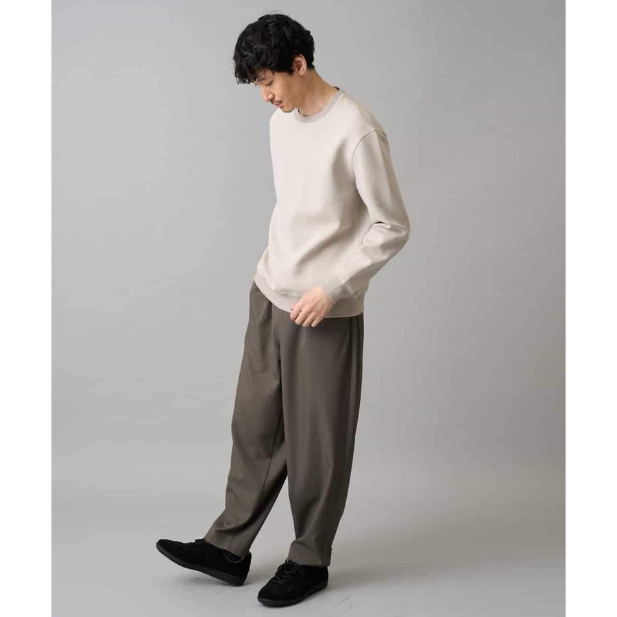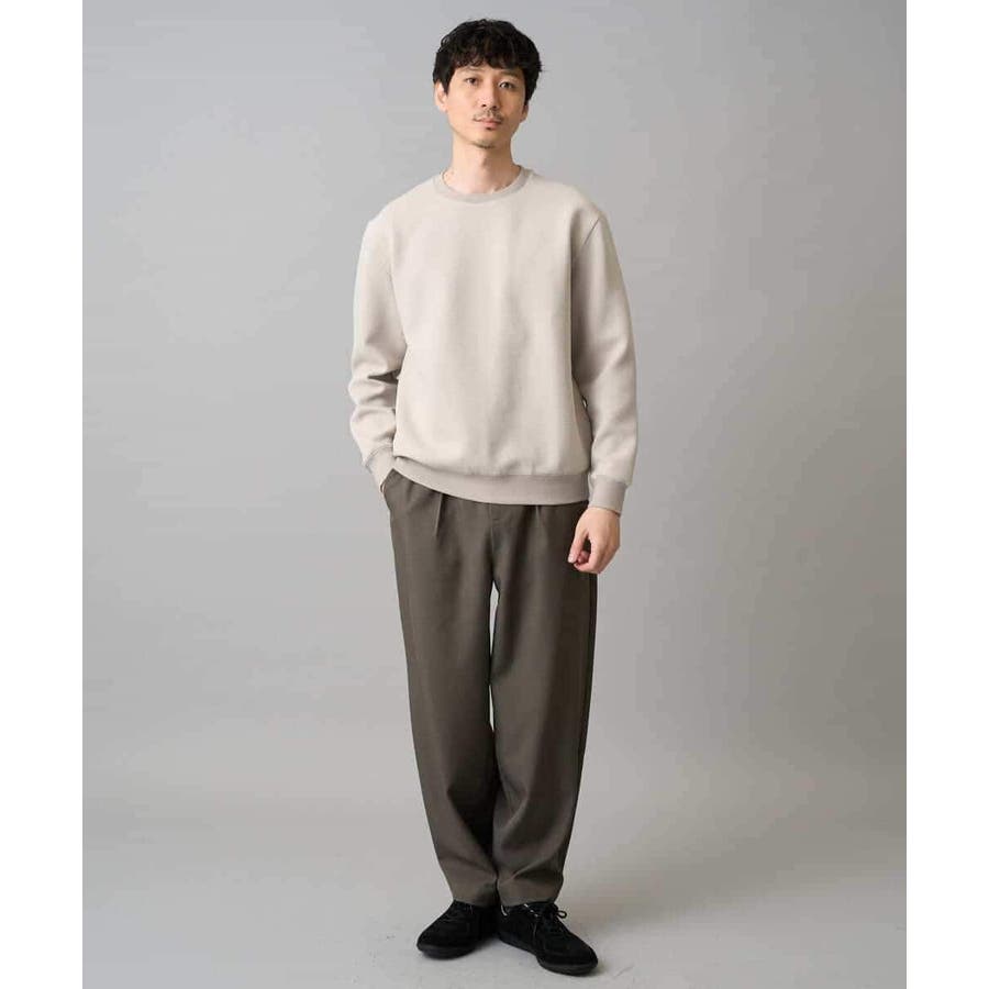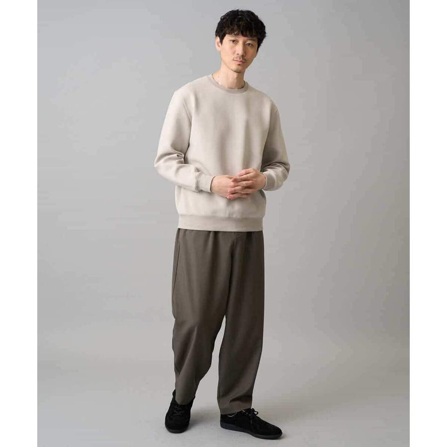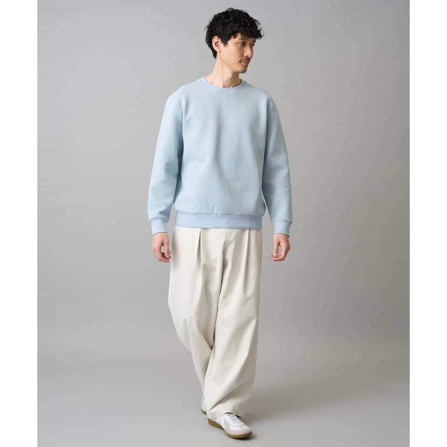 スウェットと言えば、裏毛のカジュアル素材が定番ですが、より大人の方向けに上品な素材感できれいめにまとまるので、女性からも好印象で人気の高いアイテムです。