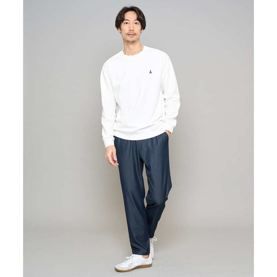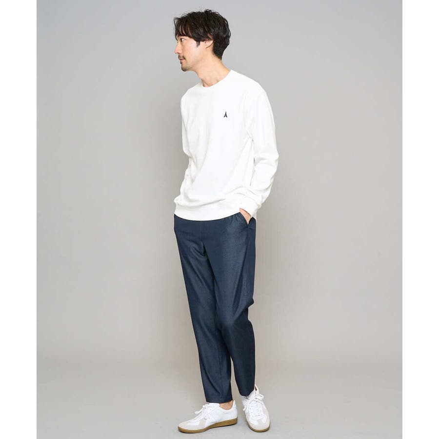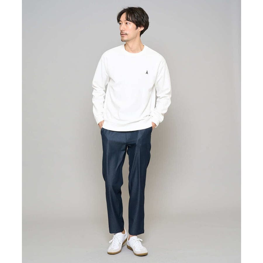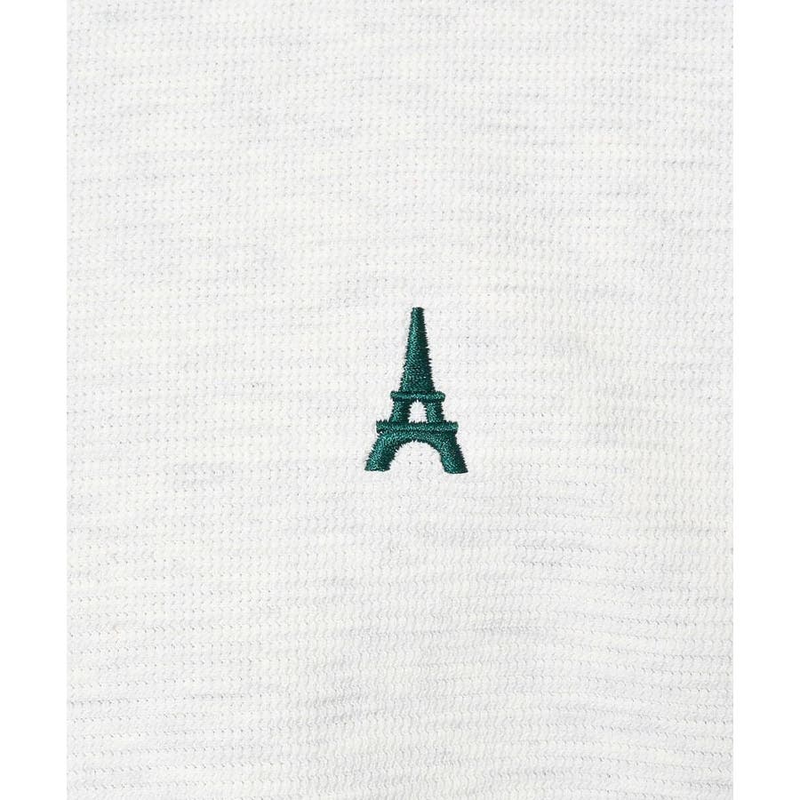左胸にエッフェル塔モチーフの刺繍を施し、シンプルながらもこだわりのある程よいアクセントになっています。シルエットは身幅はややゆとりをもたせながらも肩幅をコンパクトにすることで、着心地はラクチンですが、スッキリきれいめ見えします。