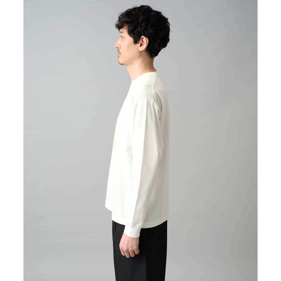 一枚で着てもサマになり、カーディガンやシャツとのレイヤードスタイルにもバランスのよいカットソーです。 ボトムはきれい目な雰囲気であればスラックスデザイン、カジュアルに着こなすのであればゆとりのあるタック入りパンツもオススメです。 真夏であればハーフパンツとの相性もバランス良くきまります