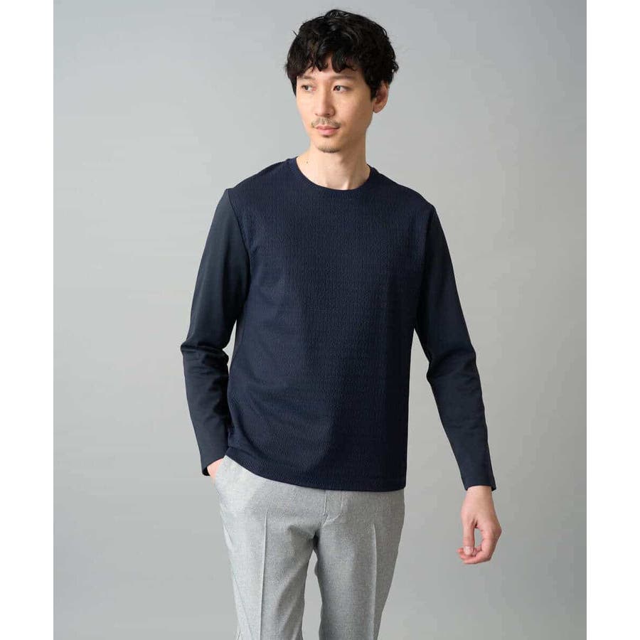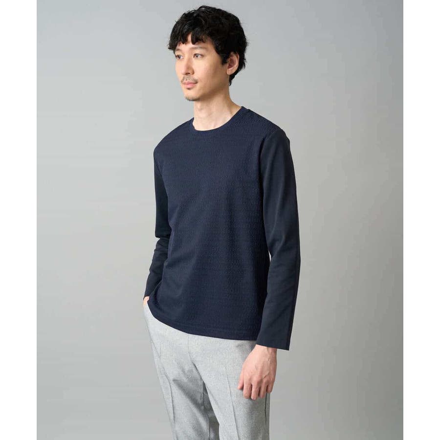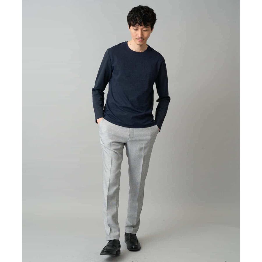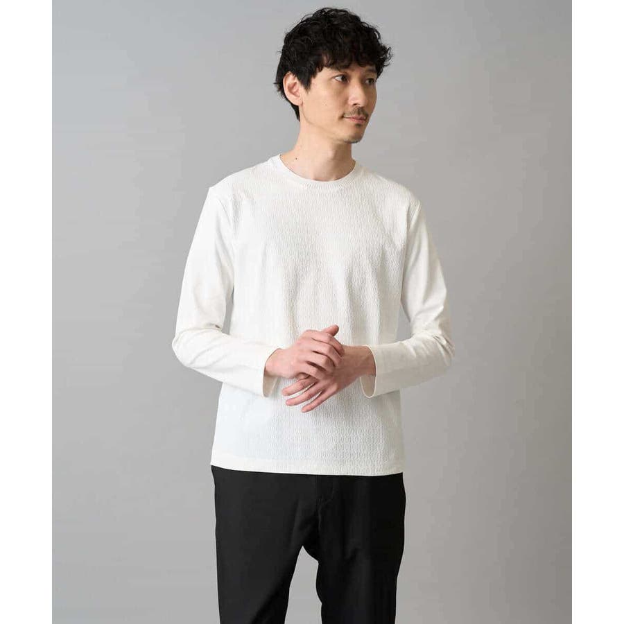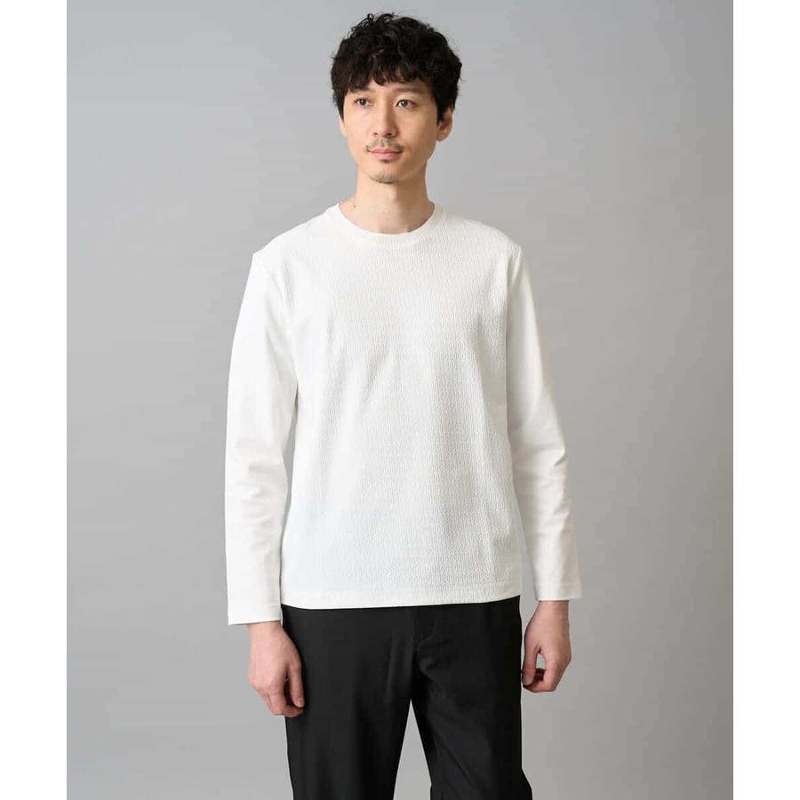 素材感を活かしたクルーネックデザインで、汎用性抜群です。身幅は少しゆとりがあるため、スッキリとキレイに見えながら着用しやすいシルエットです。