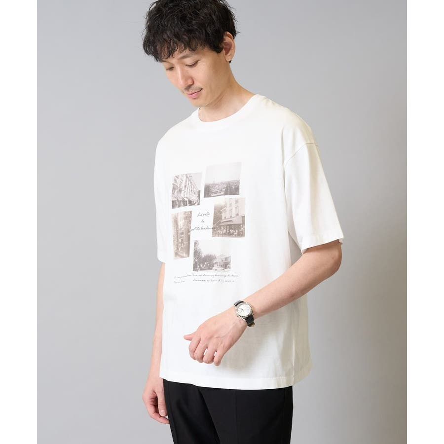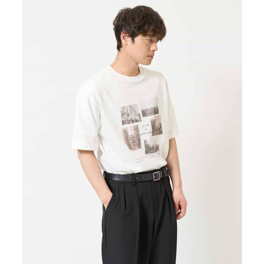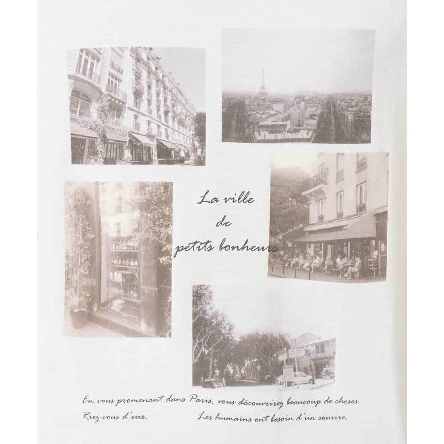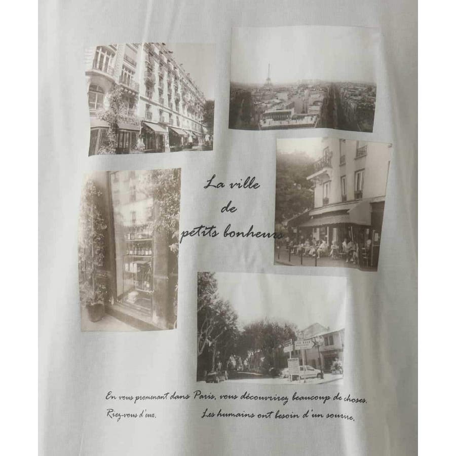 旅の楽しさを感じる、レトロなPARISの街並みフォトをコラージュしたフォトプリントカットソー。