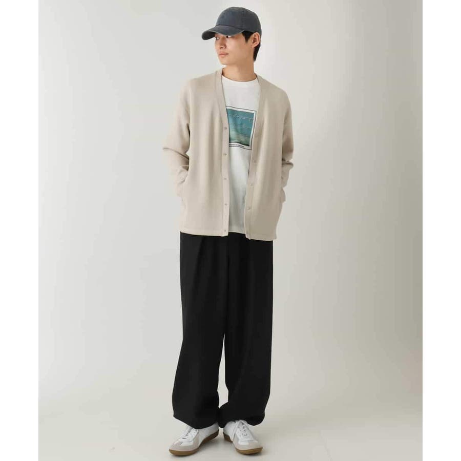 程よくゆとりのあるセミワイドシルエットで、シャツやカーディガンのインナーにも使いやすいサイズ感。