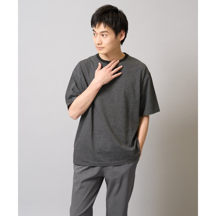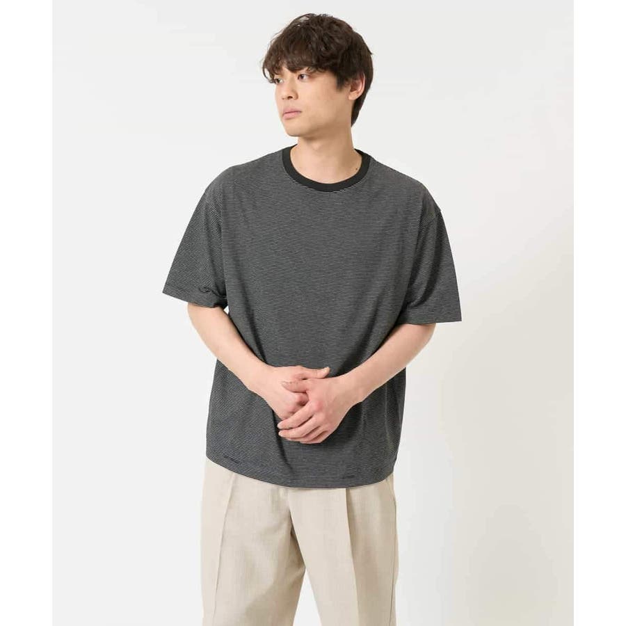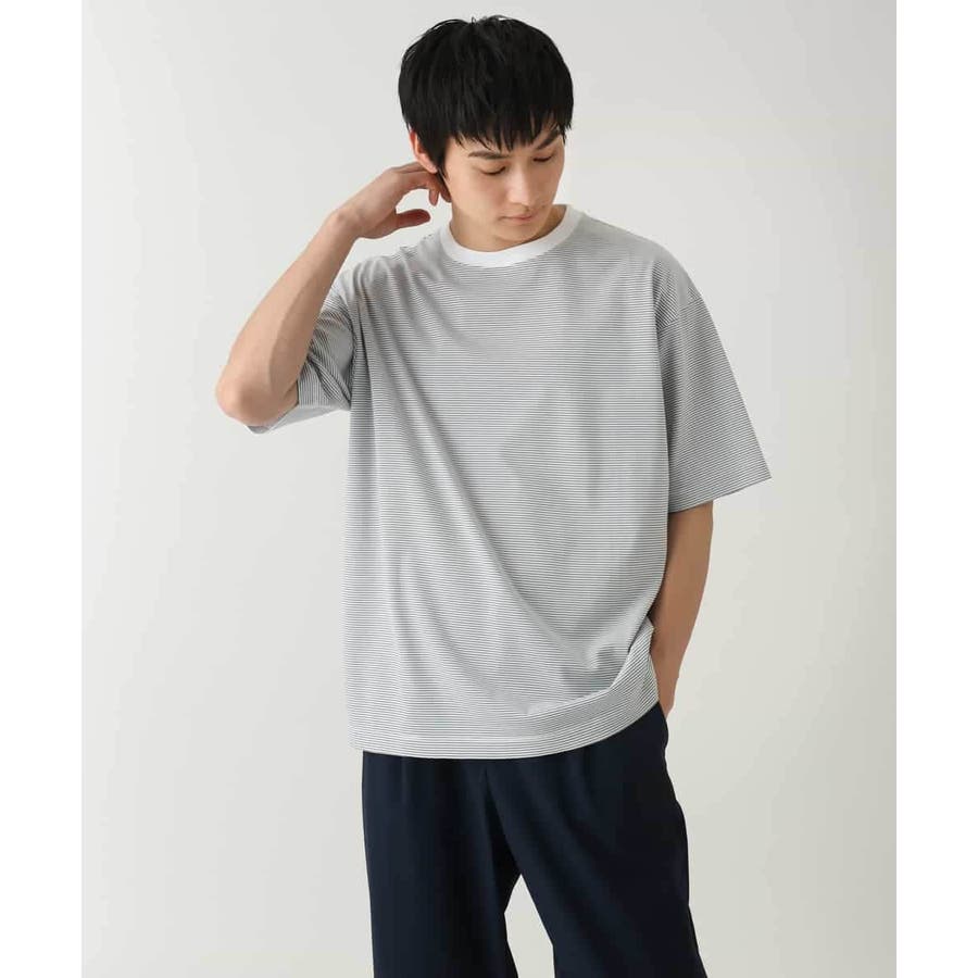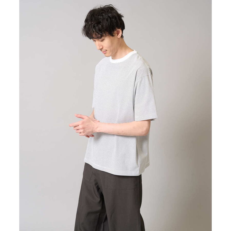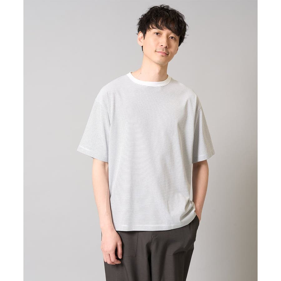【接触冷感】細ボーダーセミワイドシルエットカットソー
