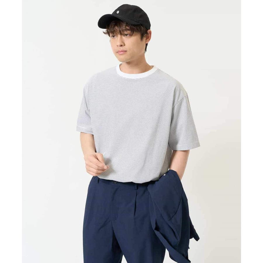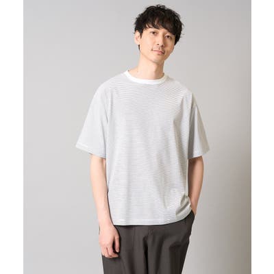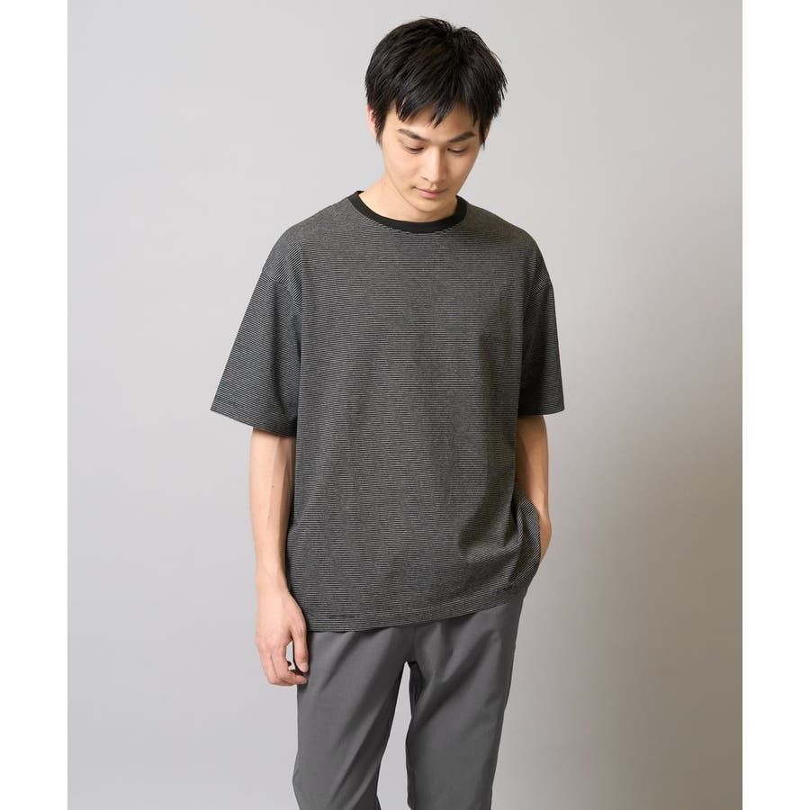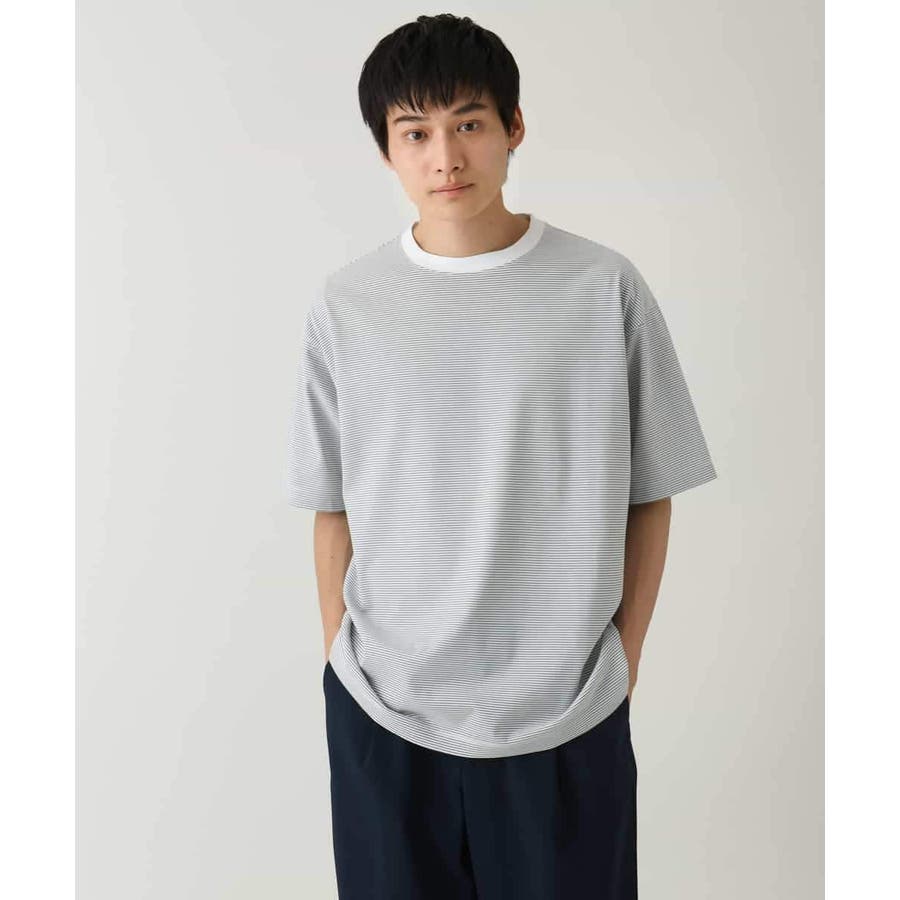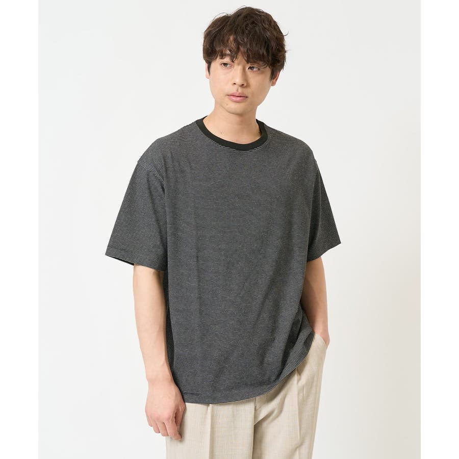 【接触冷感】細ボーダーセミワイドシルエットカットソー