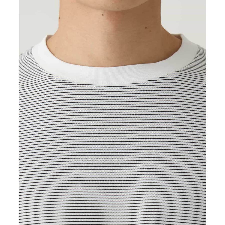 カジュアル過ぎないクリーンな印象の細ボーダーカットソー。