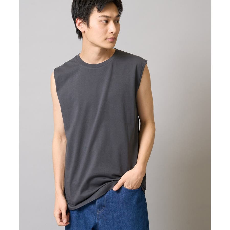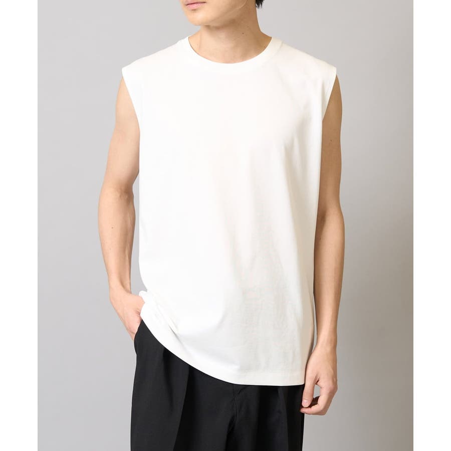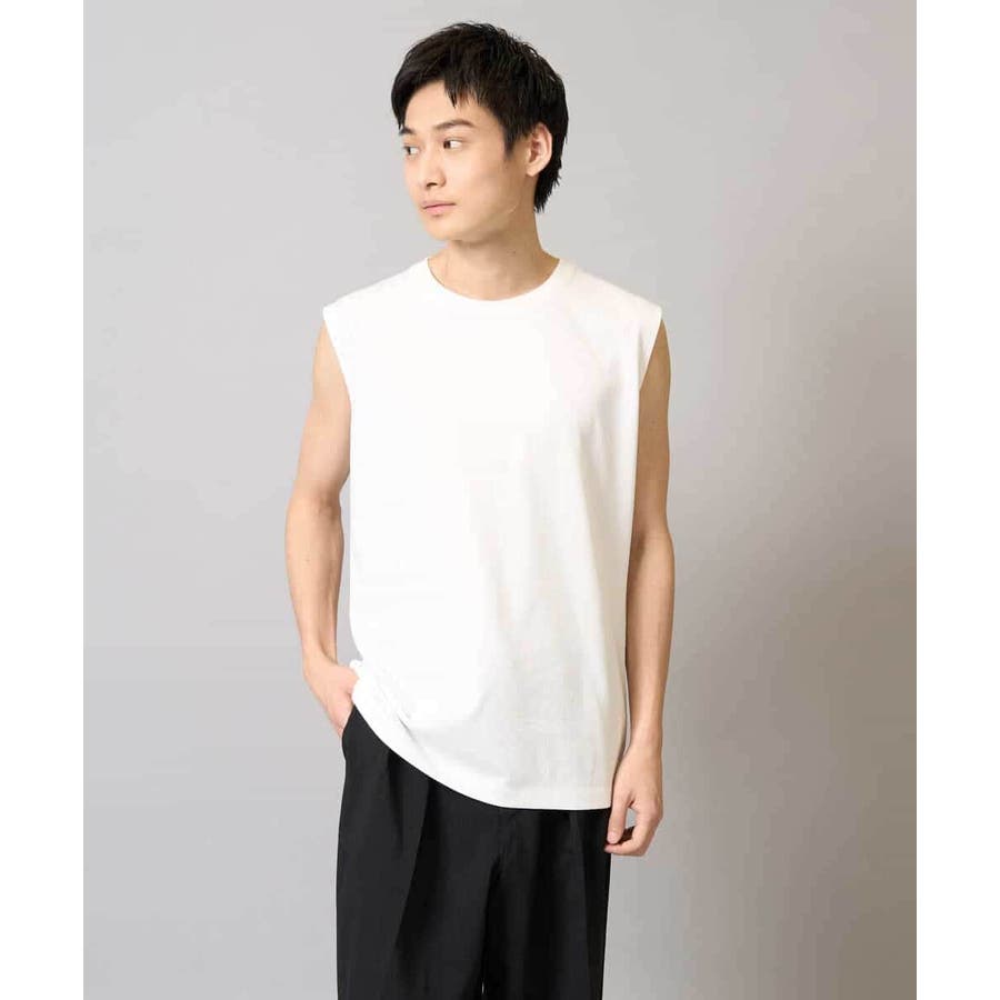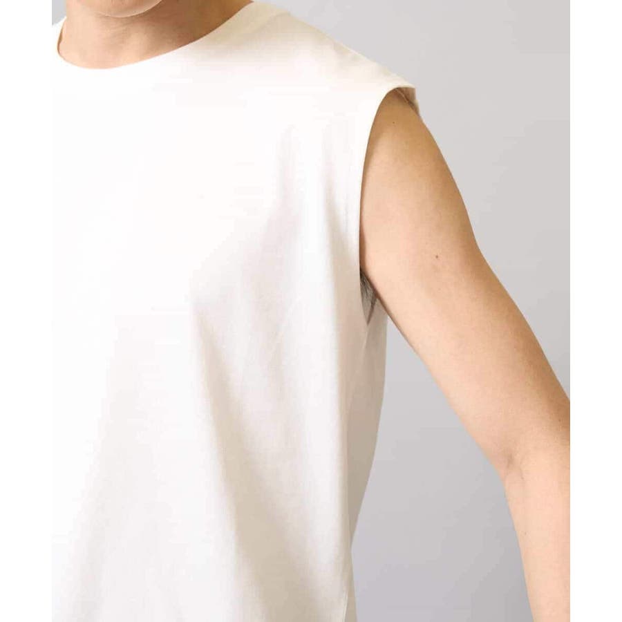 きれいめ天竺素材を使用したベーシックなノースリーブカットソー。