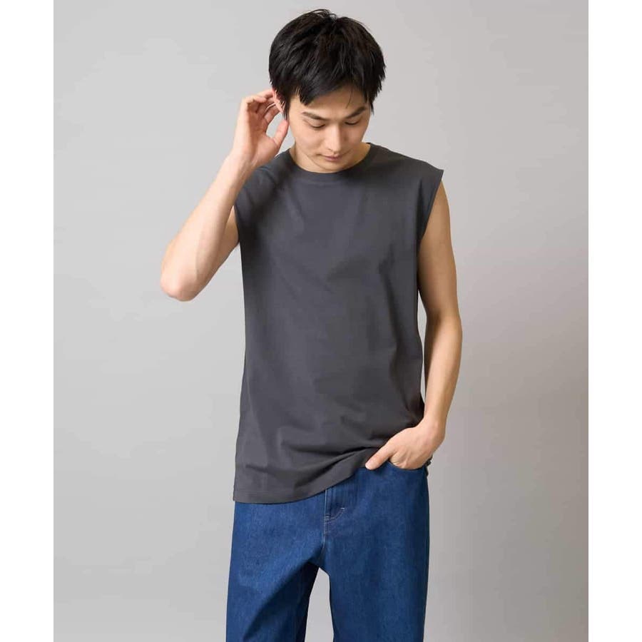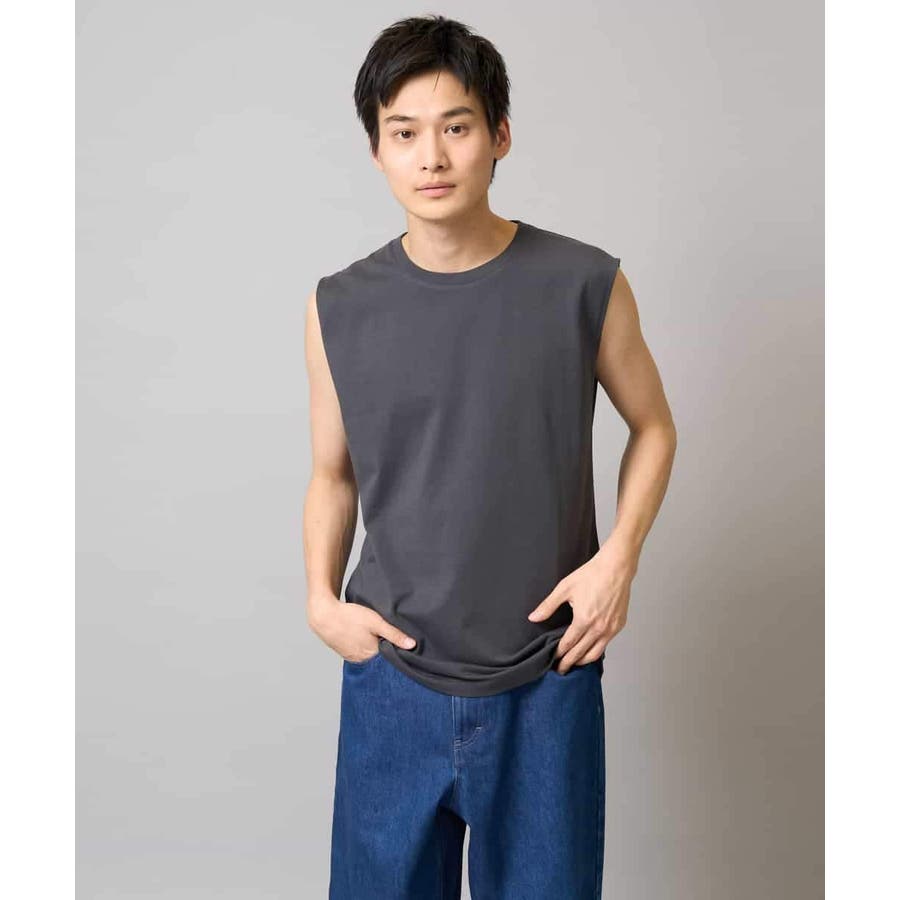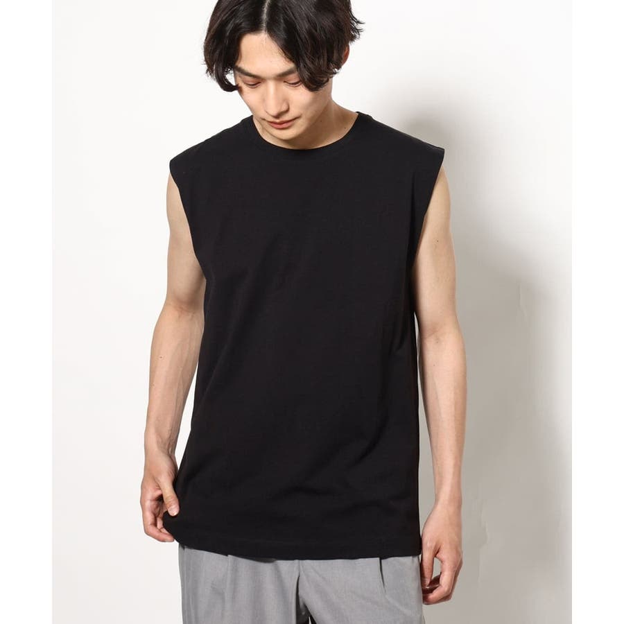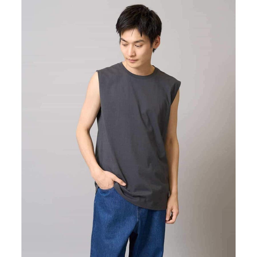 きれいめ天竺素材を使用したベーシックなノースリーブカットソー。
