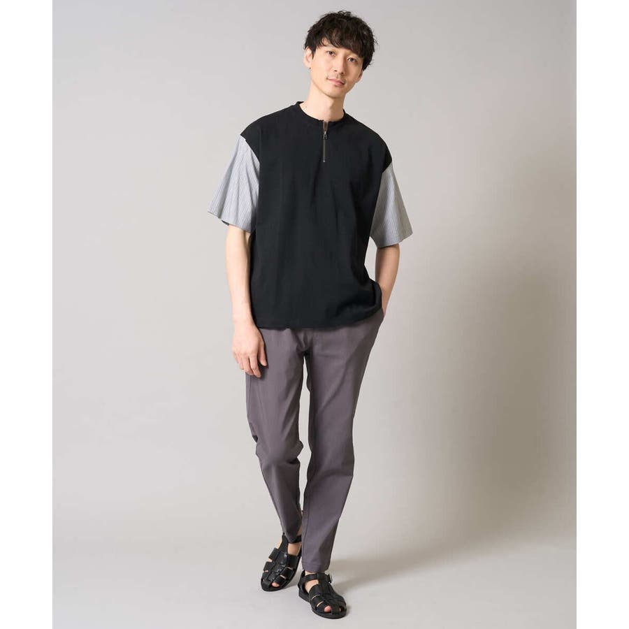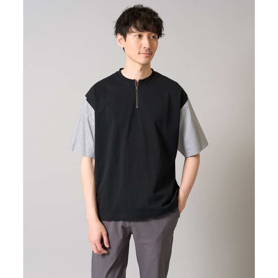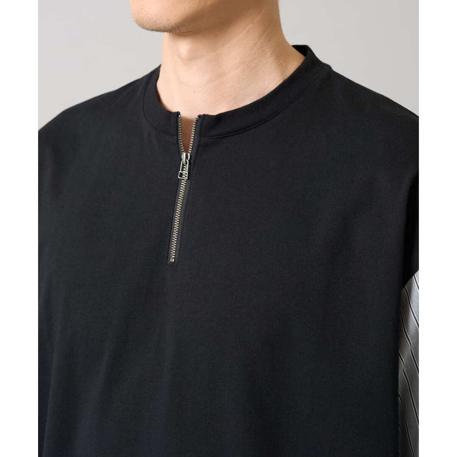 【マシンウォッシャブル】ハーフジップバックシャン切替カットソー