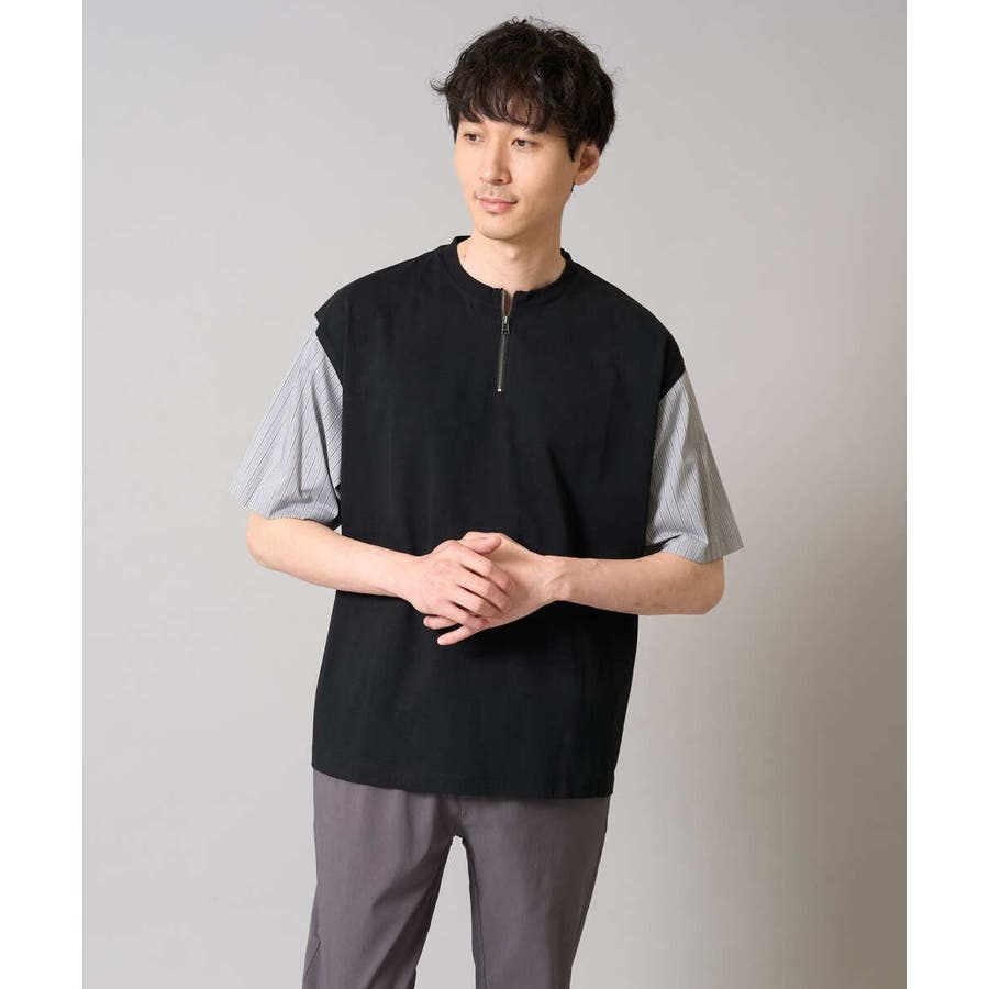 カットソーとシャツ素材をMIXした絶妙バランスのテクニックカットソー◆