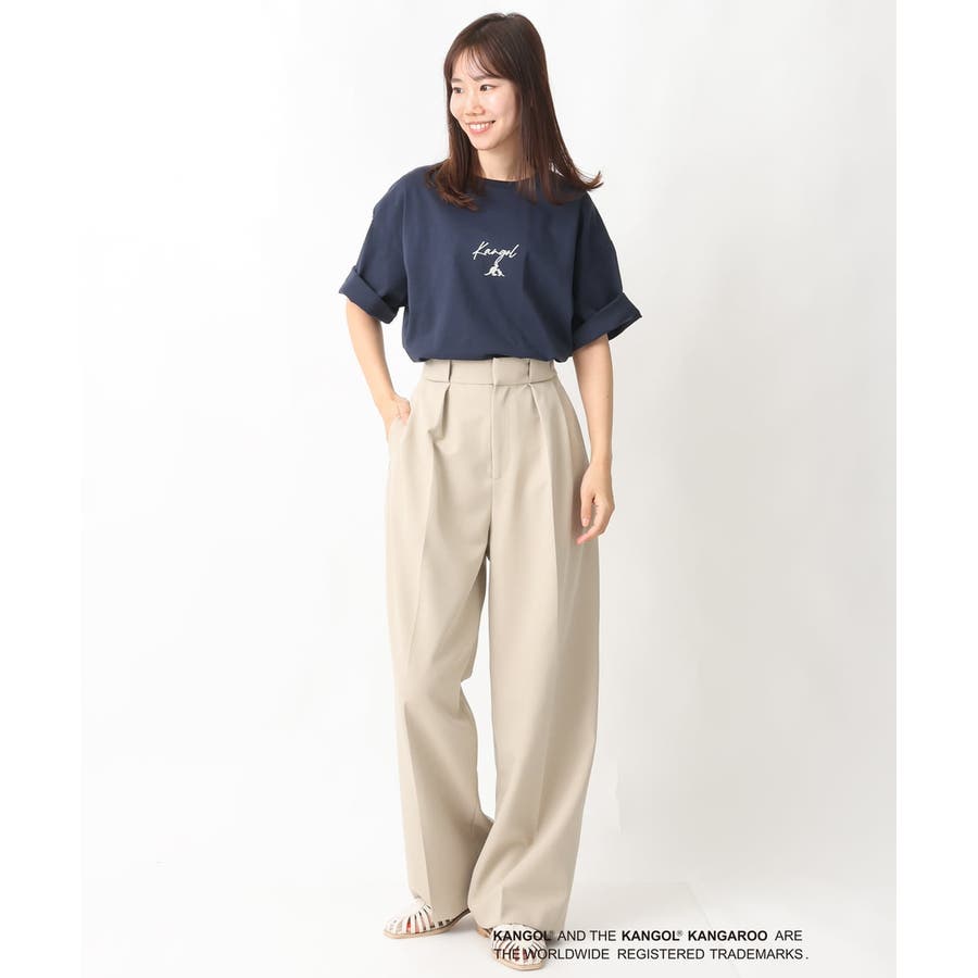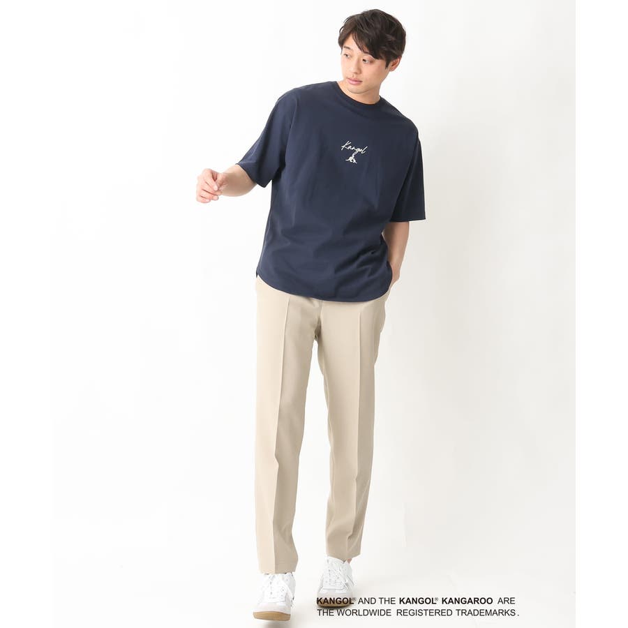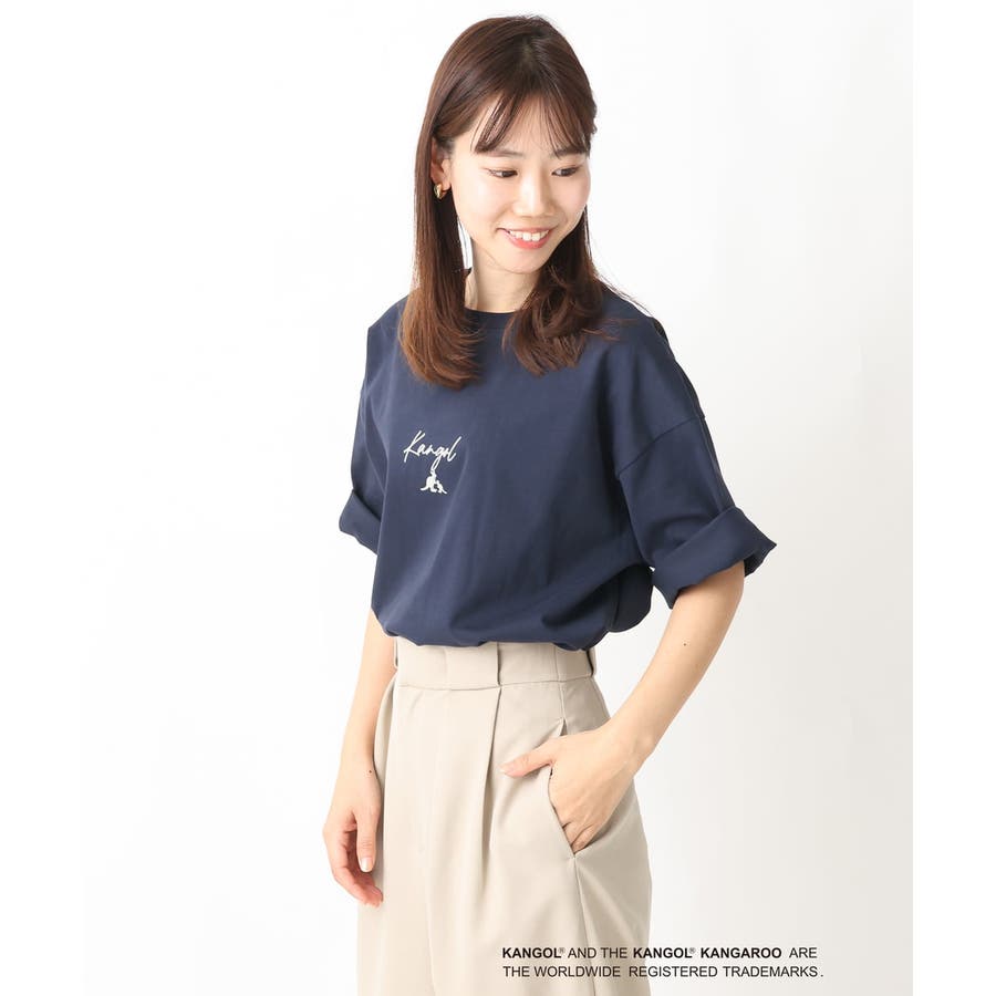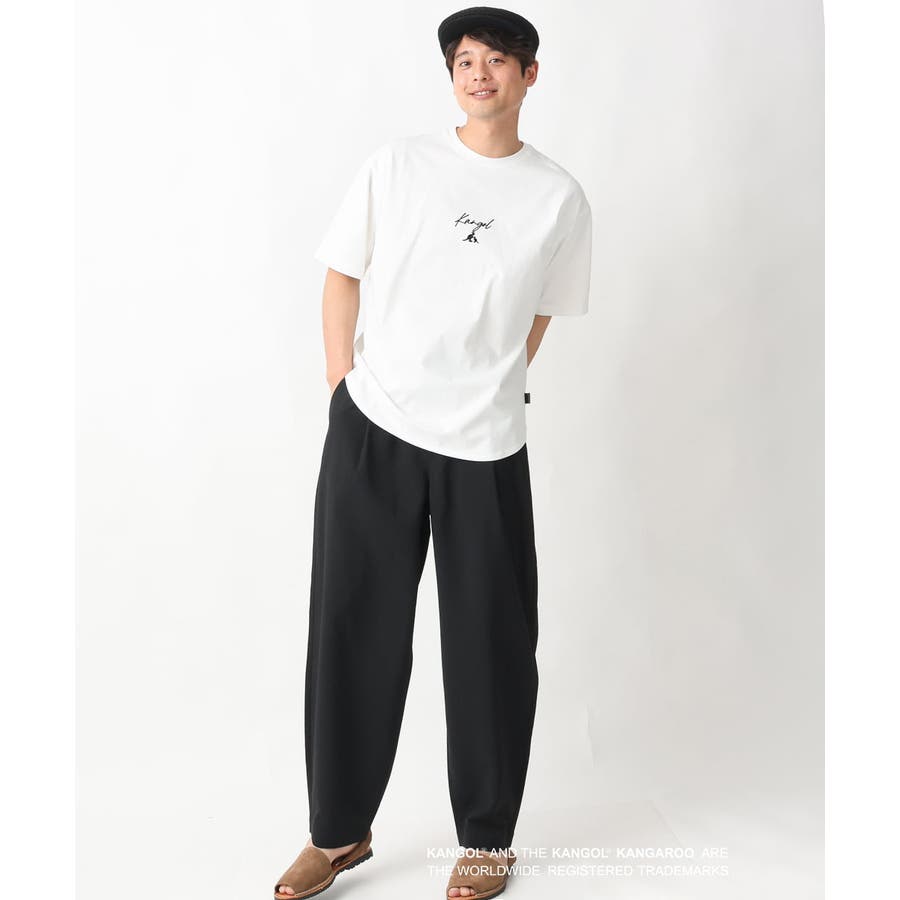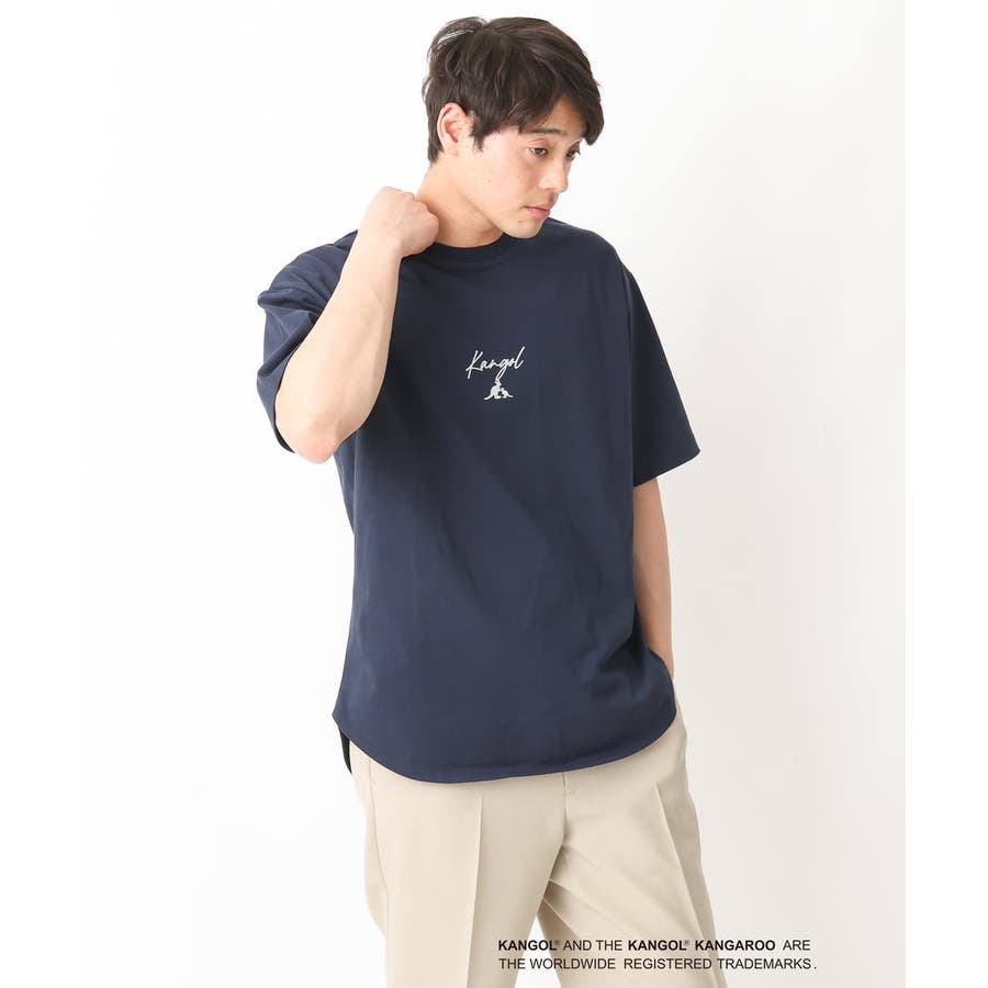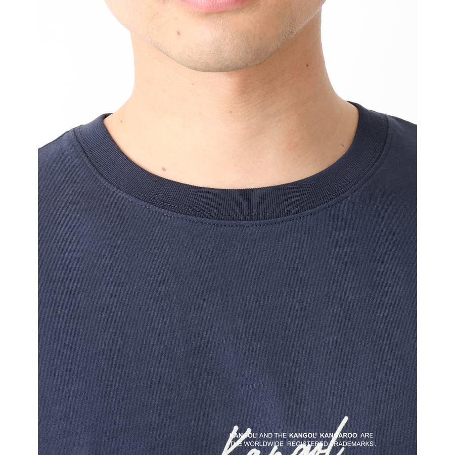 KANGOL×a.v.vのオリジナルデザインコラボカットソー。裾がラウンドしたデザインで着丈はロングシルエットとトレンド性のある1枚。フロントに筆記体のロゴフロッキープリント、バックにカンガルーマークをスクエアのオリジナルデザインでプリントしたインパクトのあるデザインです。