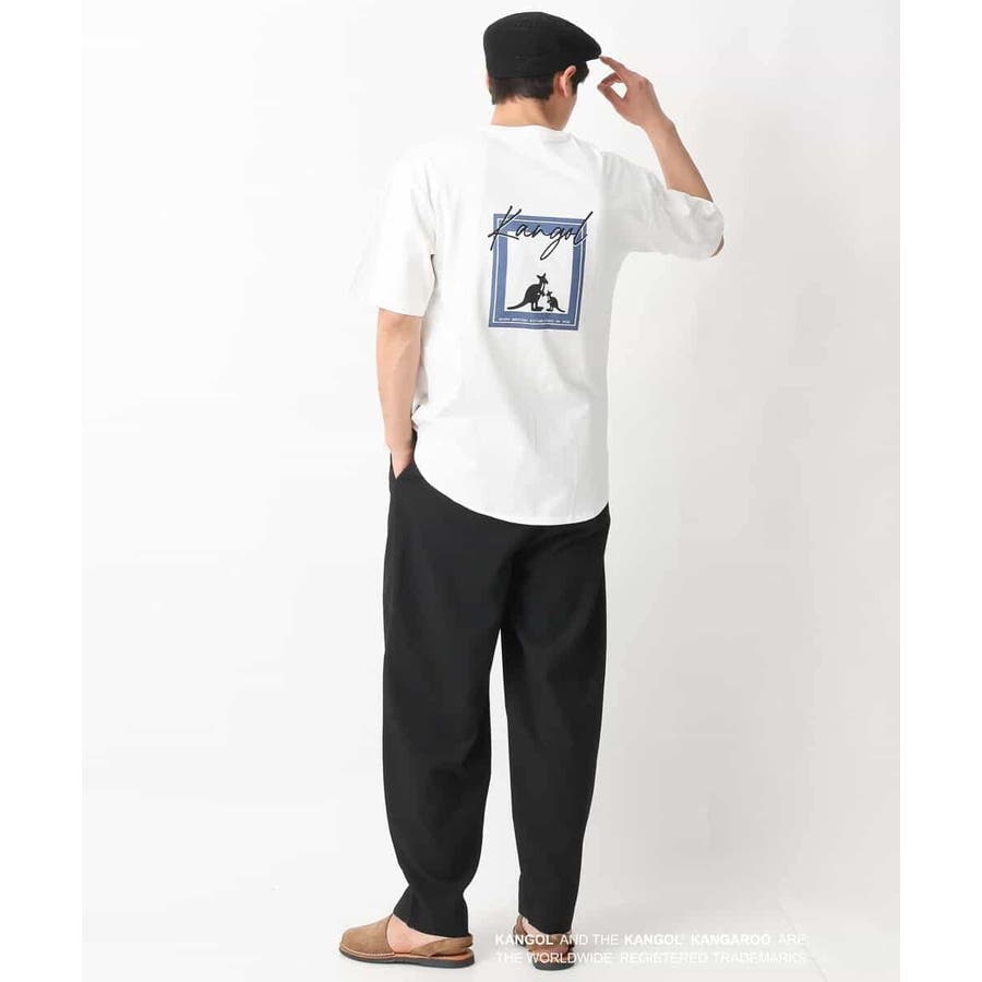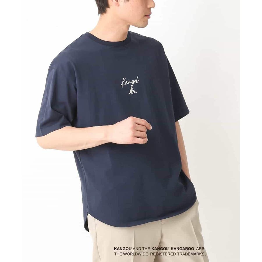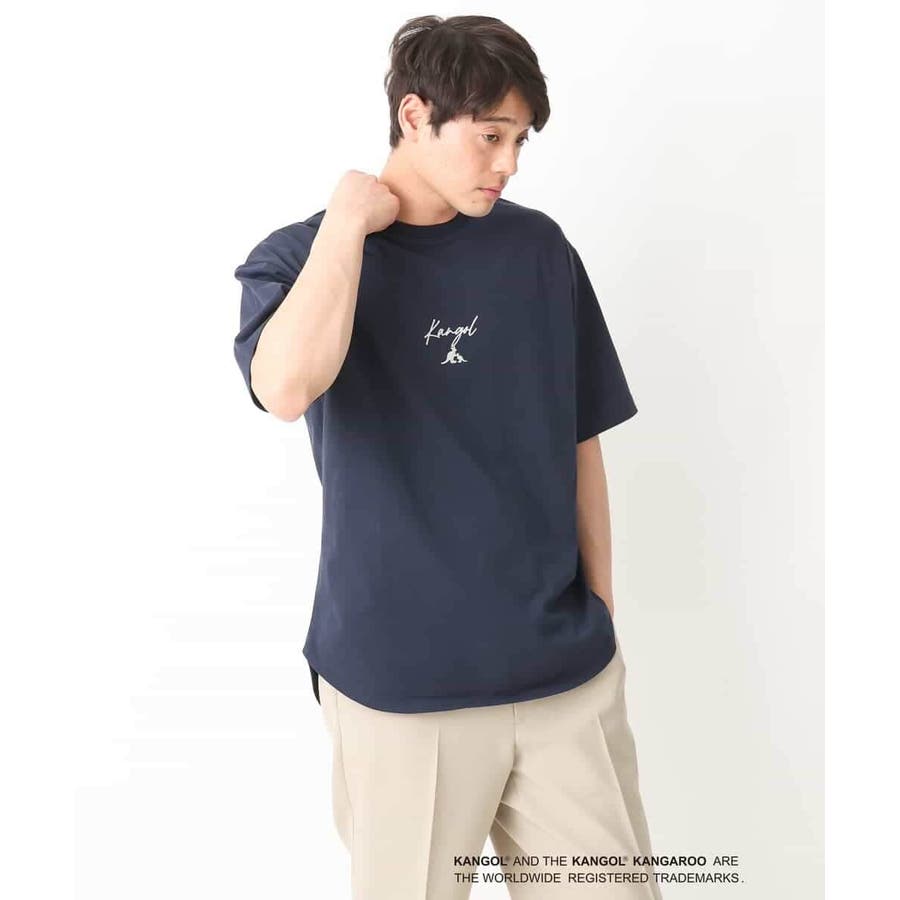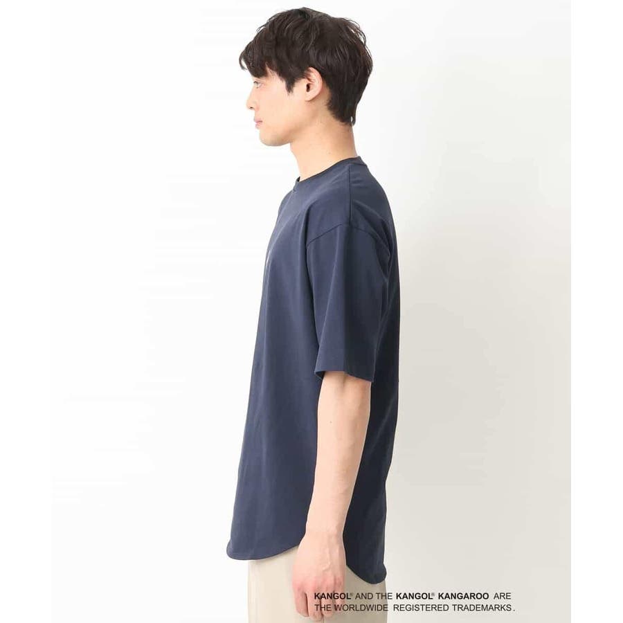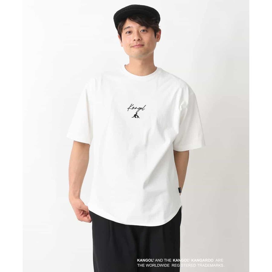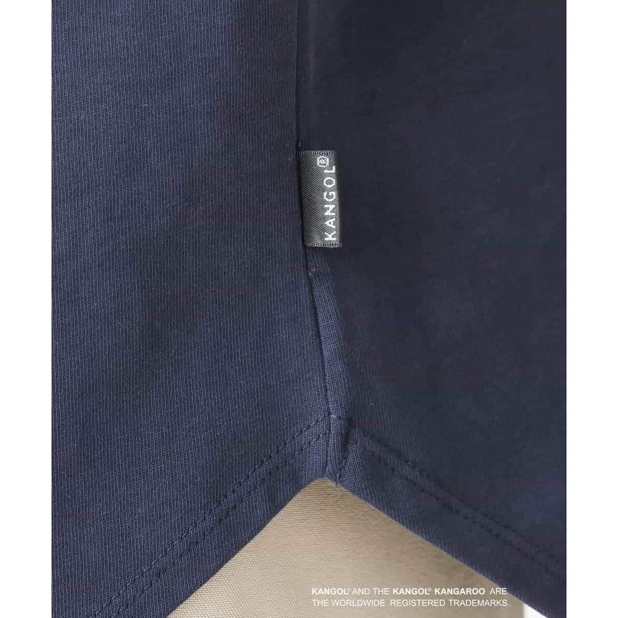 KANGOL×a.v.vのオリジナルデザインコラボカットソー。裾がラウンドしたデザインで着丈はロングシルエットとトレンド性のある1枚。フロントに筆記体のロゴフロッキープリント、バックにカンガルーマークをスクエアのオリジナルデザインでプリントしたインパクトのあるデザインです。