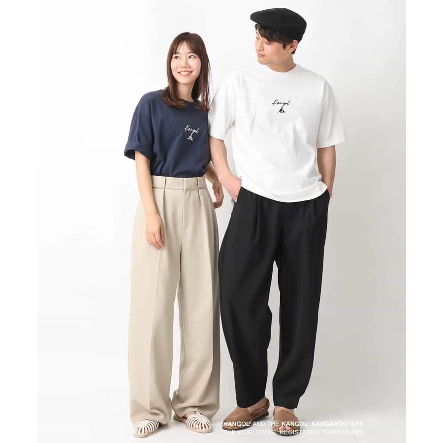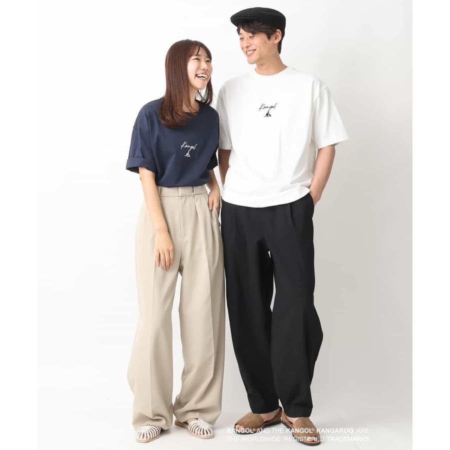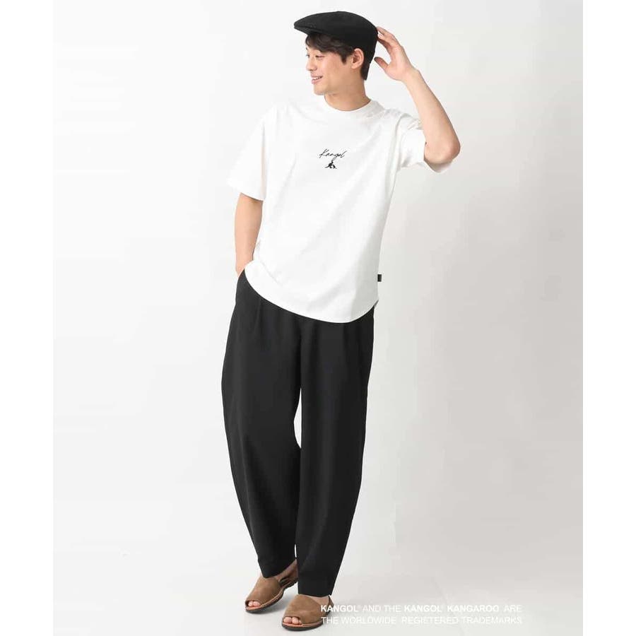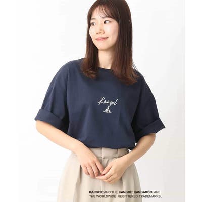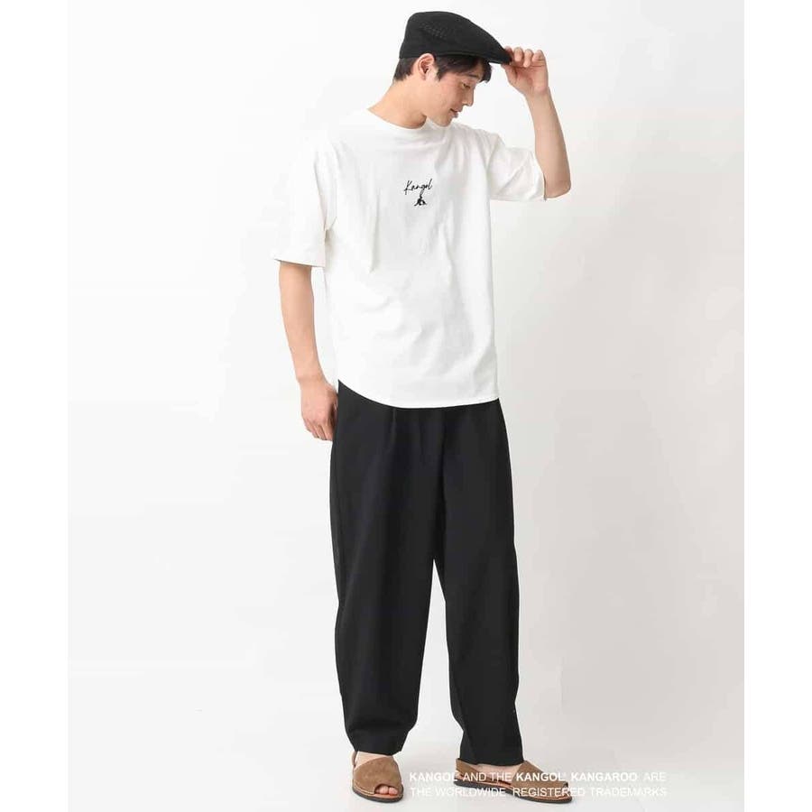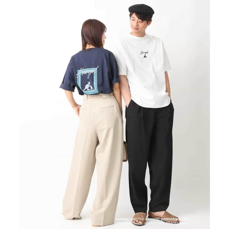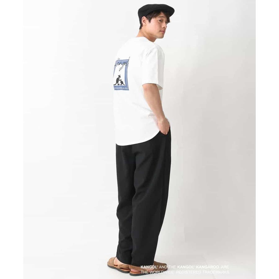 KANGOL×a.v.vのオリジナルデザインコラボカットソー。裾がラウンドしたデザインで着丈はロングシルエットとトレンド性のある1枚。フロントに筆記体のロゴフロッキープリント、バックにカンガルーマークをスクエアのオリジナルデザインでプリントしたインパクトのあるデザインです。