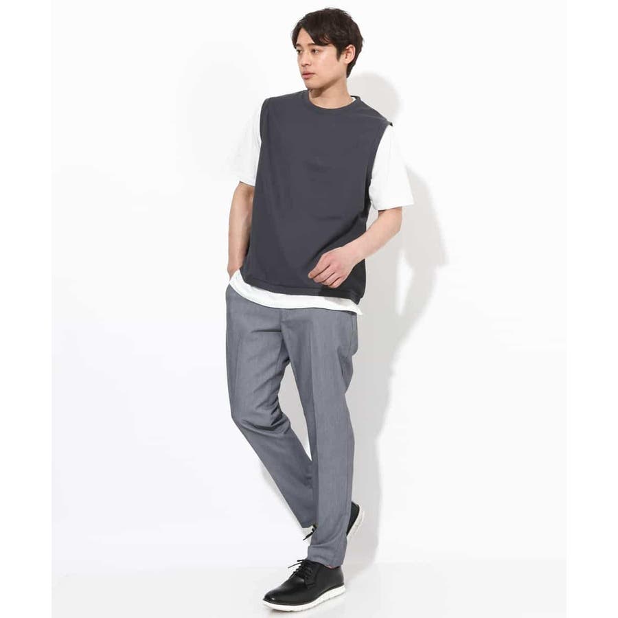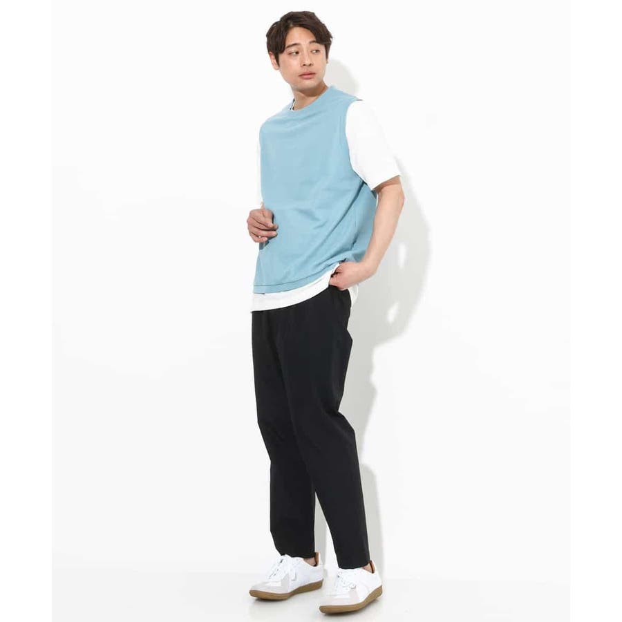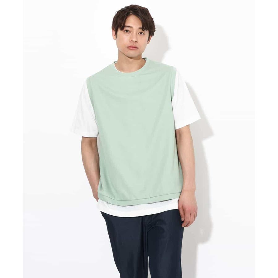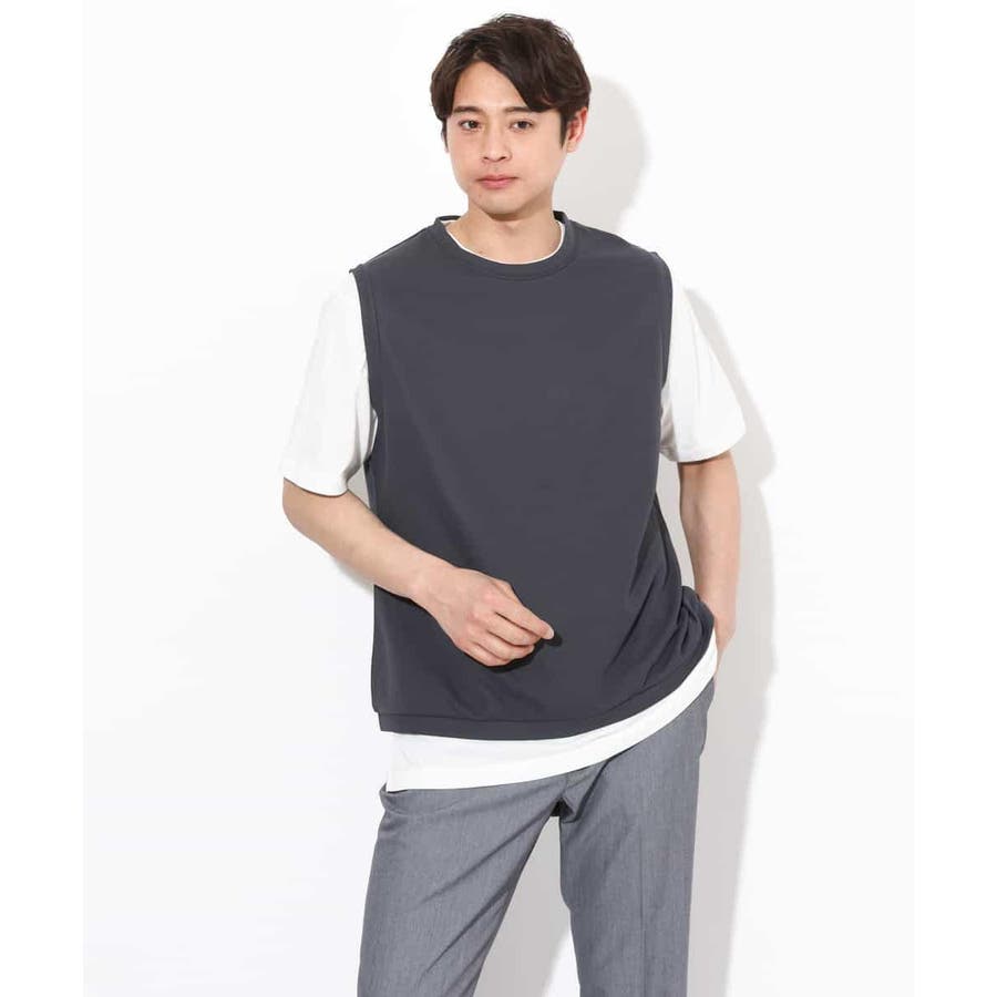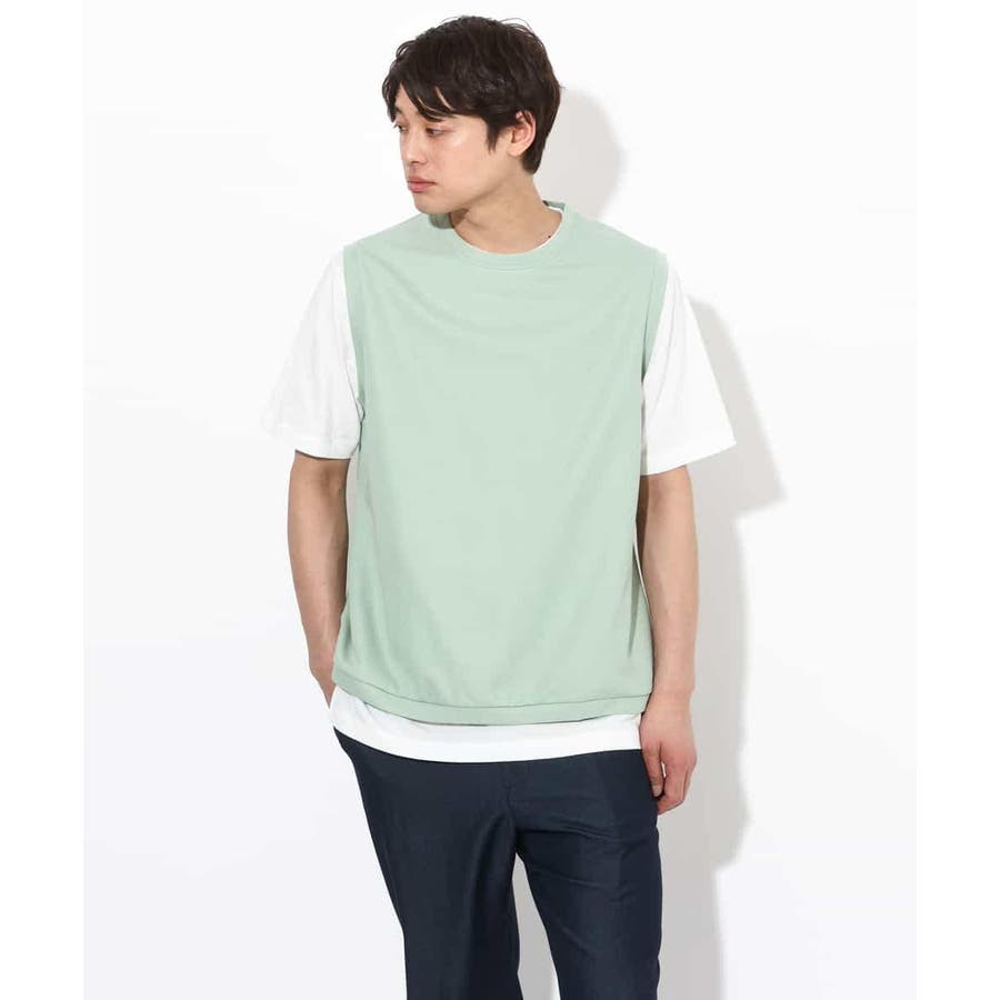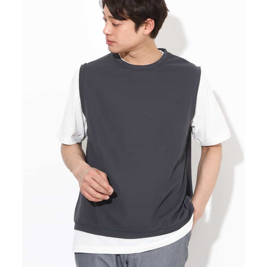 ライトアゼ素材を使用したベストとインナーTシャツの2点セット企画で、トレンドのレイヤードスタイルが簡単にきまる優秀アイテムです。