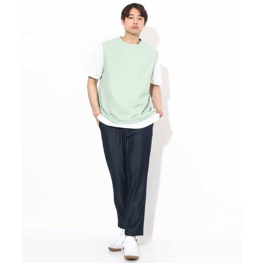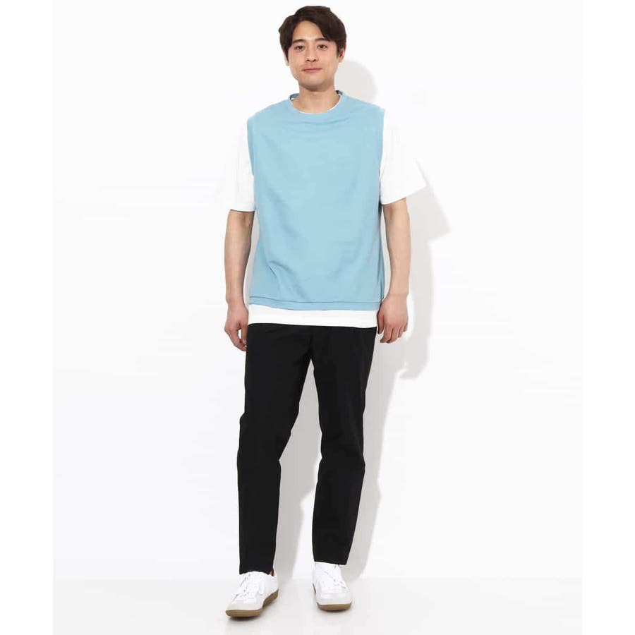 XXL:着丈(ベスト)69.5 身幅(ベスト)62 肩幅(ベスト)47 着丈(カットソー)72.5 身幅(カットソー)59 肩幅(カットソー)50 そで丈(カットソー)25.5