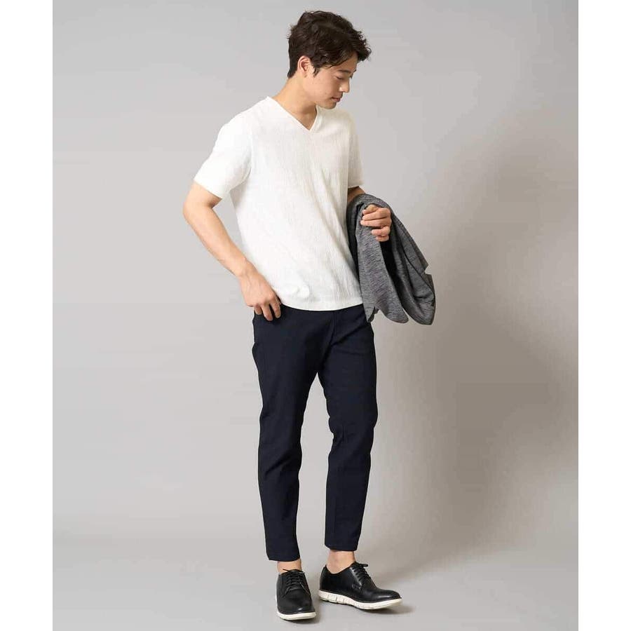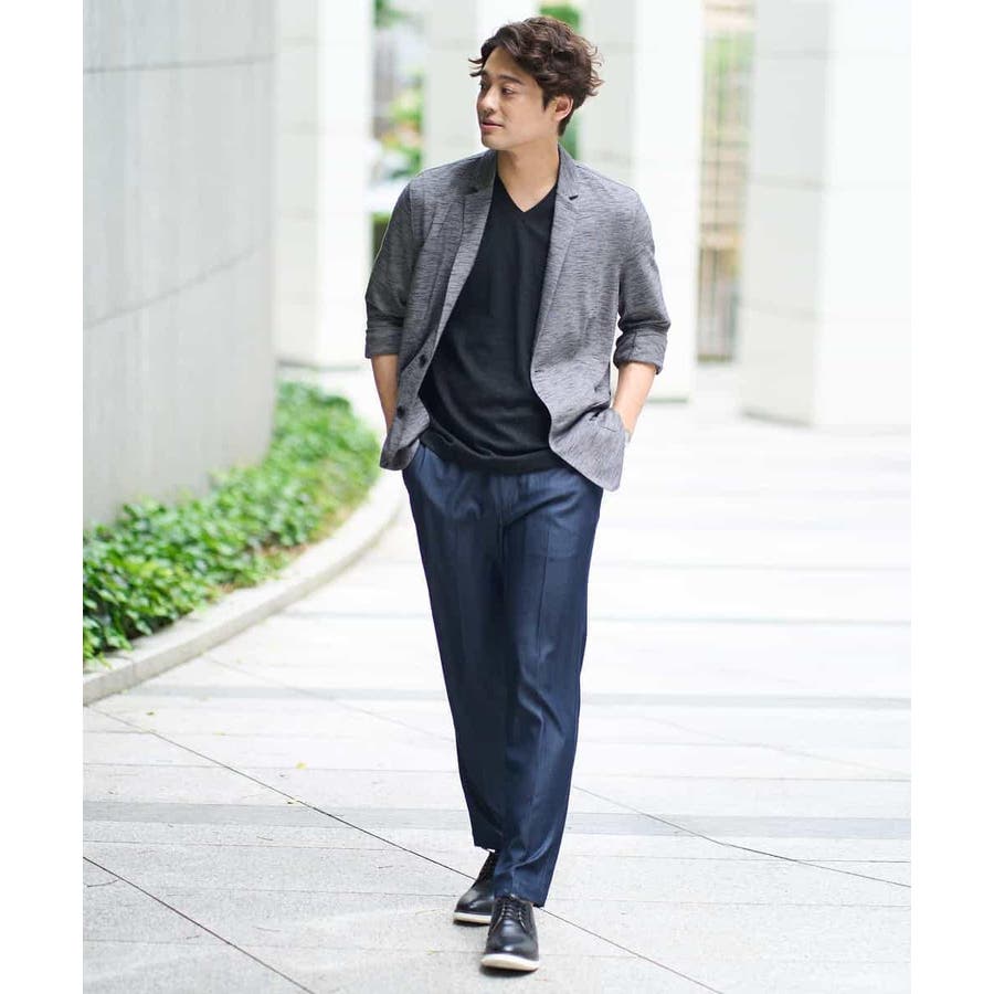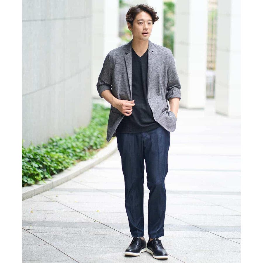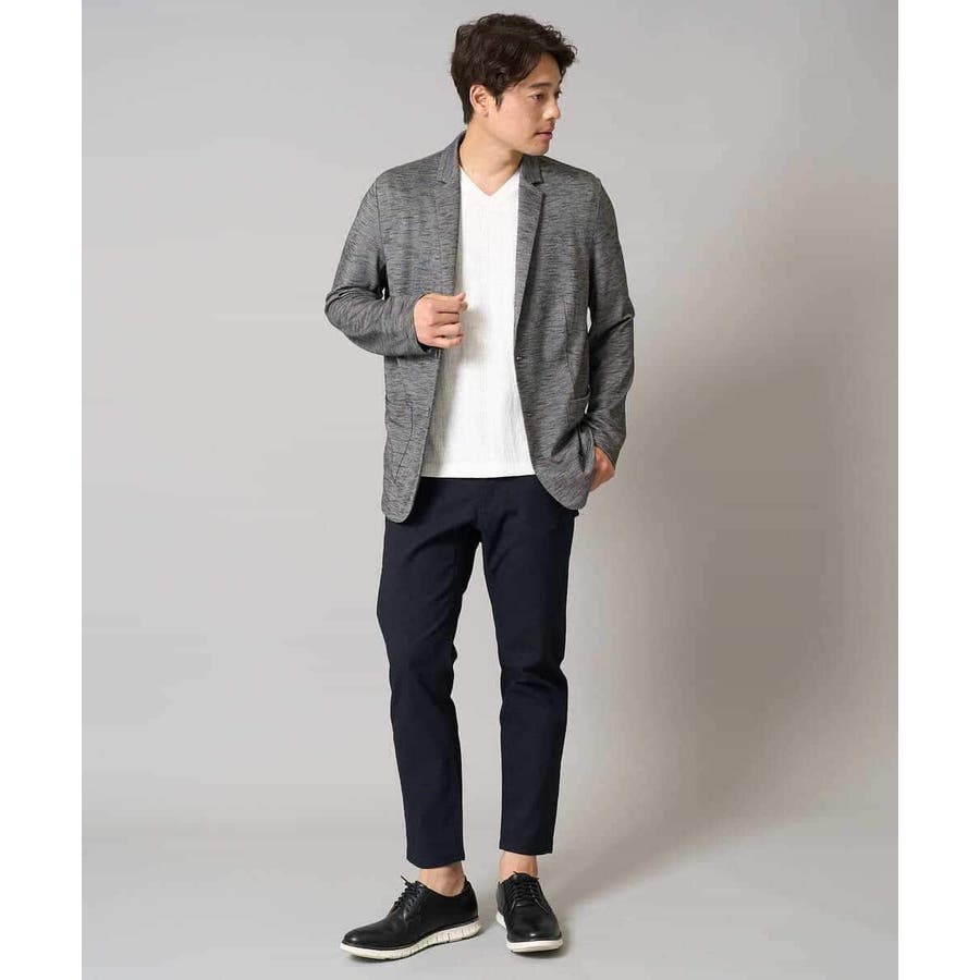 ONスタイルであればスラックス合わせ、OFFスタイルであればややゆとりのあるパンツとあわせでバランスよくきまります。