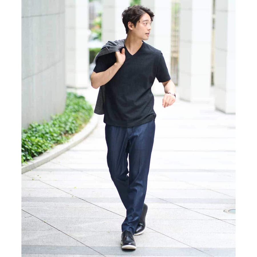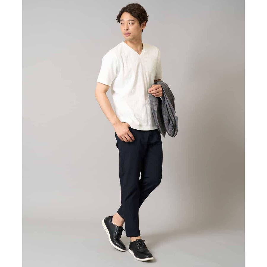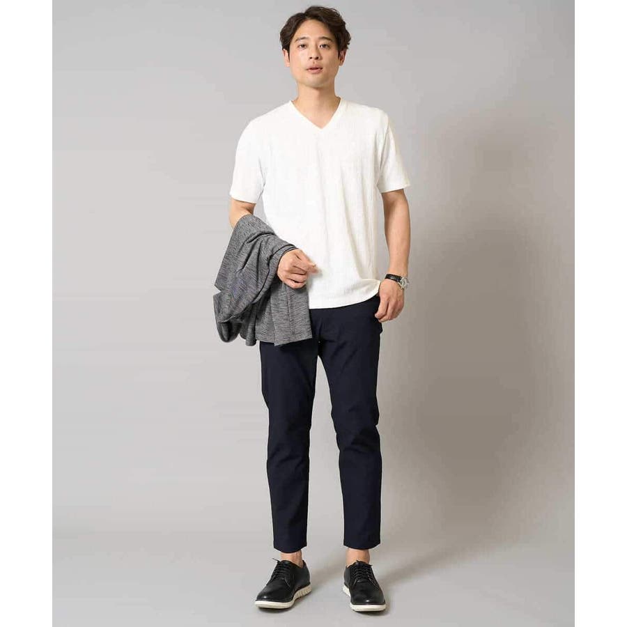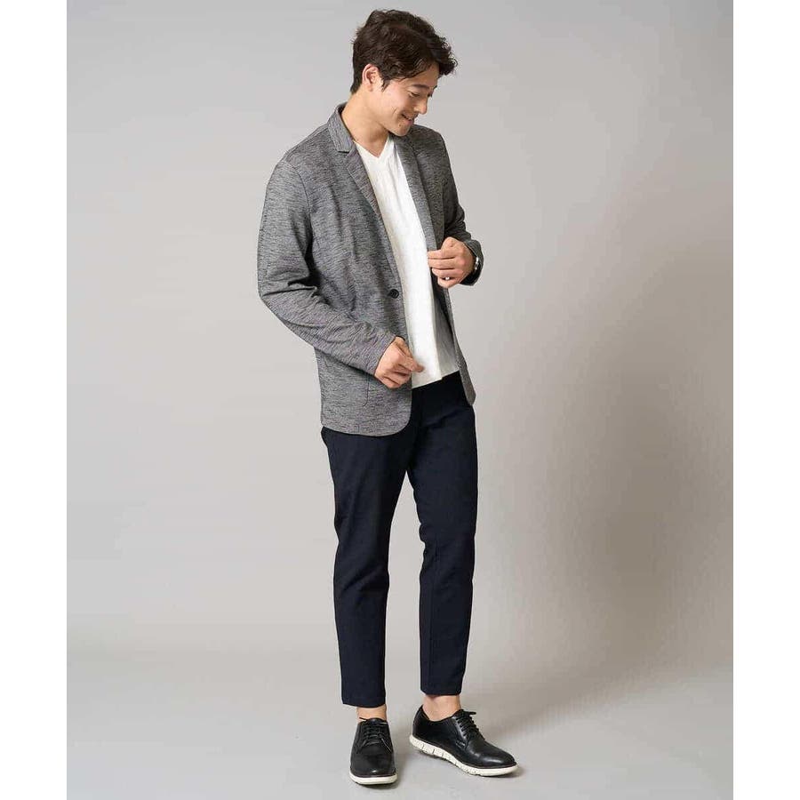 ONスタイルであればスラックス合わせ、OFFスタイルであればややゆとりのあるパンツとあわせでバランスよくきまります。