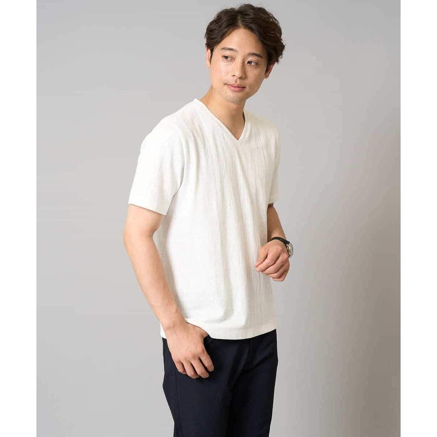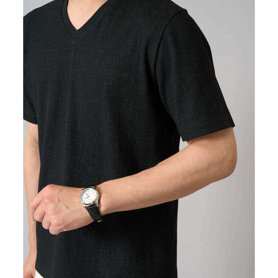 Vゾーンの開きを少し浅くすることで、1枚で着用した際にも首元の深さが気になりすぎず快適に着用いただけます。