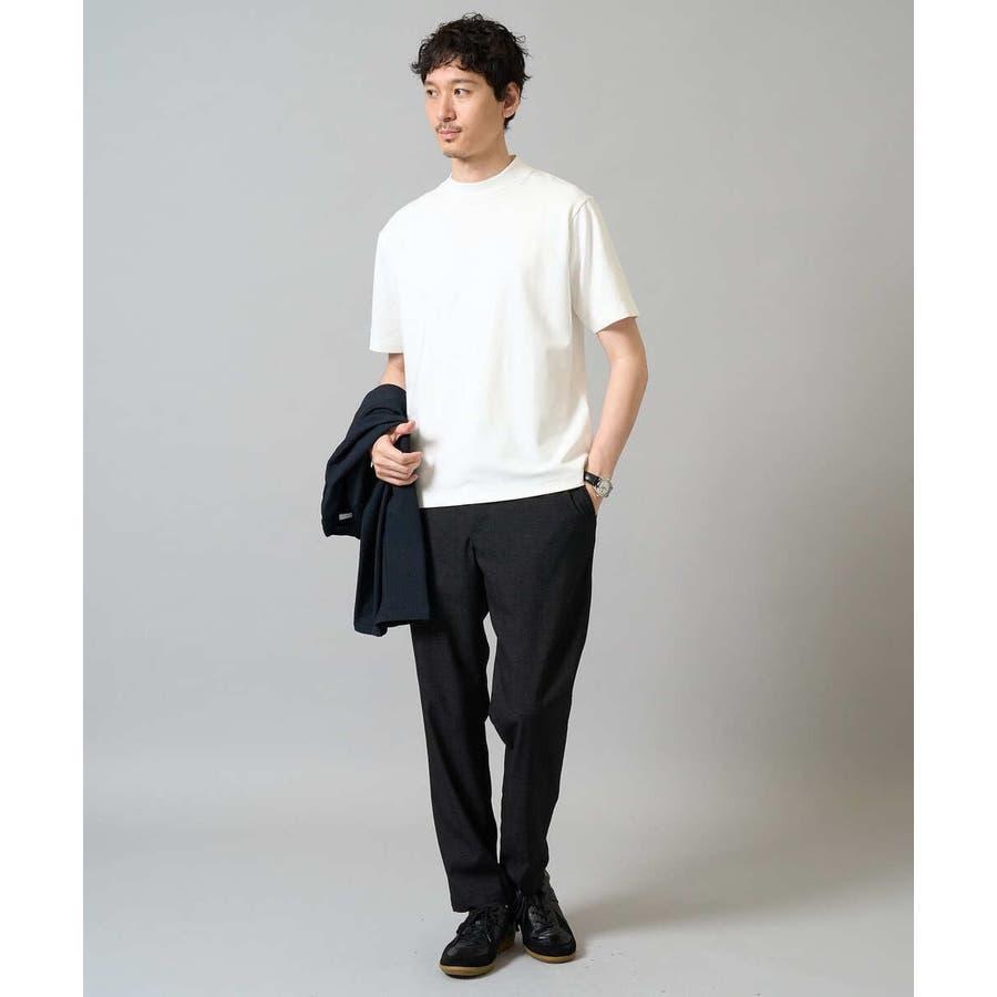 ボトムはONスタイルであればスラックス合わせ、OFFスタイルであればややゆとりのあるパンツとあわせでもバランスが良いコーディネートができます。