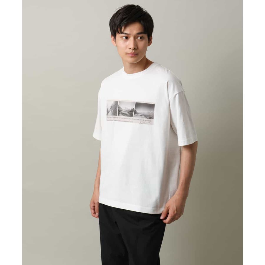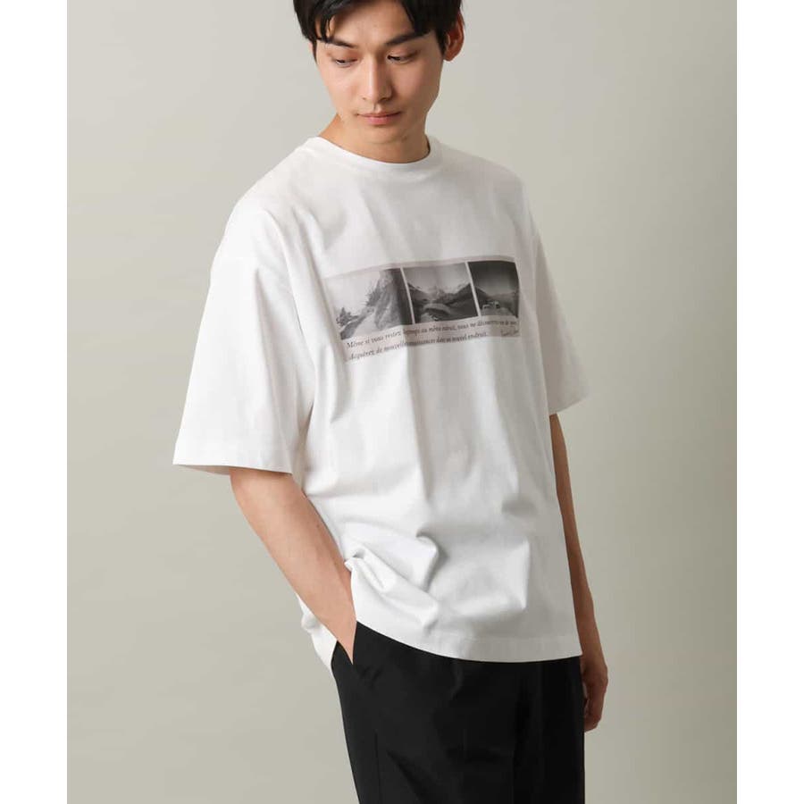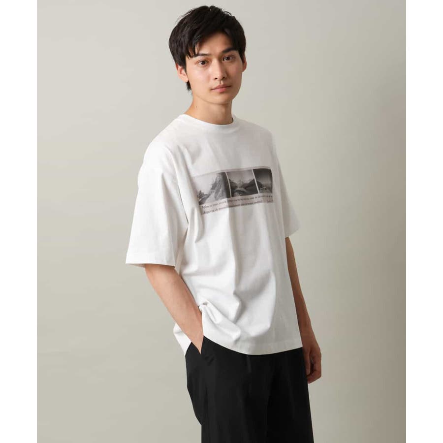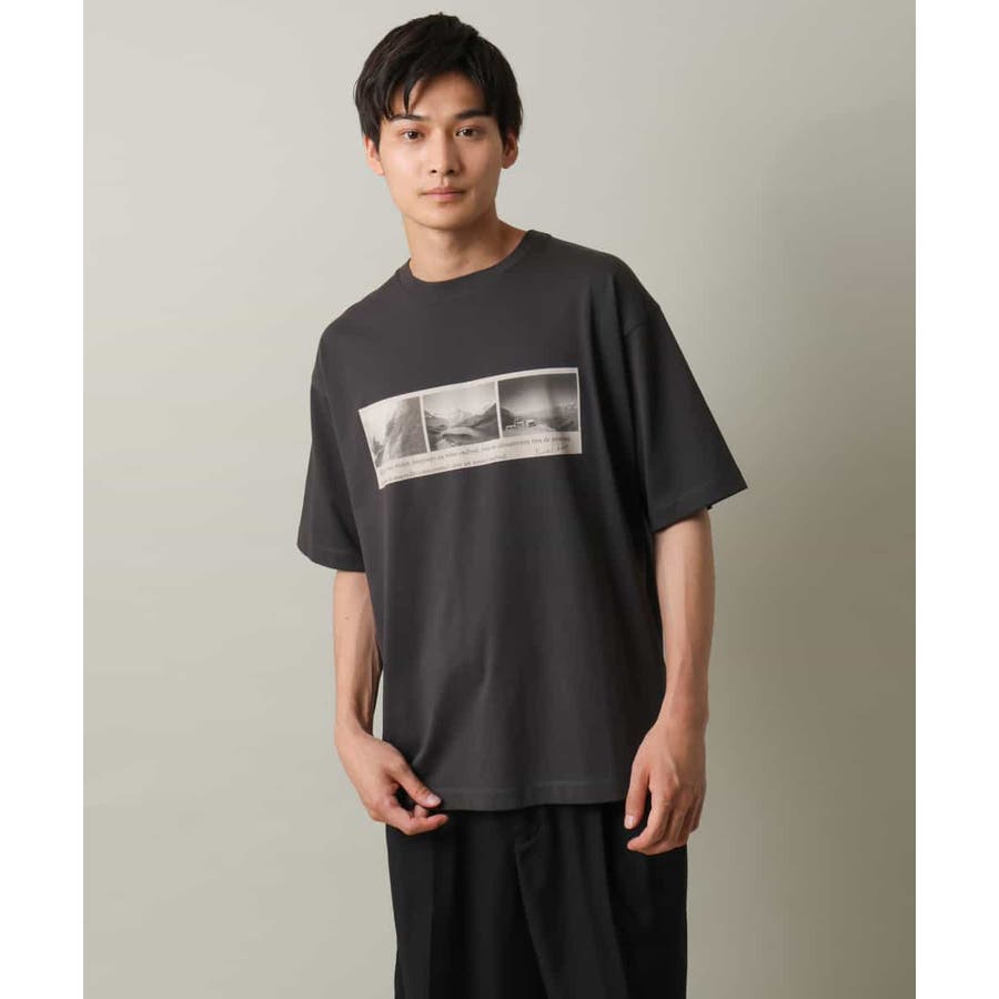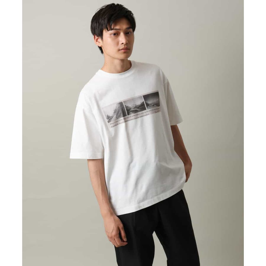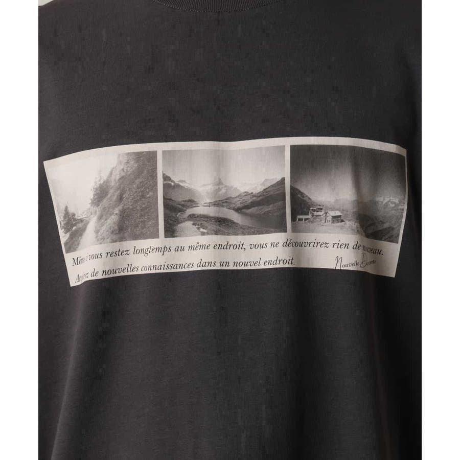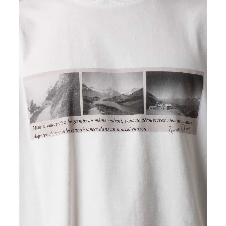 旅の楽しさを感じる、スイスの山々の清涼な風景をフイルム撮影しモノクロでシックに表現したフォトプリントカットソー。